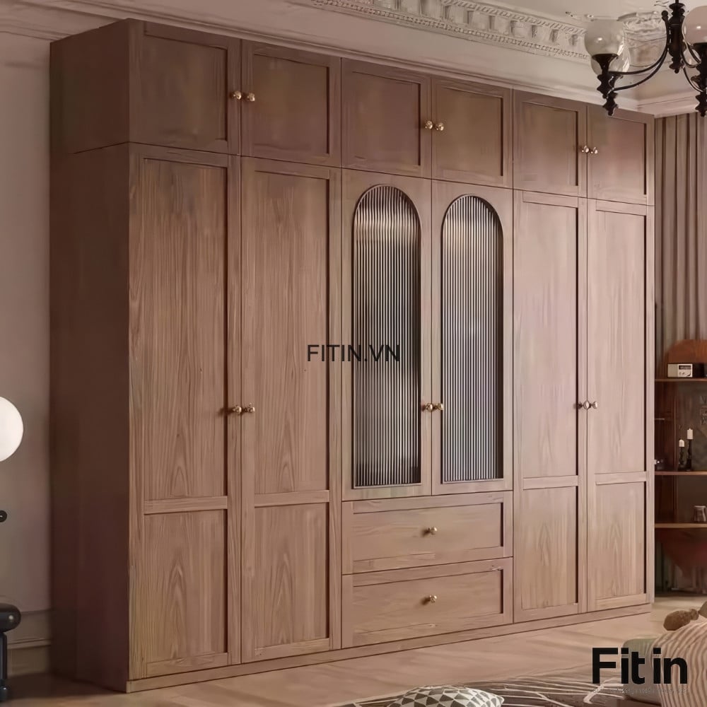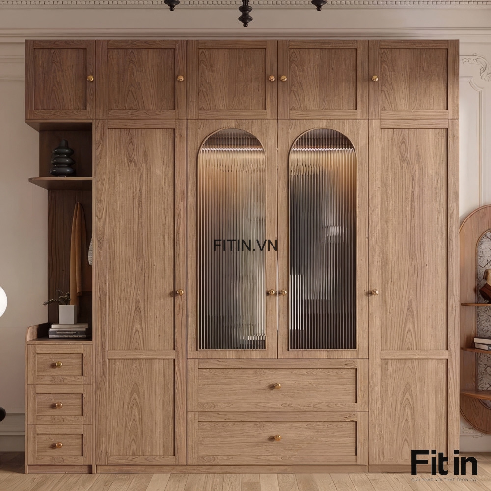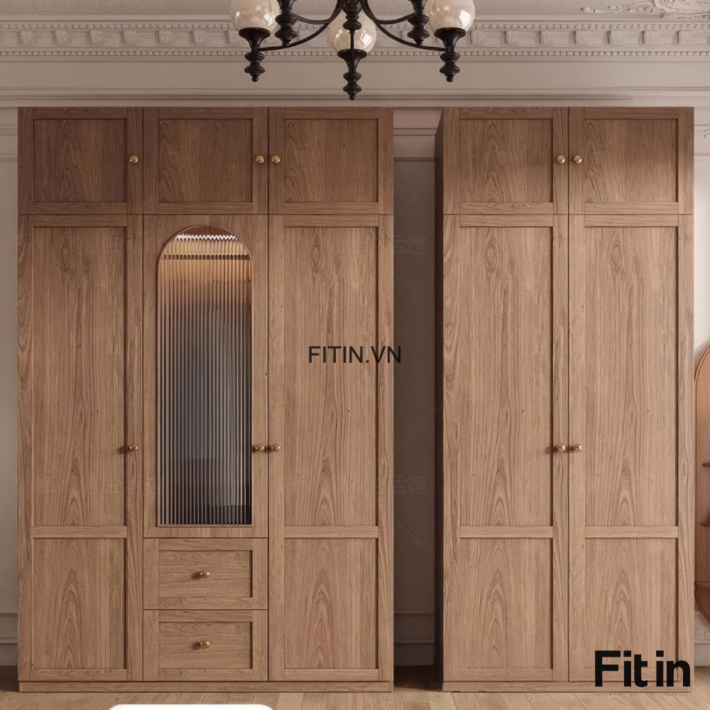 Tủ Áo 4 Cánh Gỗ Công Nghiệp Phối Cánh Kính Sọc Đẹp Hiện Đại