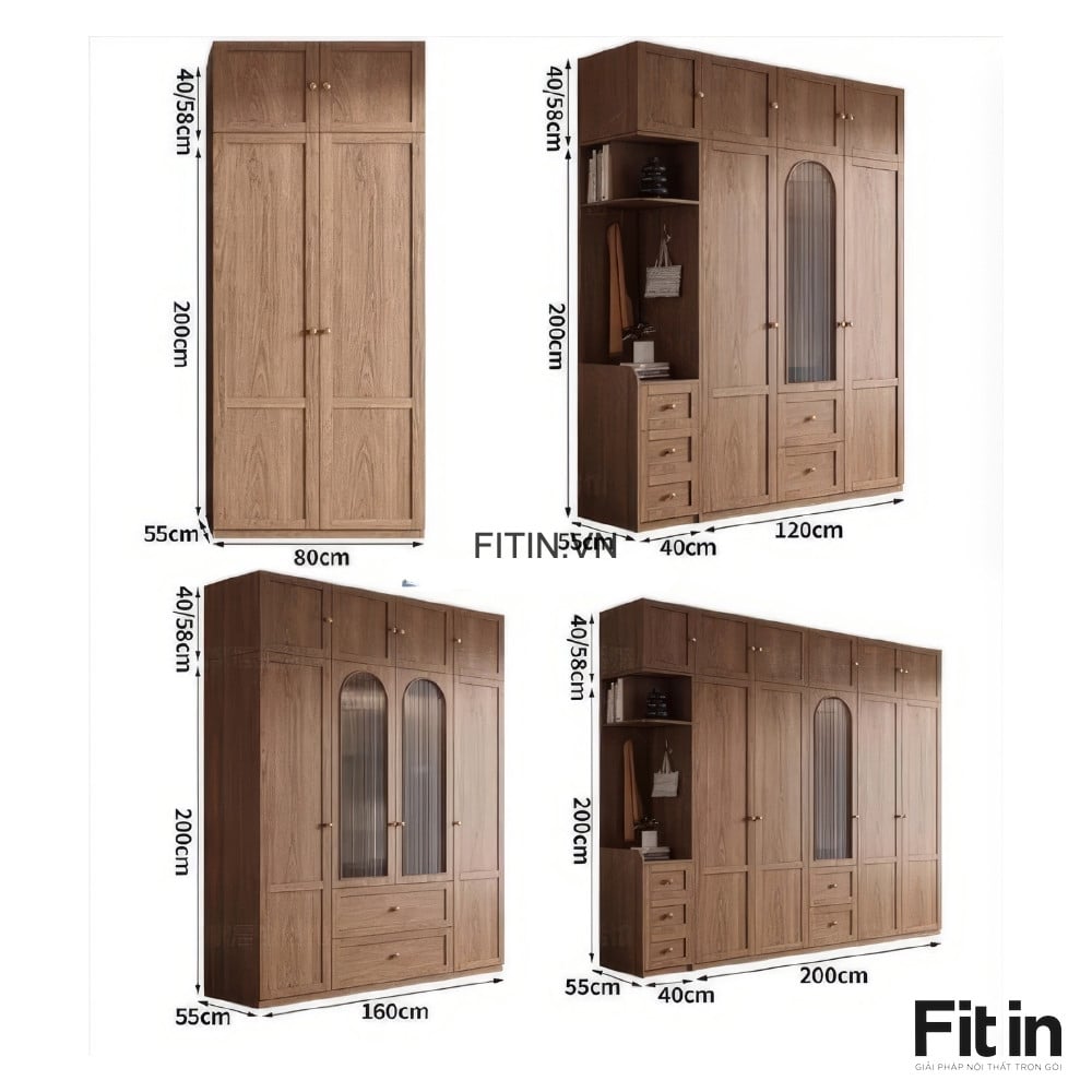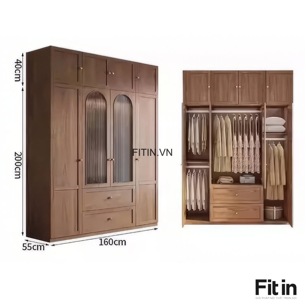 - Tủ 4 cánh: 160 x 57 x 240cm
