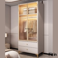 Chất liệu: Gỗ MDF phủ Melamine + Cánh kính cường lực khung nhôm