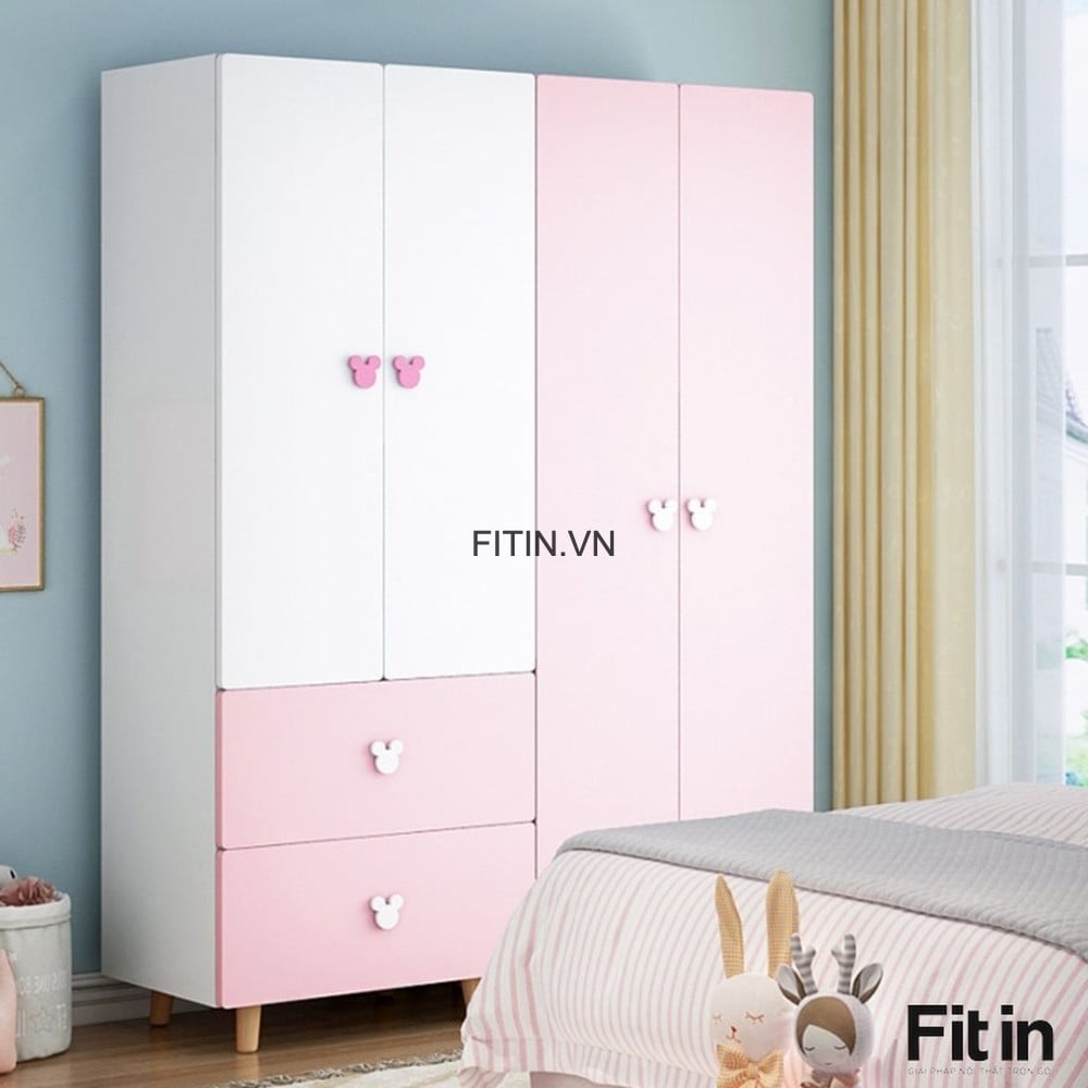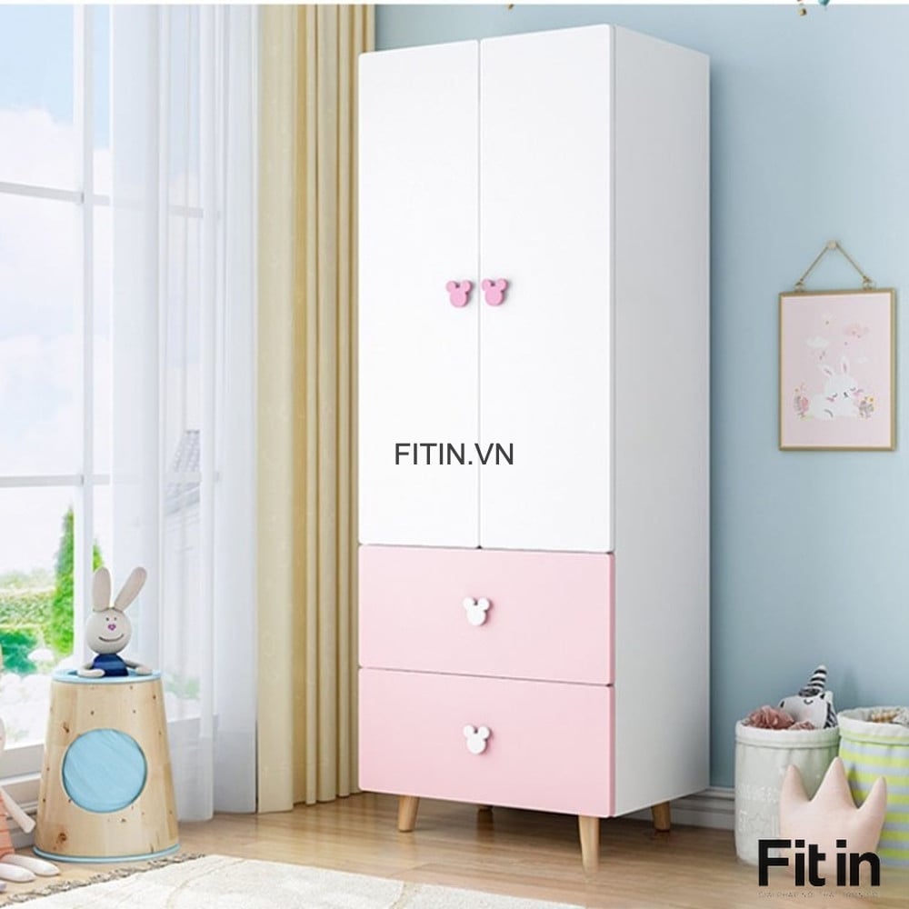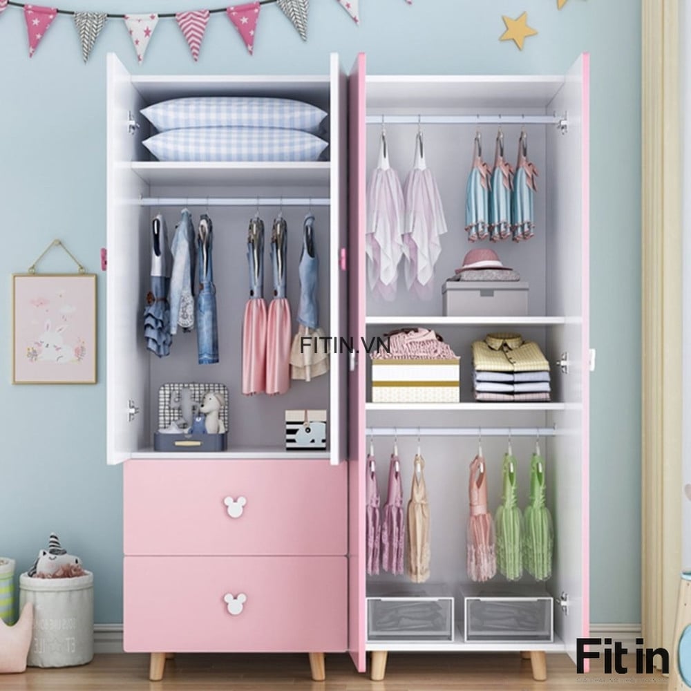 Tủ Áo Cho Bé Gái Màu Hồng Phối Trắng Nhỏ Gọn Tiện Lợi