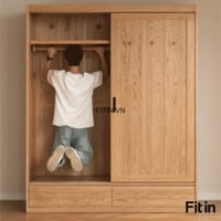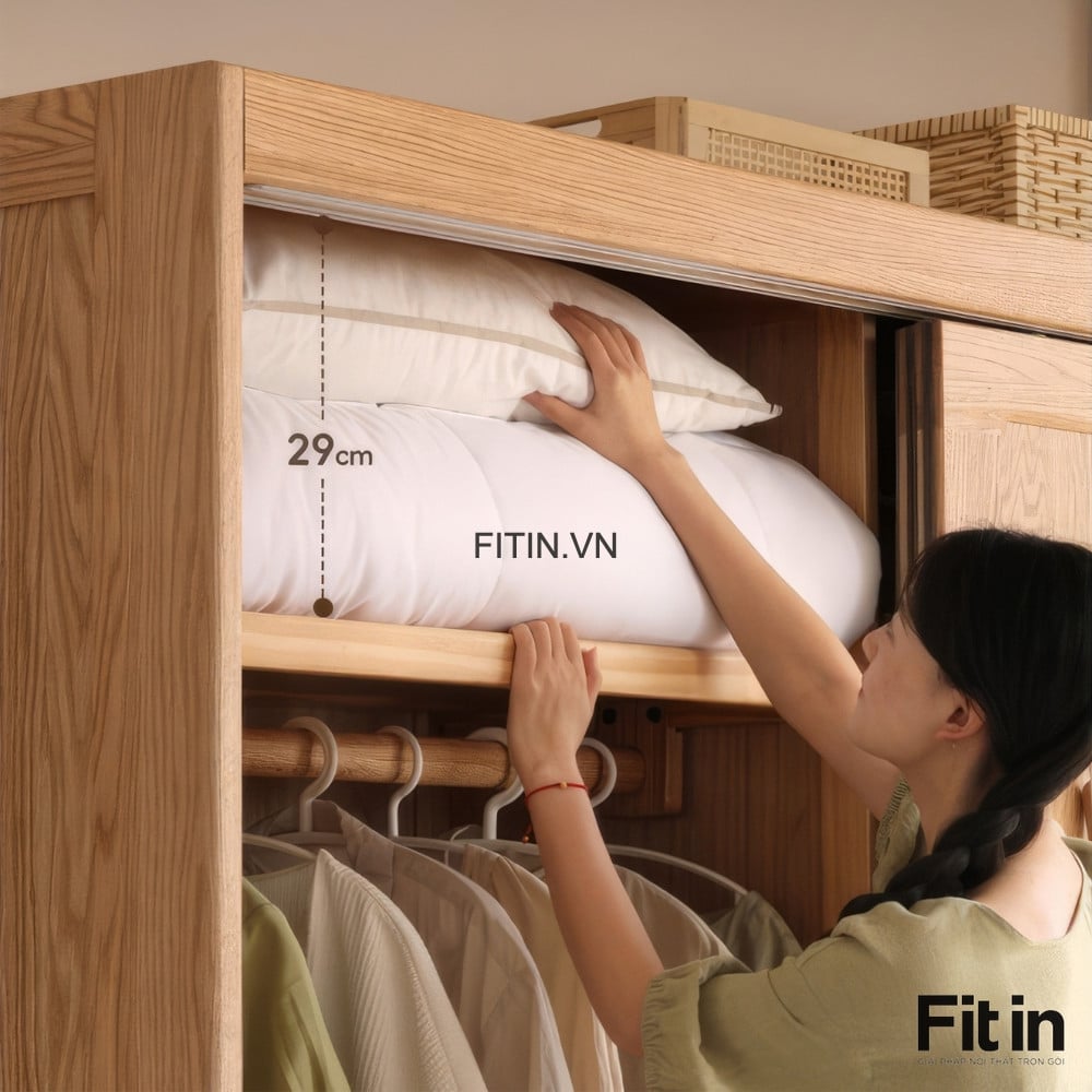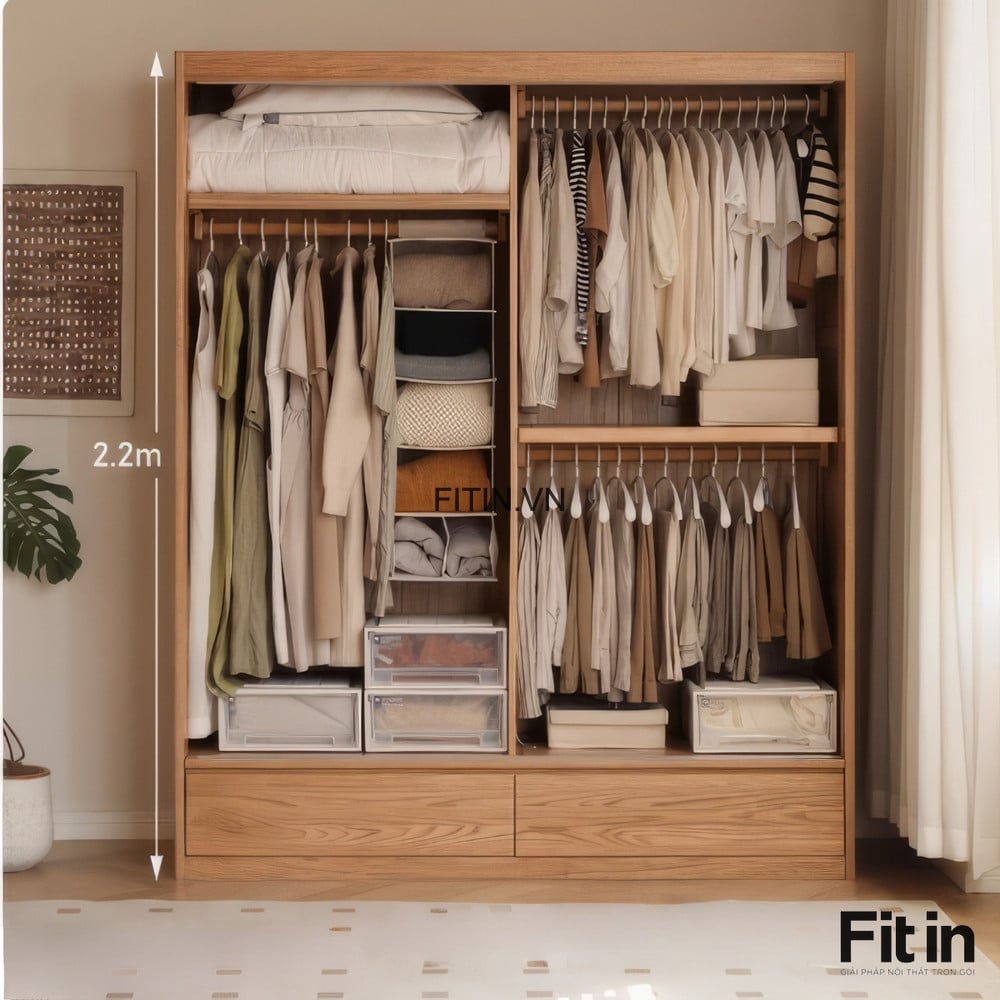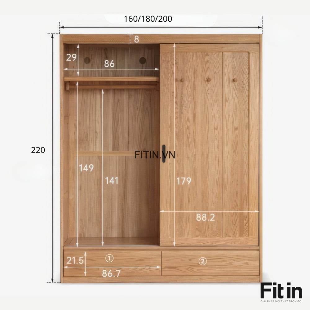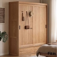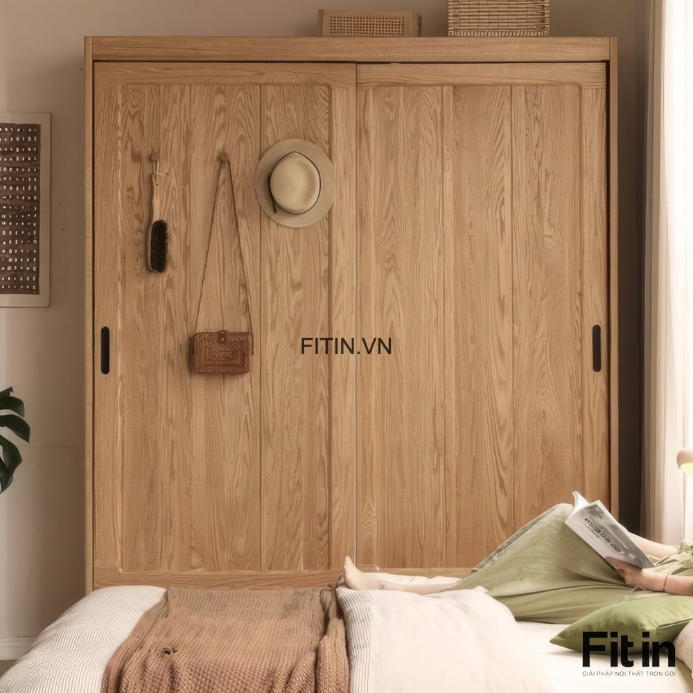 Tủ Áo Cửa Lùa 2 Tầng Gỗ Sồi Màu Tự Nhiên Chất Lượng Hiện Đại