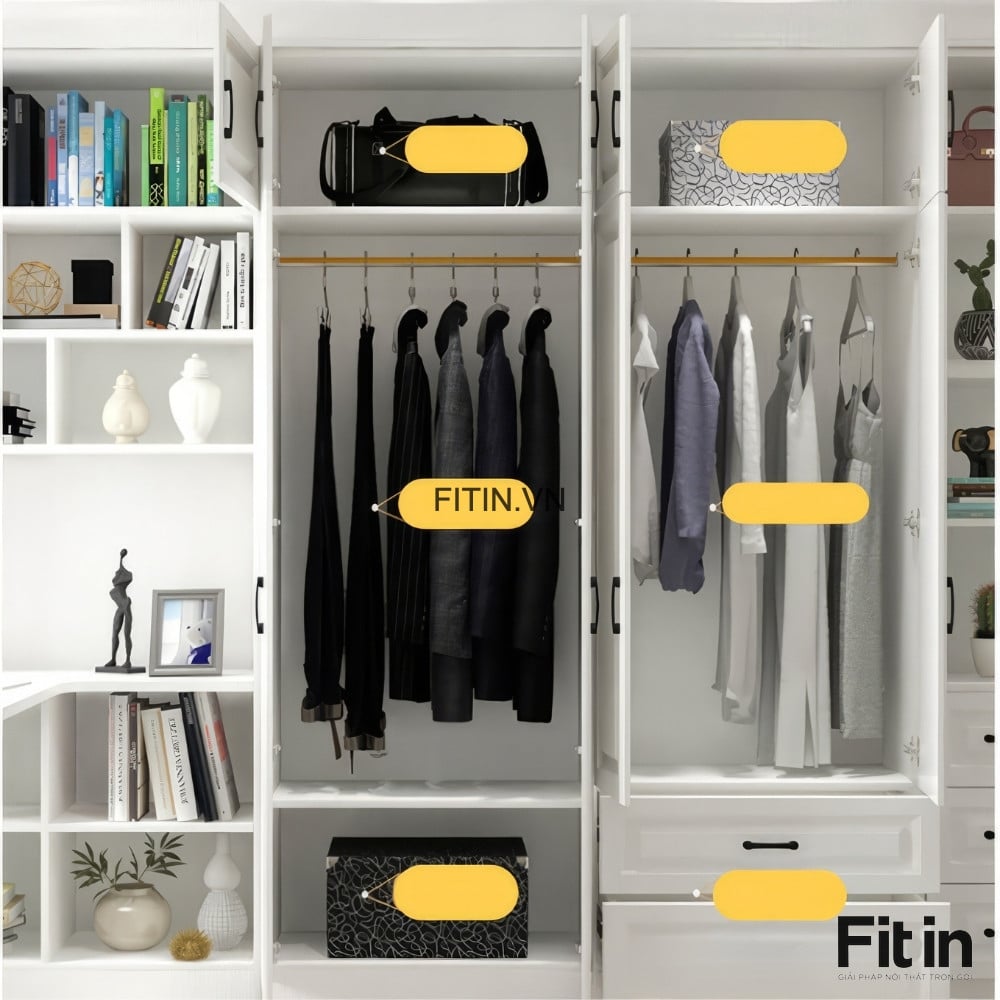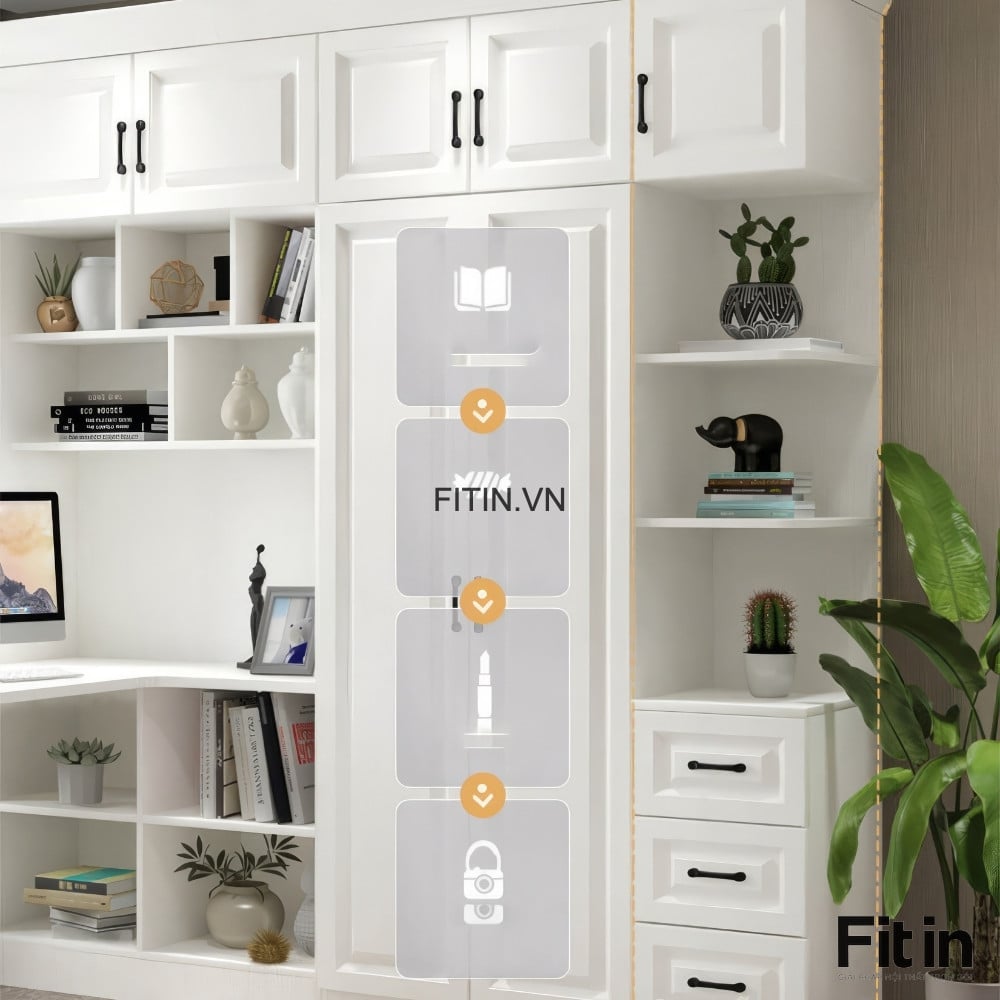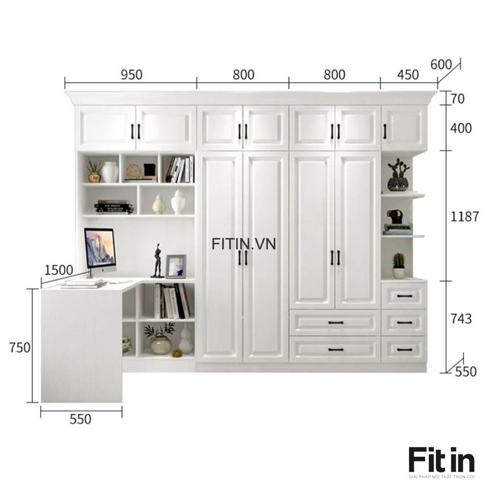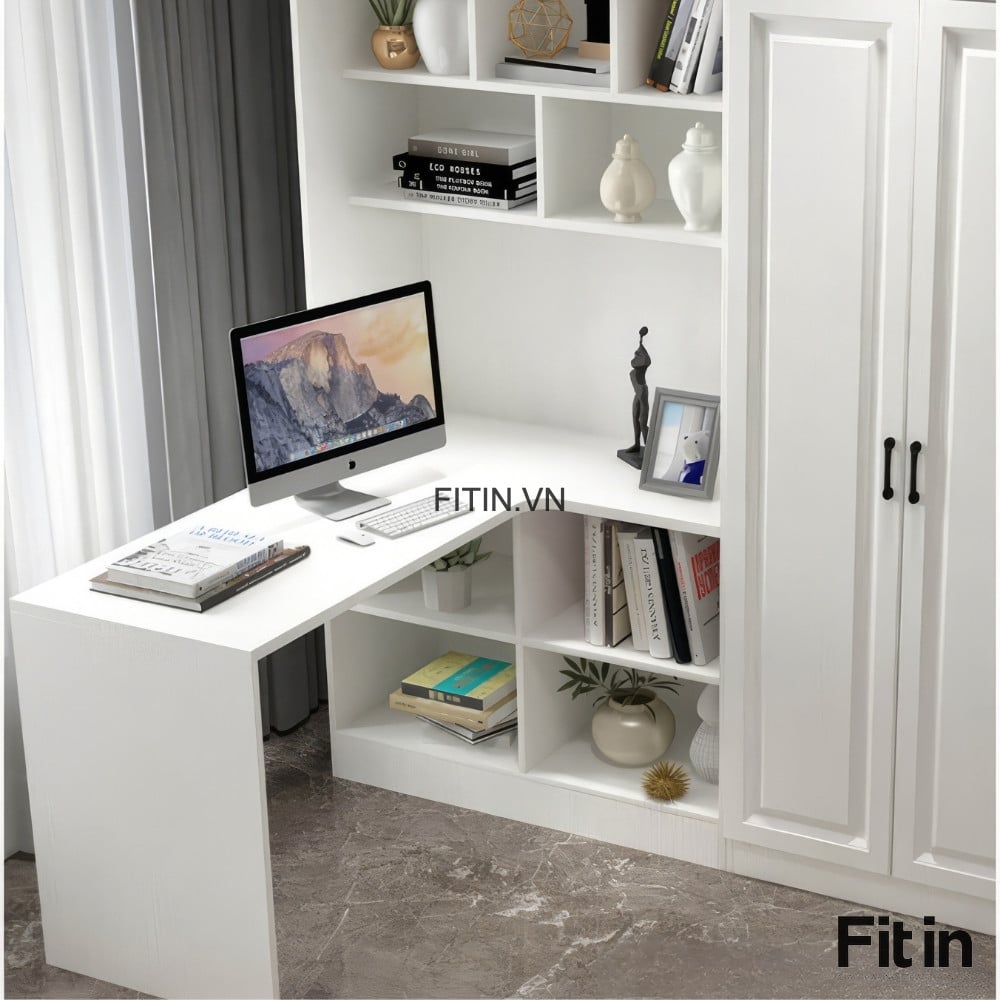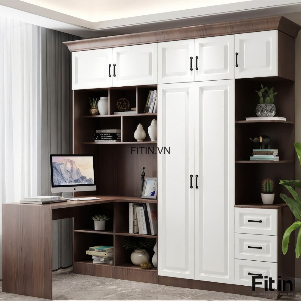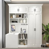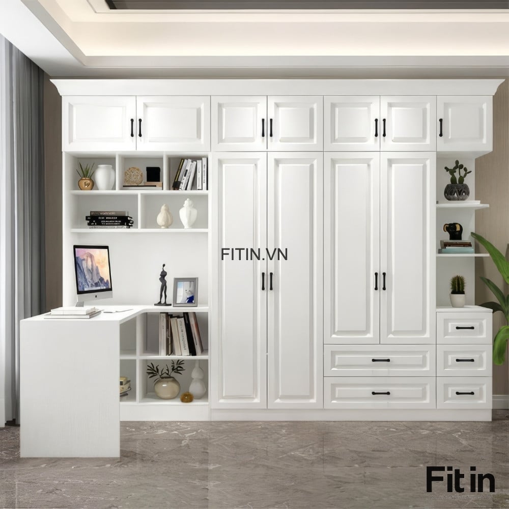 Tủ Áo Quần Đẹp Liền Bàn Làm Việc Cánh Sơn Trắng Sang Trọng