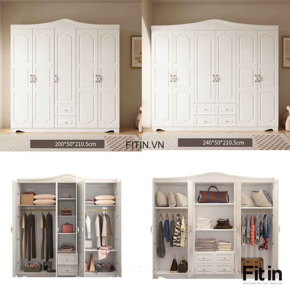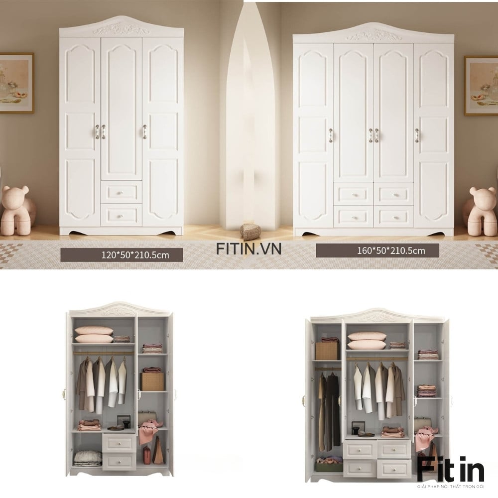 Tủ Áo Tân Cổ Điển Gỗ Công Nghiệp Sơn Trắng Cao Cấp