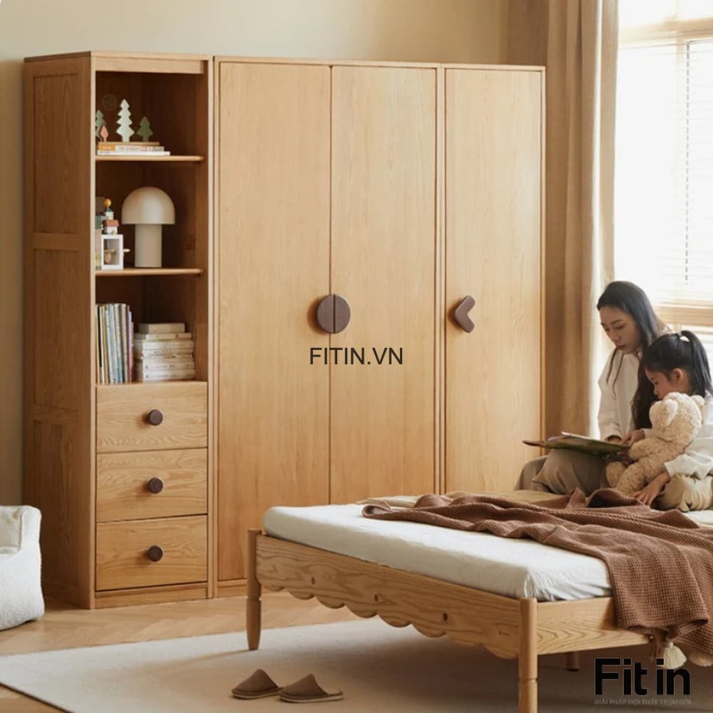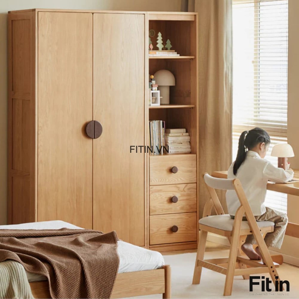 Tủ Áo Trẻ Em Gỗ Sồi Kèm Kệ Để Đồ Chất Lượng Hiện Đại