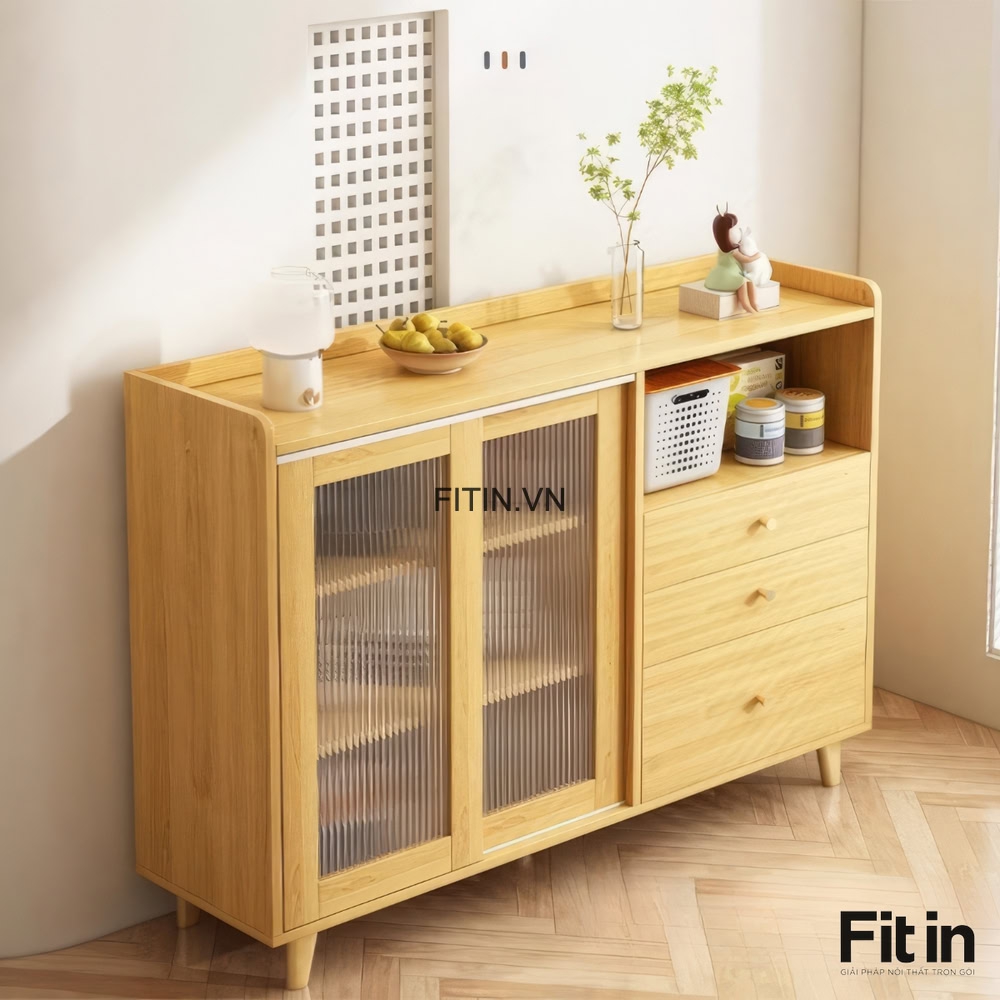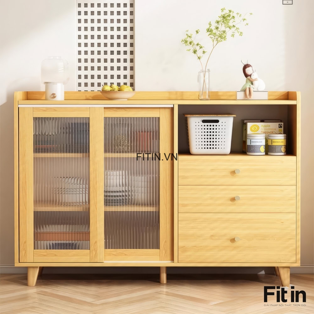 Tủ Chén Gỗ Công Nghiệp Dáng Thấp Kiểu Chân Cao Nhỏ Gọn