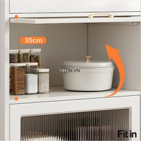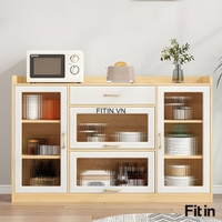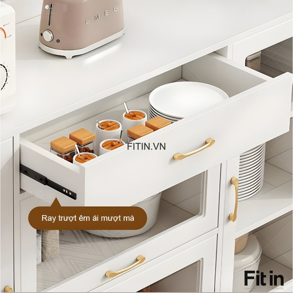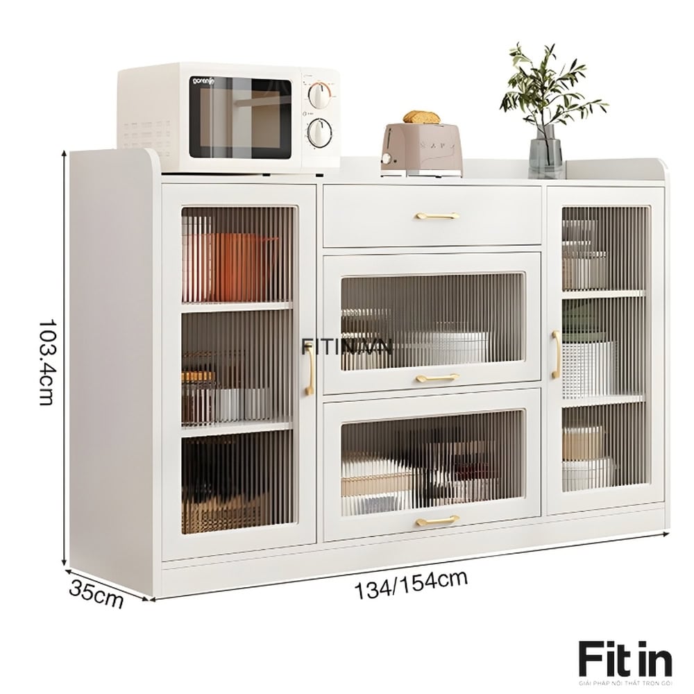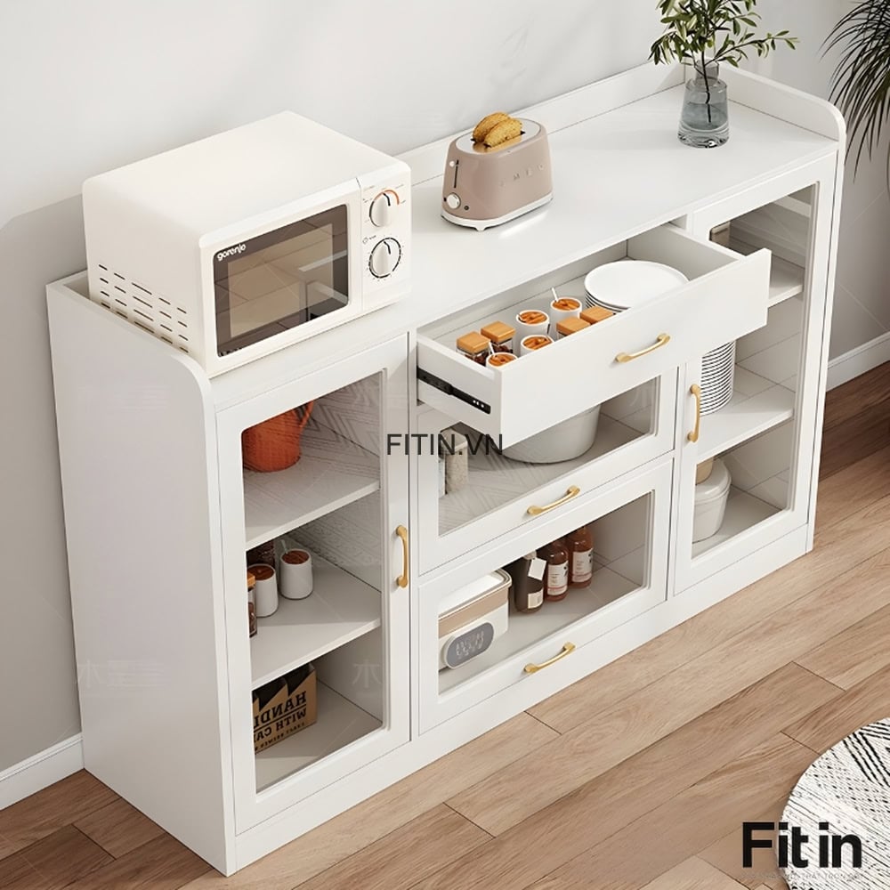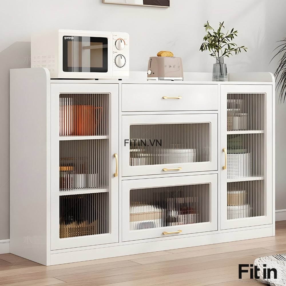 Tủ Chén Gỗ Thấp Cánh Kính Sọc Khung Gỗ MDF Nhỏ Gọn Hiện Đại