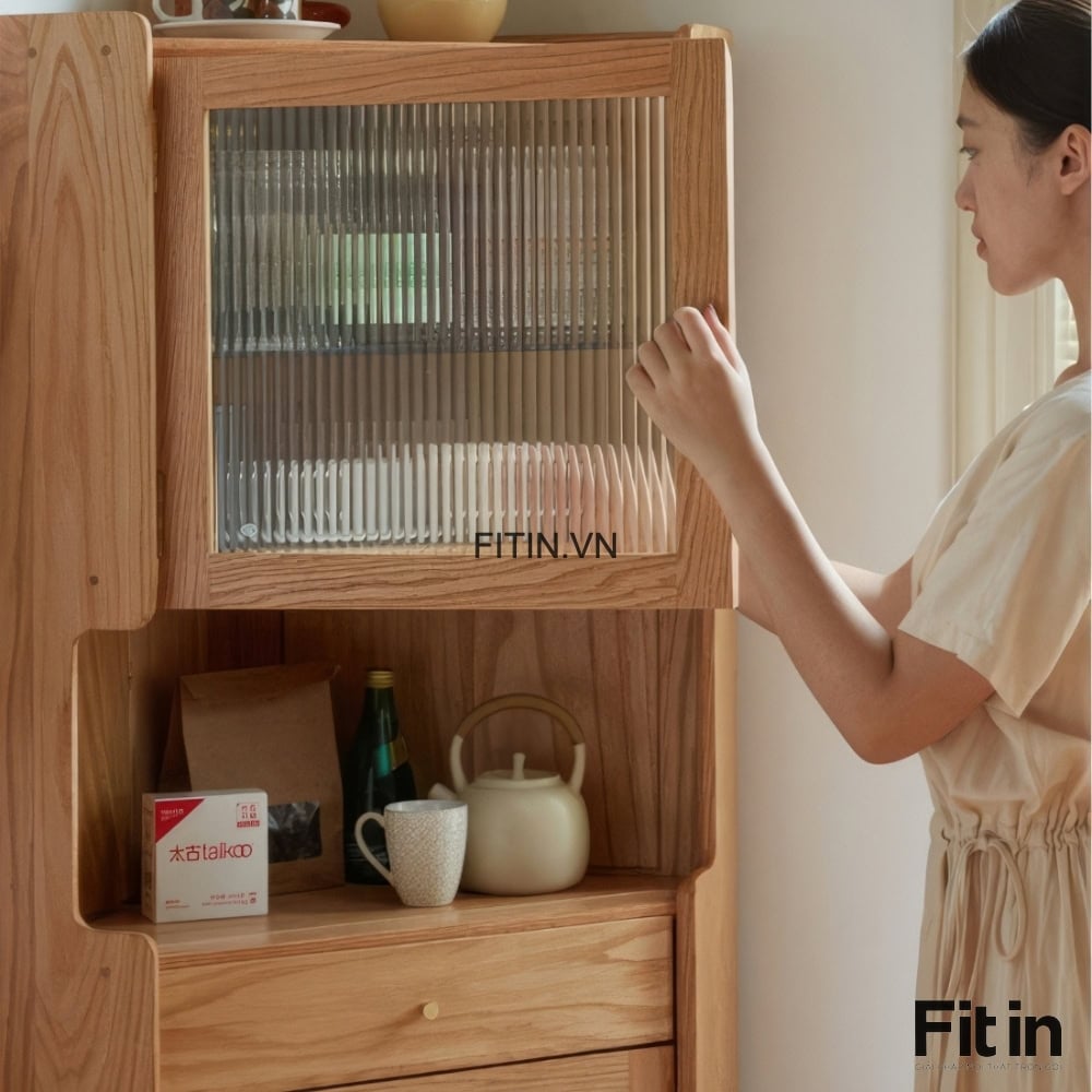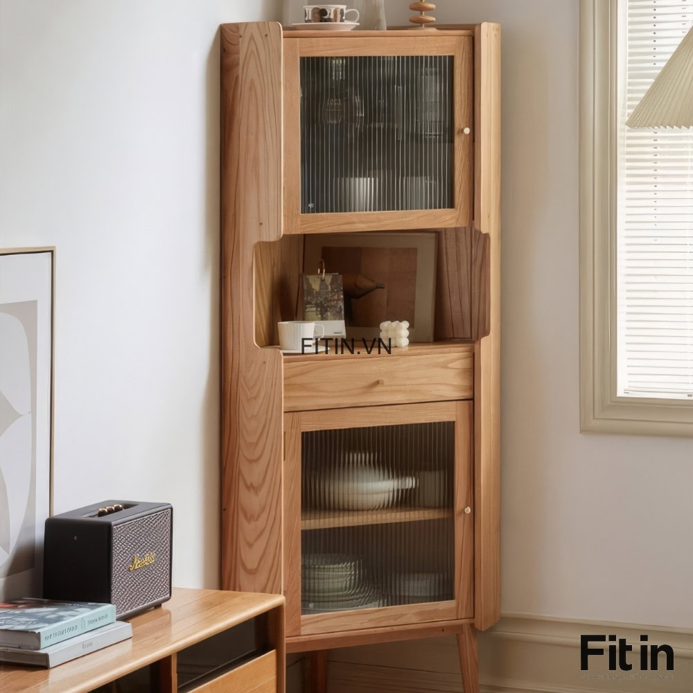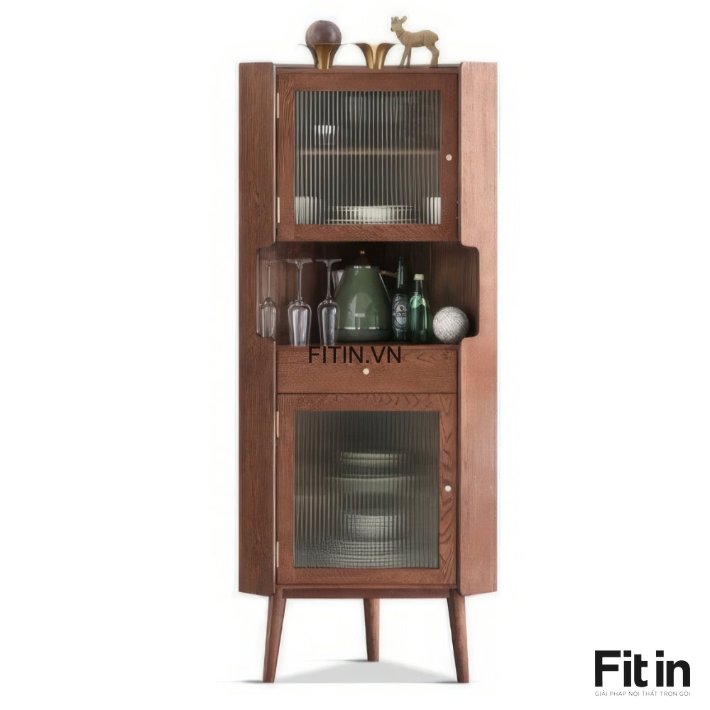 Tủ Chén Nhỏ Gọn Để Góc Tường Gỗ Sồi Tối Ưu Không Gian