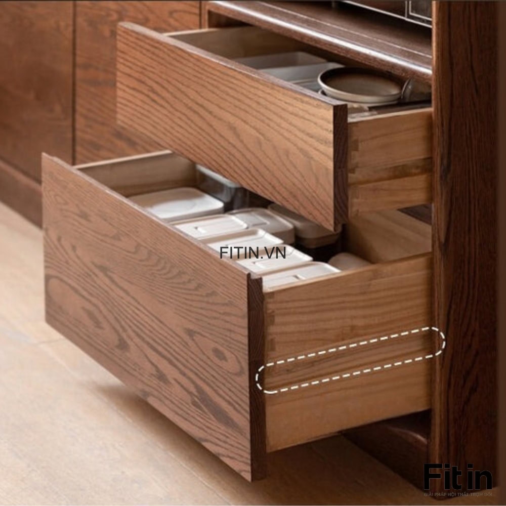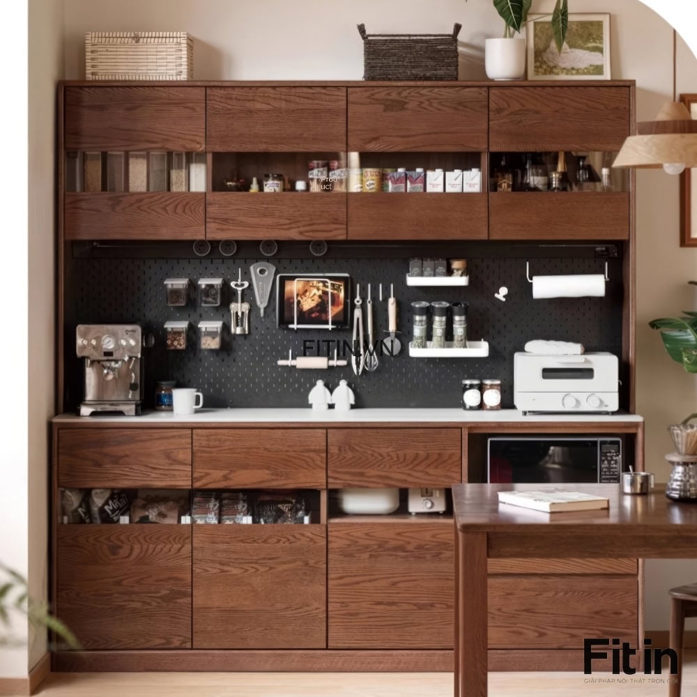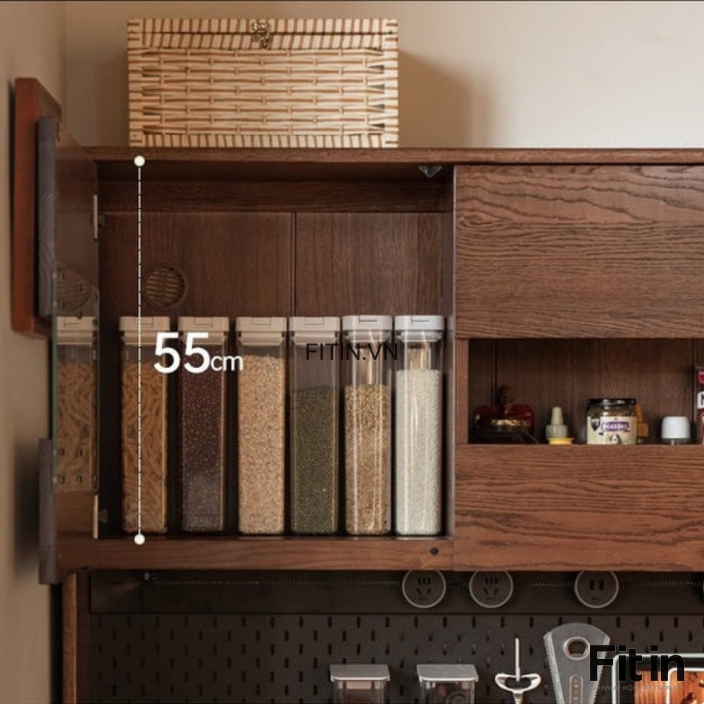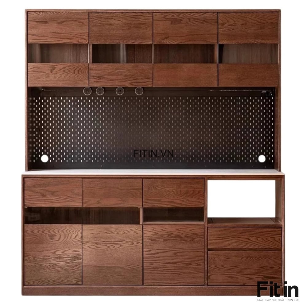 Tủ Để Đồ Khô Nhà Bếp Gỗ Sồi Màu Óc Chó Tối Ưu Hiện Đại