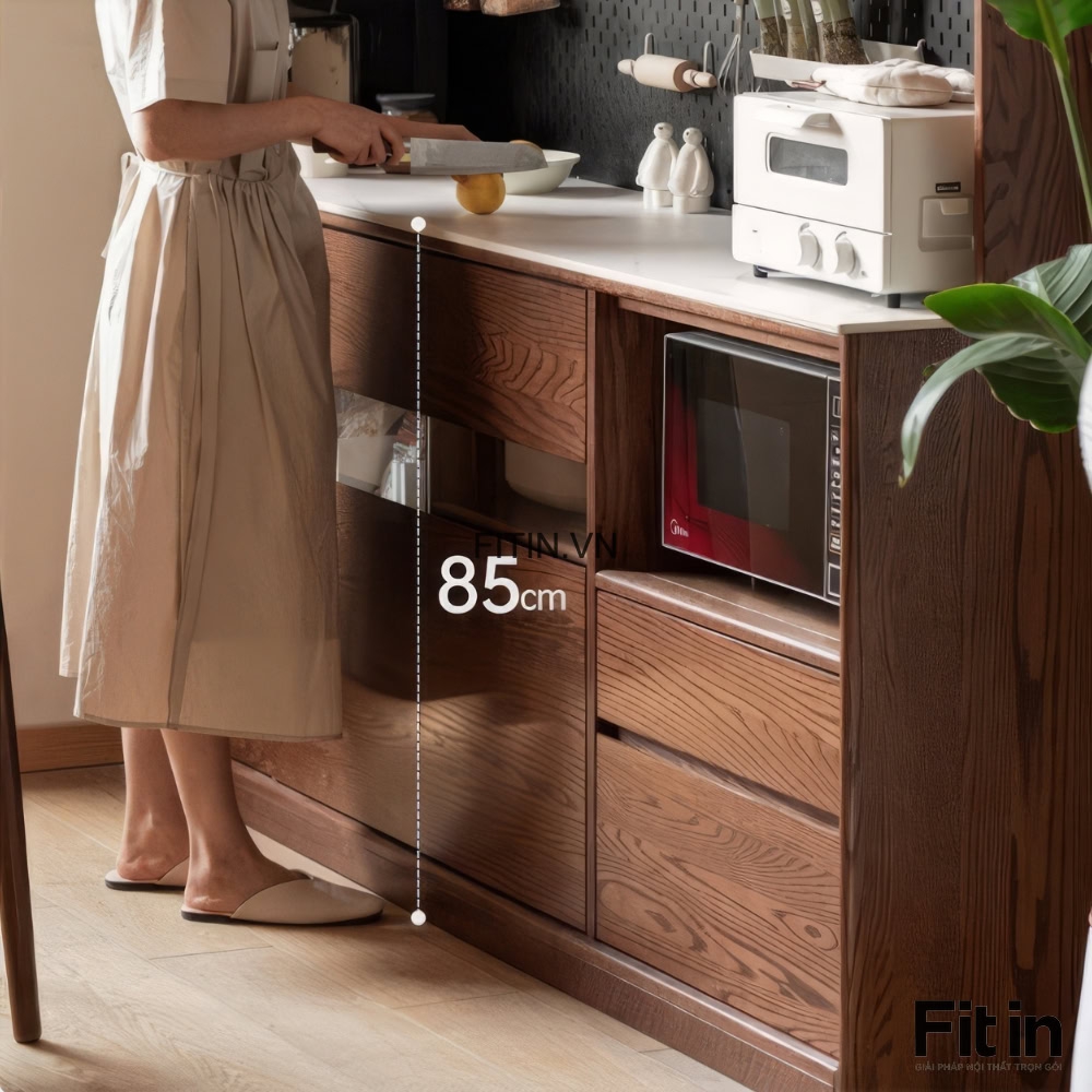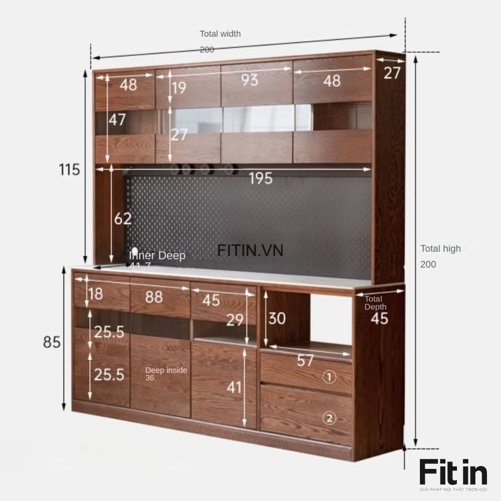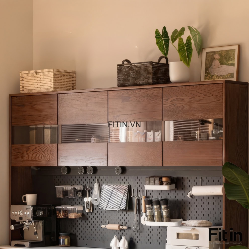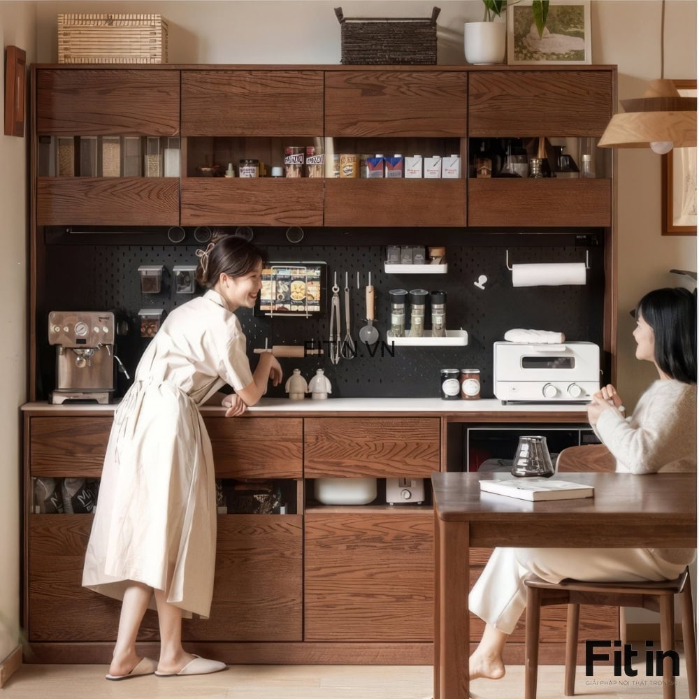 Tủ Để Đồ Khô Nhà Bếp Gỗ Sồi Màu Óc Chó Tối Ưu Hiện Đại