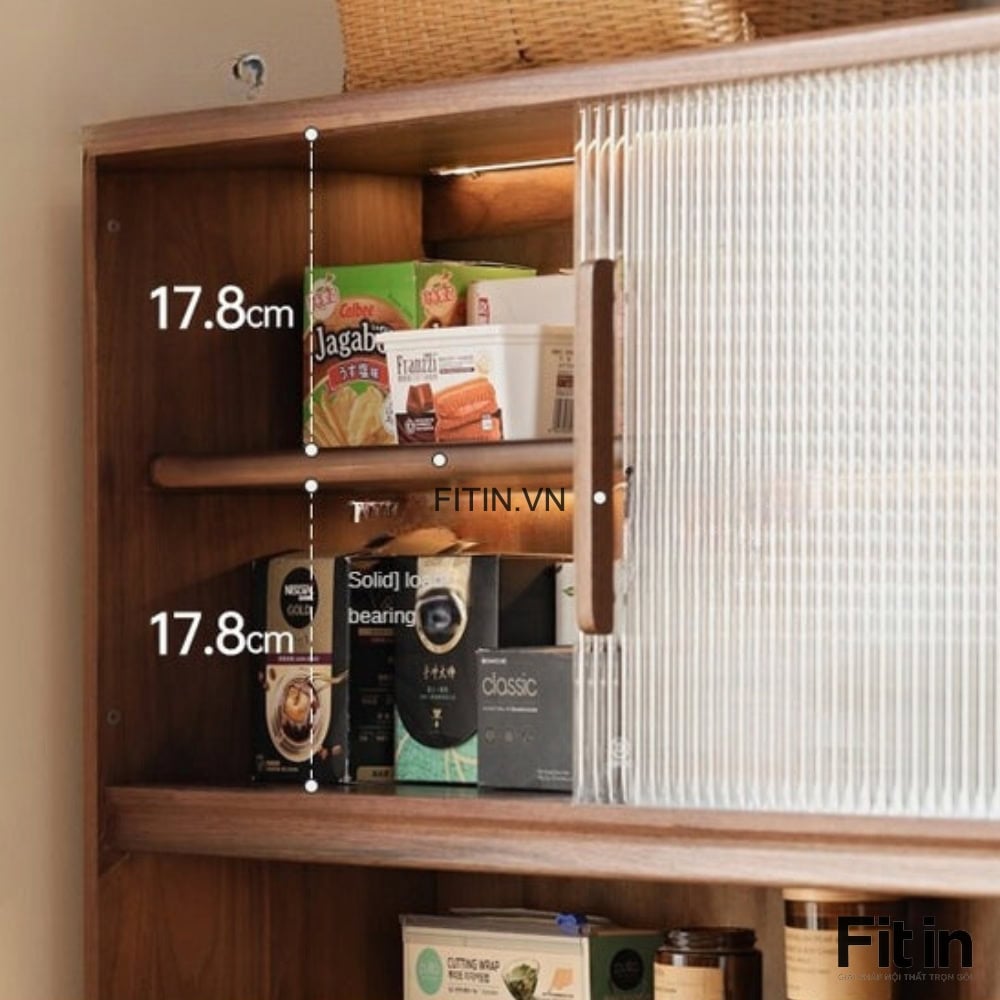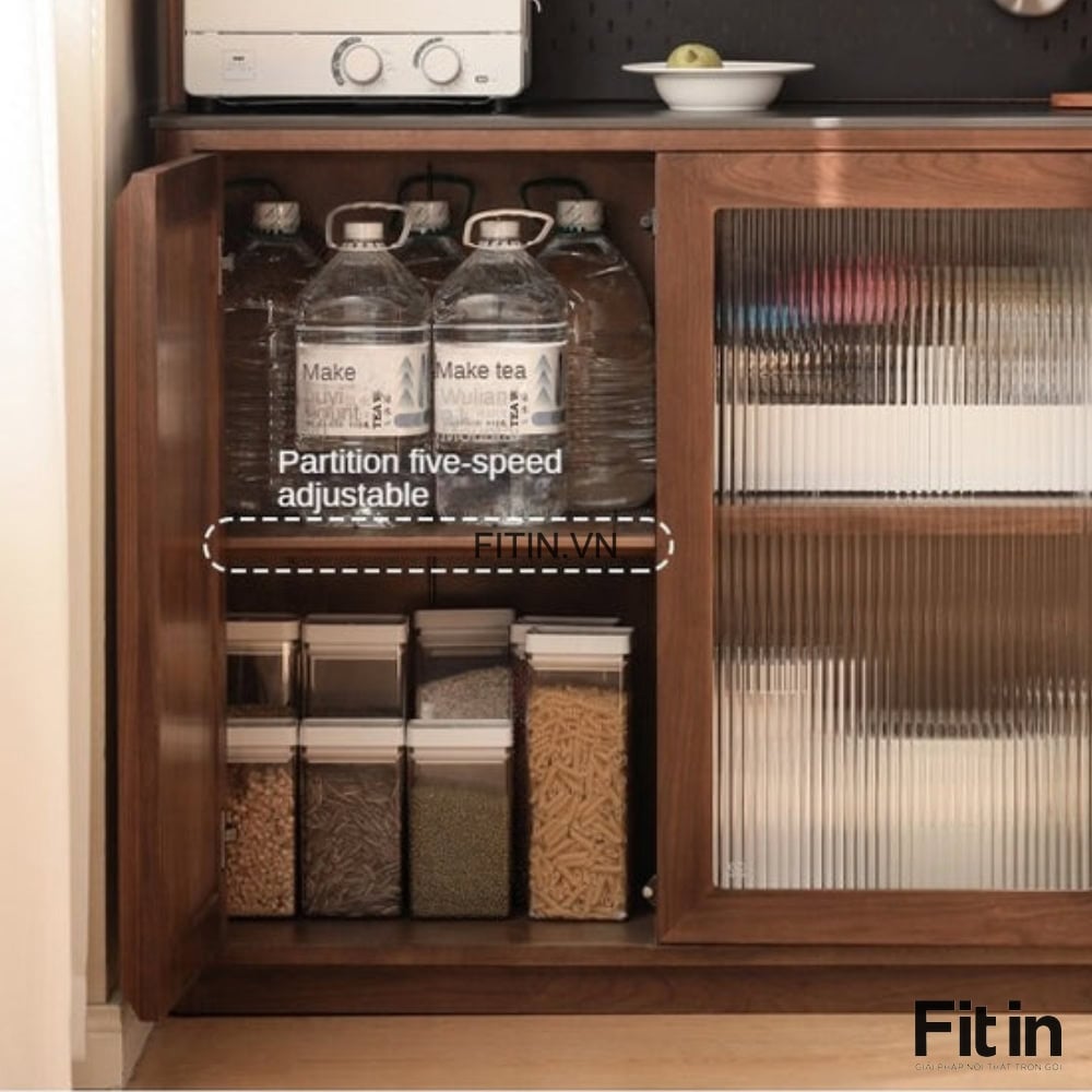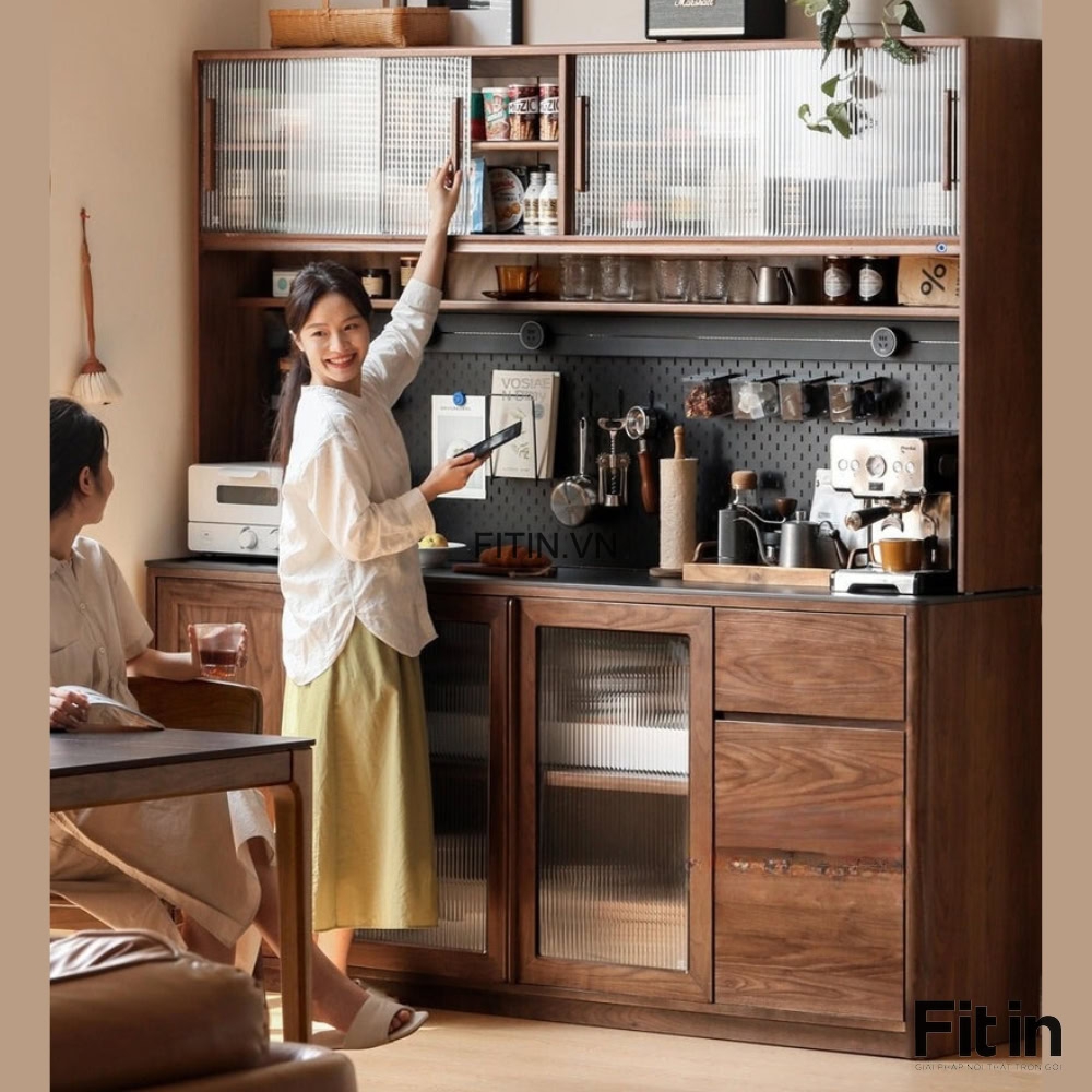 Tủ Để Đồ Khô Nhà Bếp Gỗ Sồi Tự Nhiên 2 Tầng Màu Óc Chó