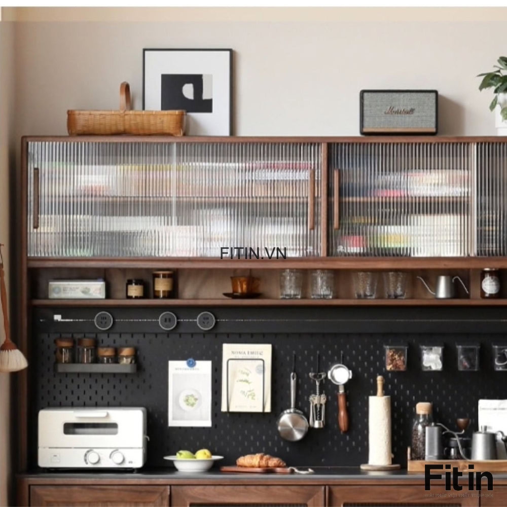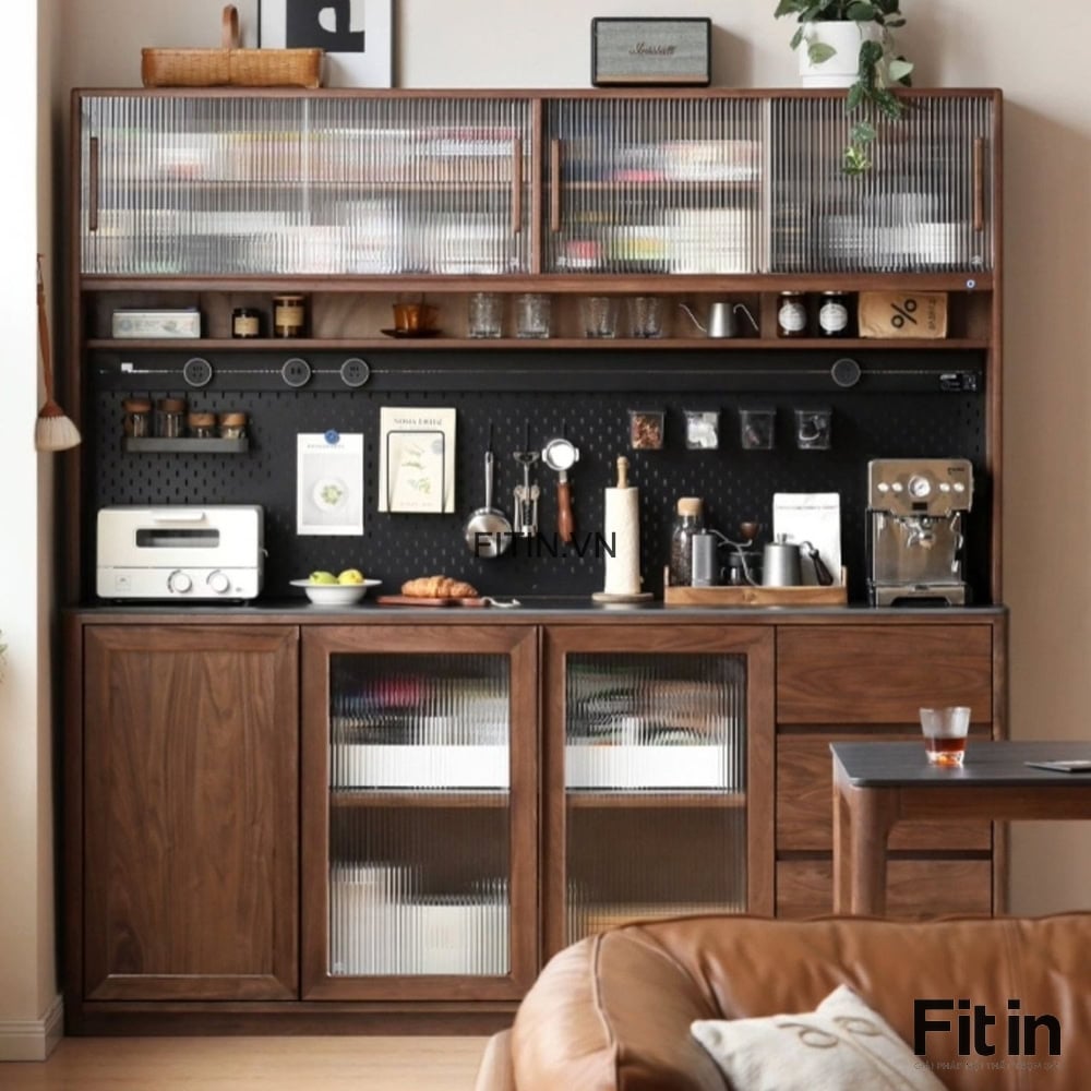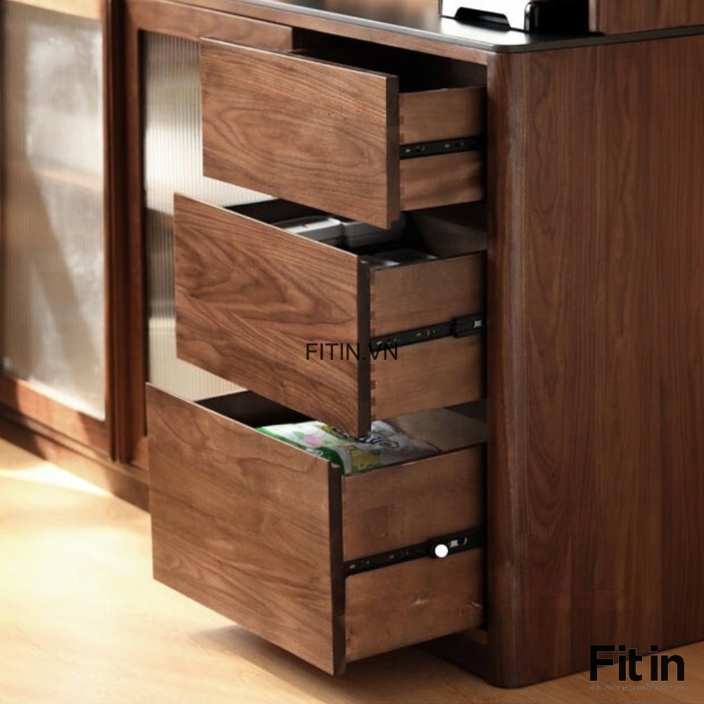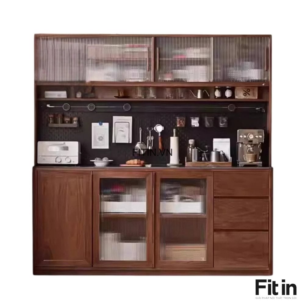 Tủ Để Đồ Khô Nhà Bếp Gỗ Sồi Tự Nhiên 2 Tầng Màu Óc Chó