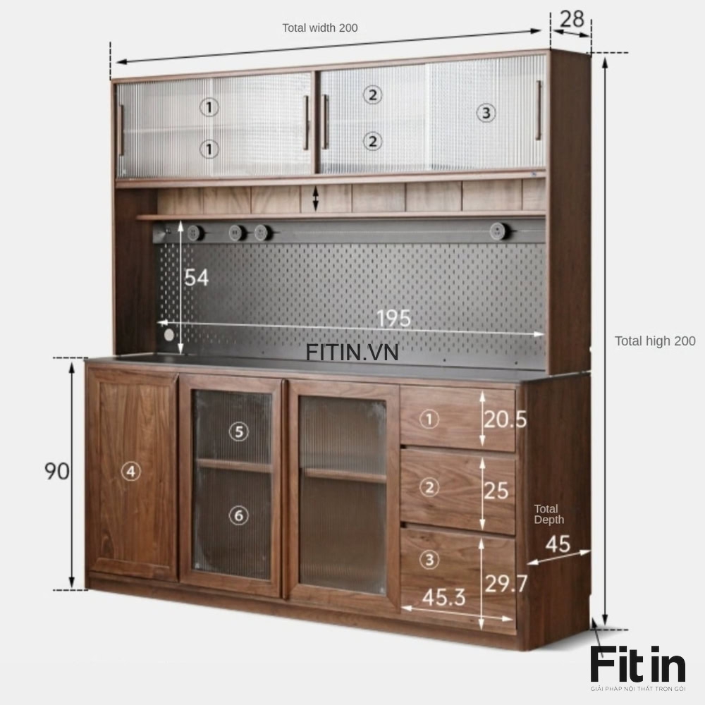 Kích thước: 200 x 45 x 200cm (rộng x sâu x cao)
