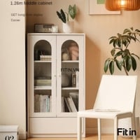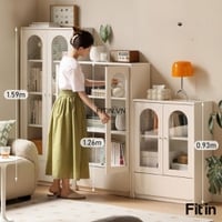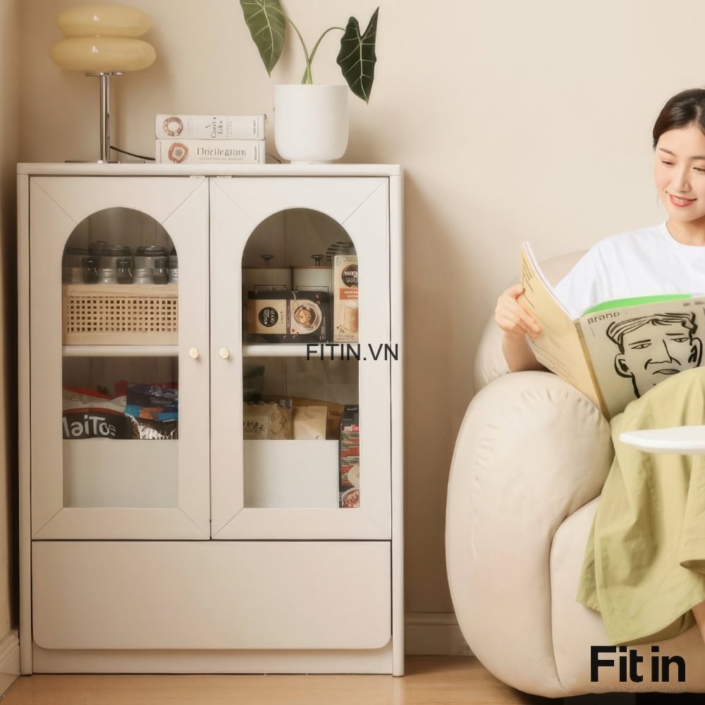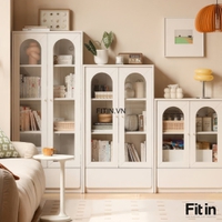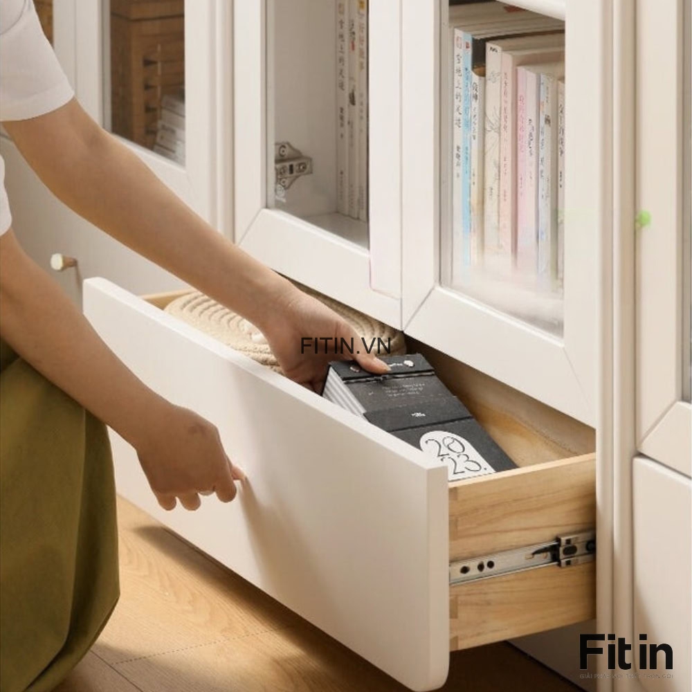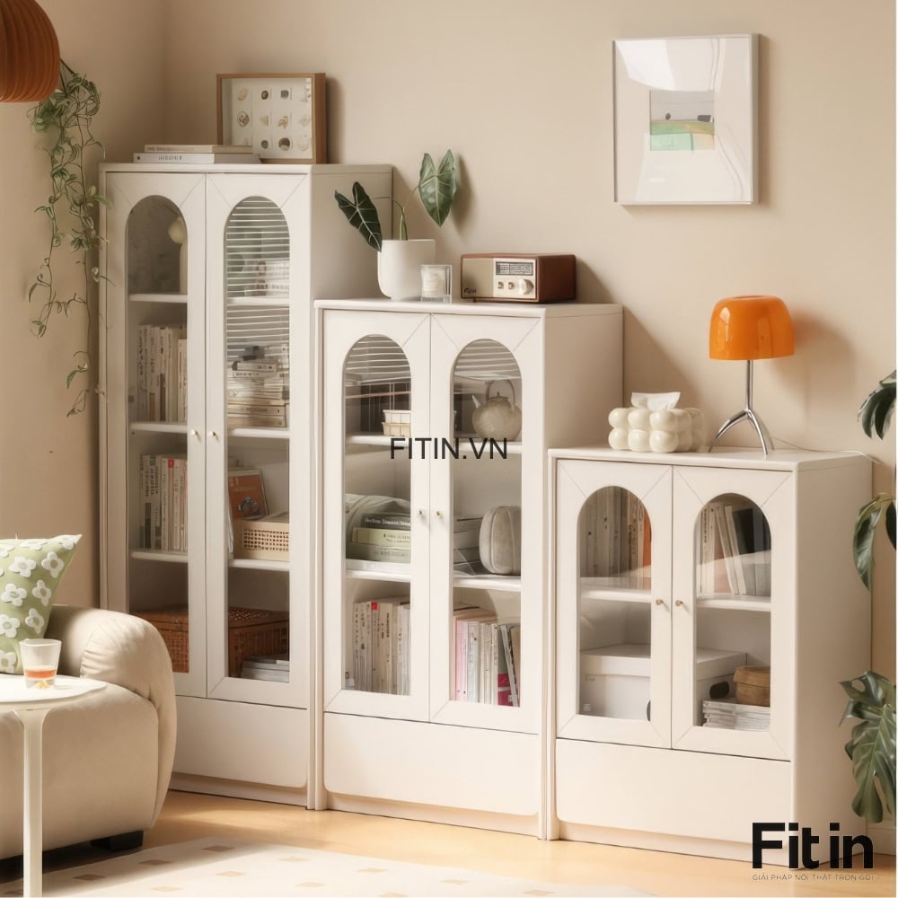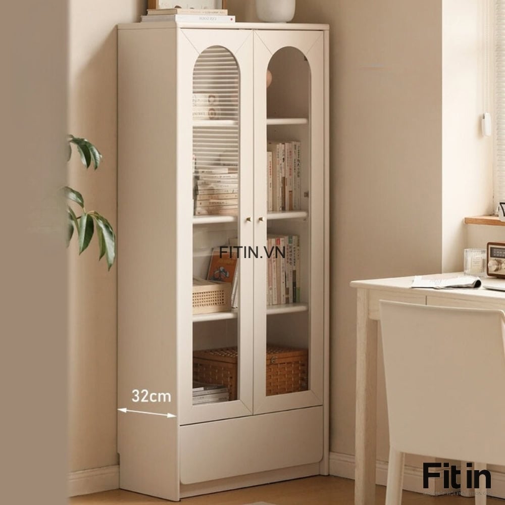 Tủ Để Sách Cánh Kính Gỗ Sồi Sơn Trắng Trang Trí Phòng