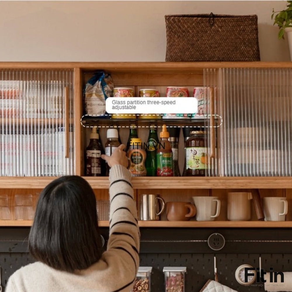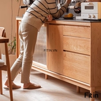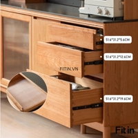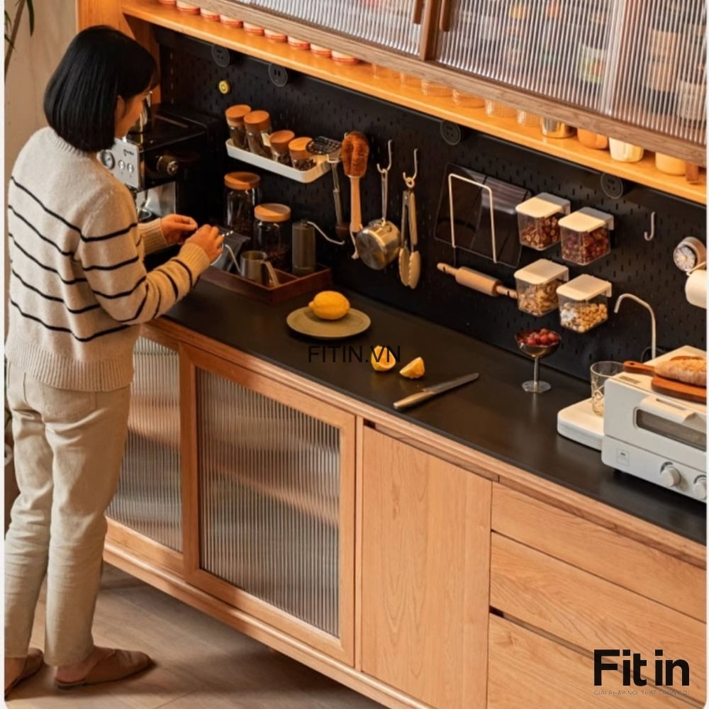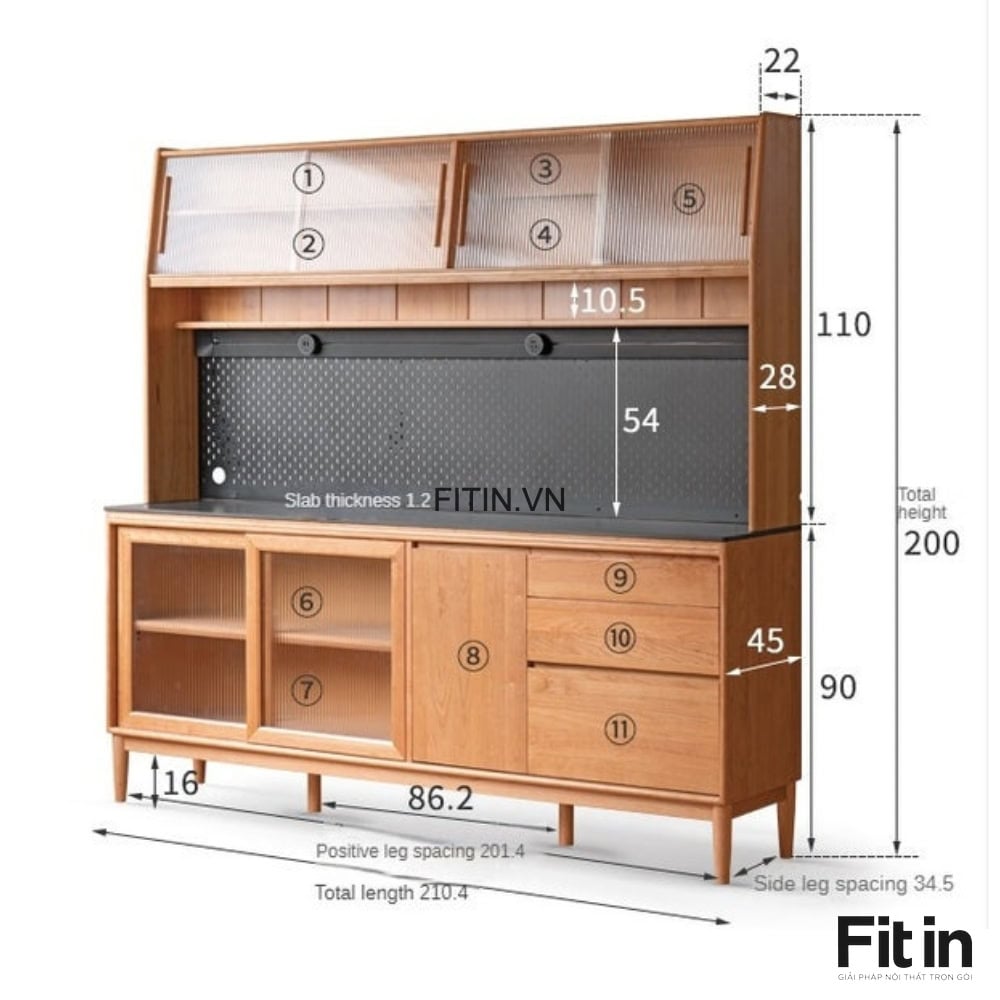 Tủ Đựng Bát Đĩa Xoong Nồi Gỗ Sồi Cánh Kính Sọc Kích Thước Lớn