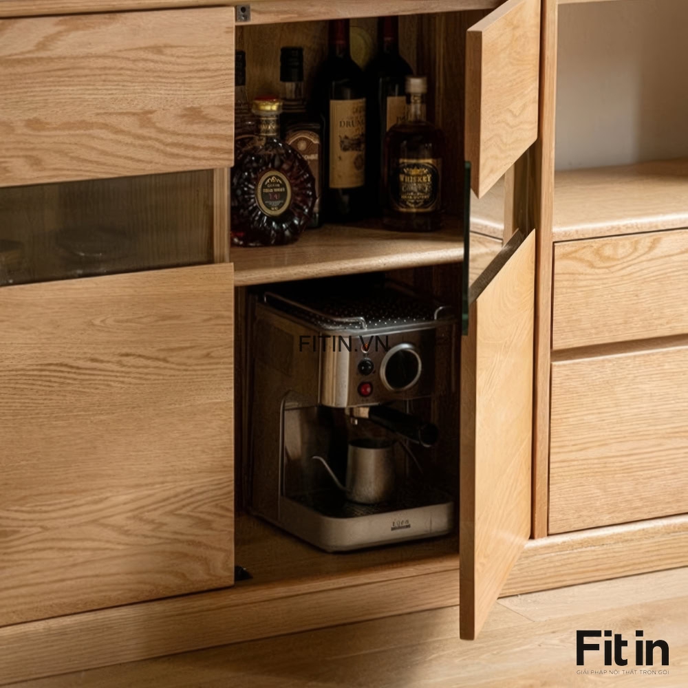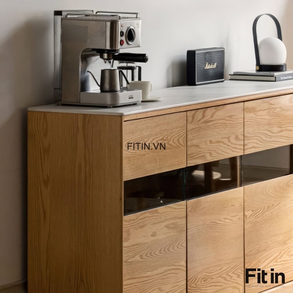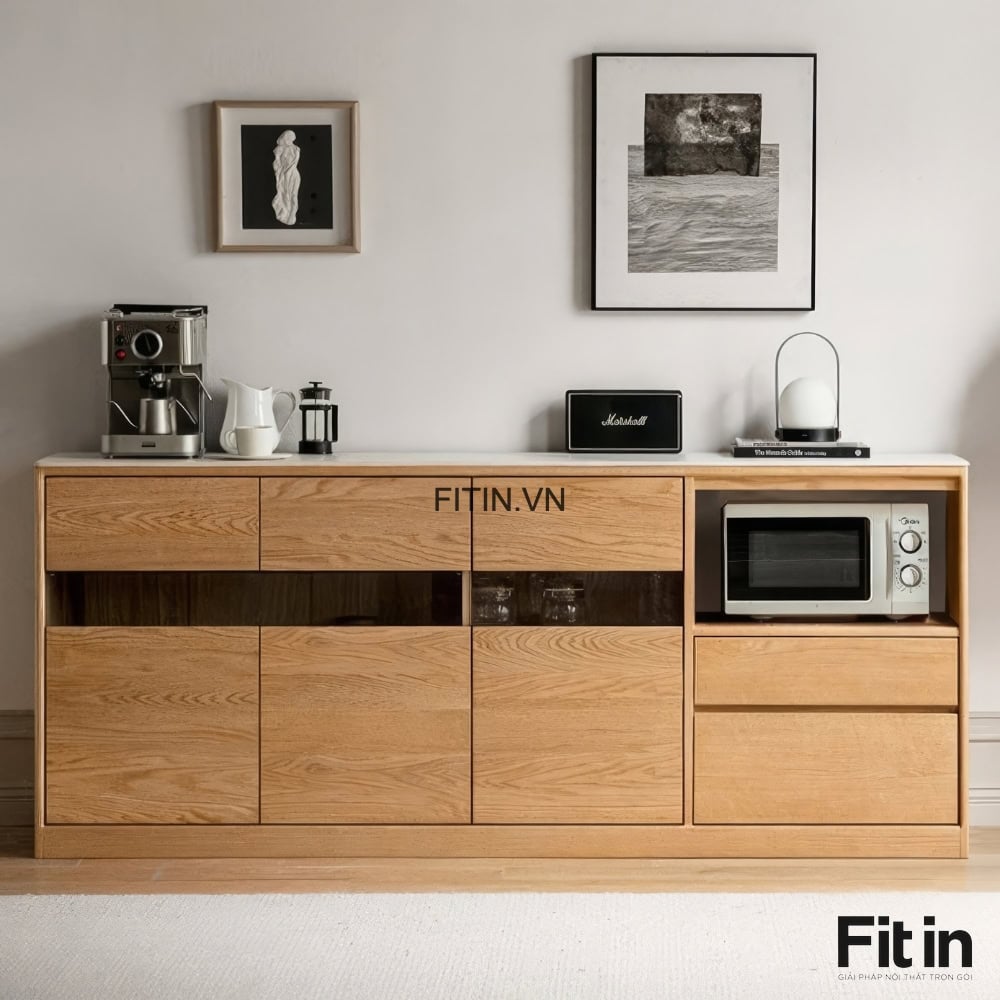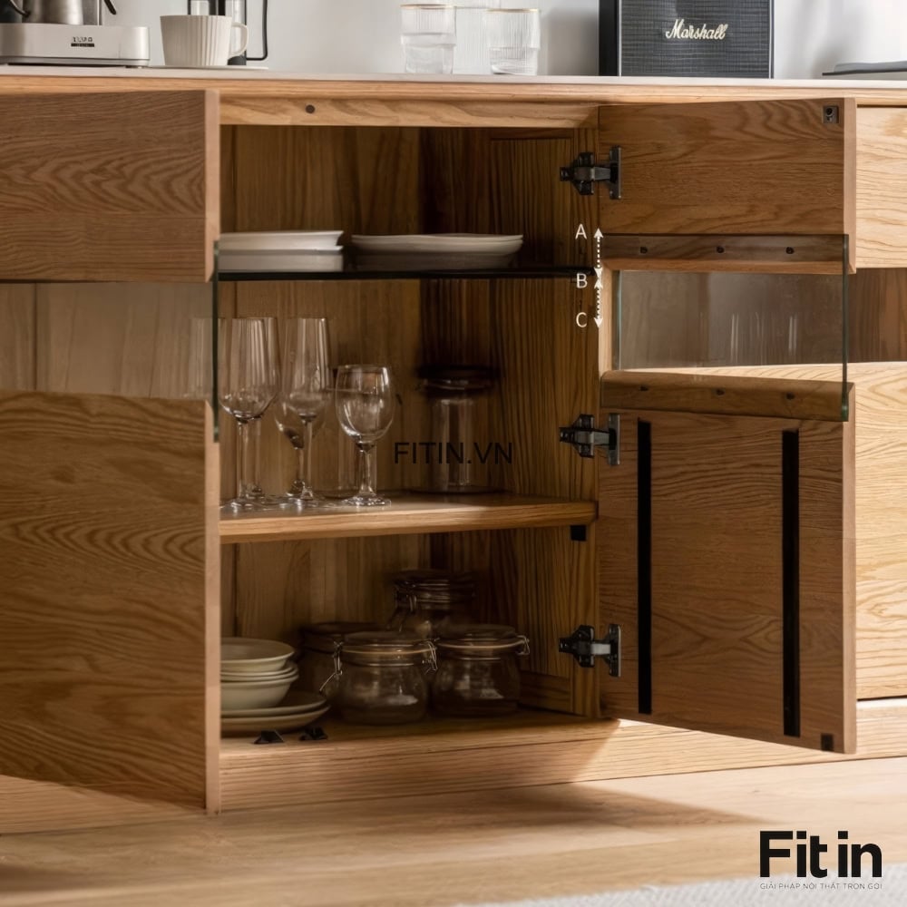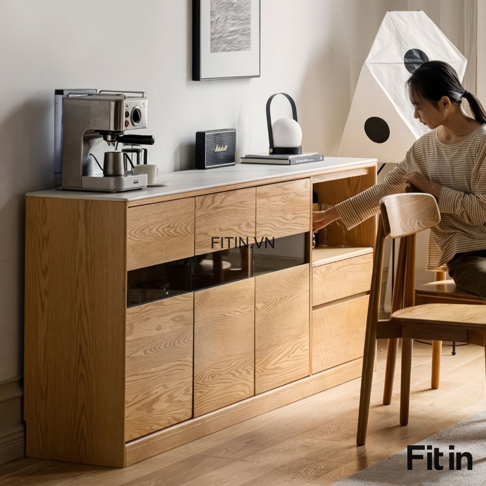 Tủ Đựng Chén Bát Bằng Gỗ Tự Nhiên Dáng Thấp Hiện Đại