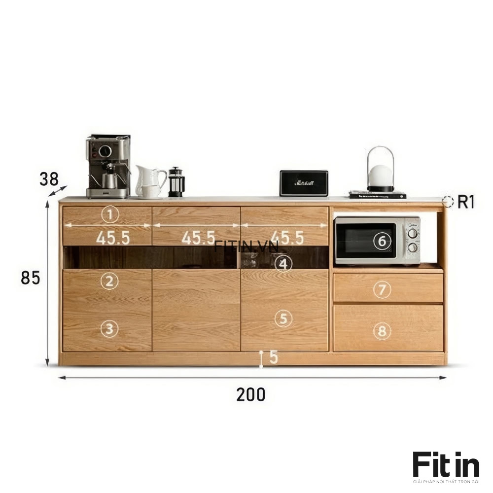 Kích thước: 200 x 38 x 85cm (rộng x sâu x cao)