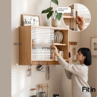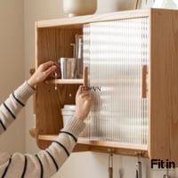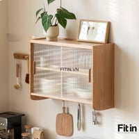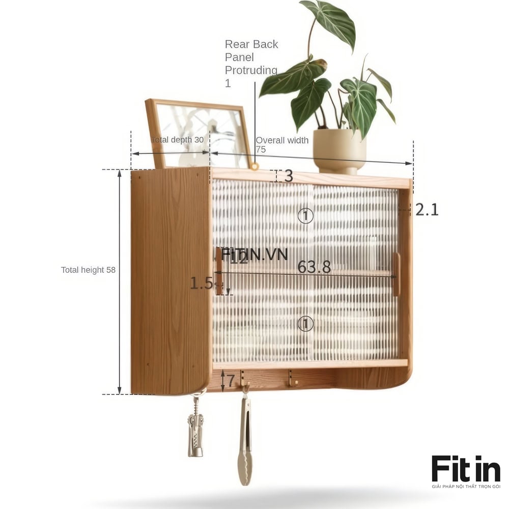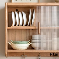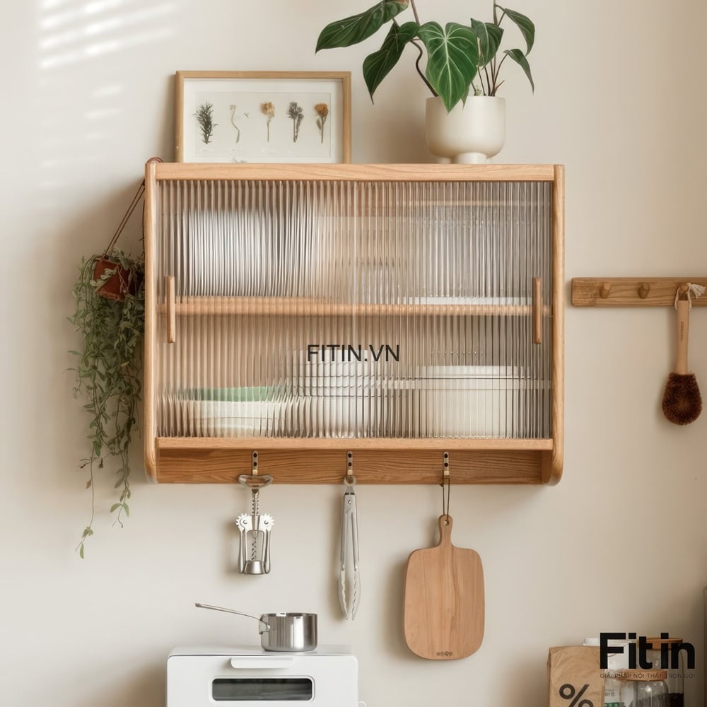Tủ Đựng Chén Bát Treo Tường Gỗ Sồi Cánh Kính Sọc Nhỏ Gọn