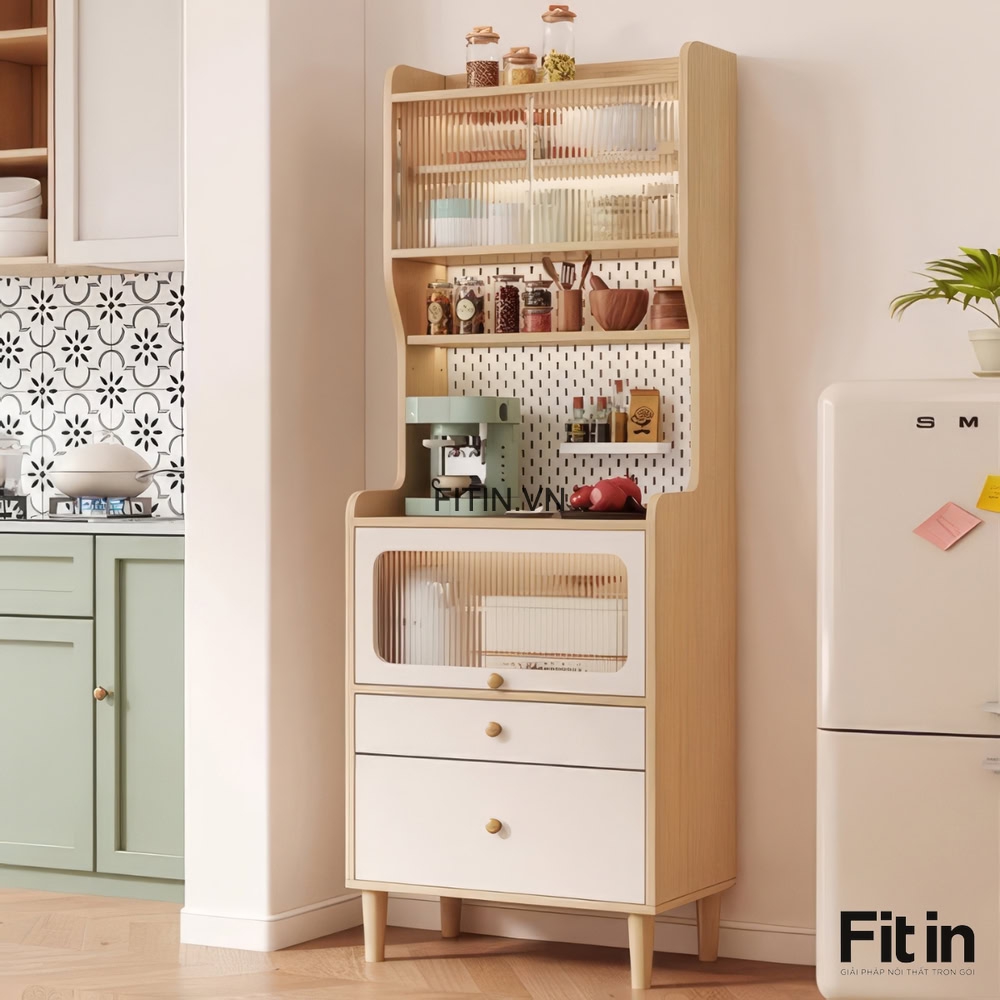 Tủ Đựng Cốc Chén Bằng Gỗ Công Nghiệp Dáng Cao Nhỏ Gọn
