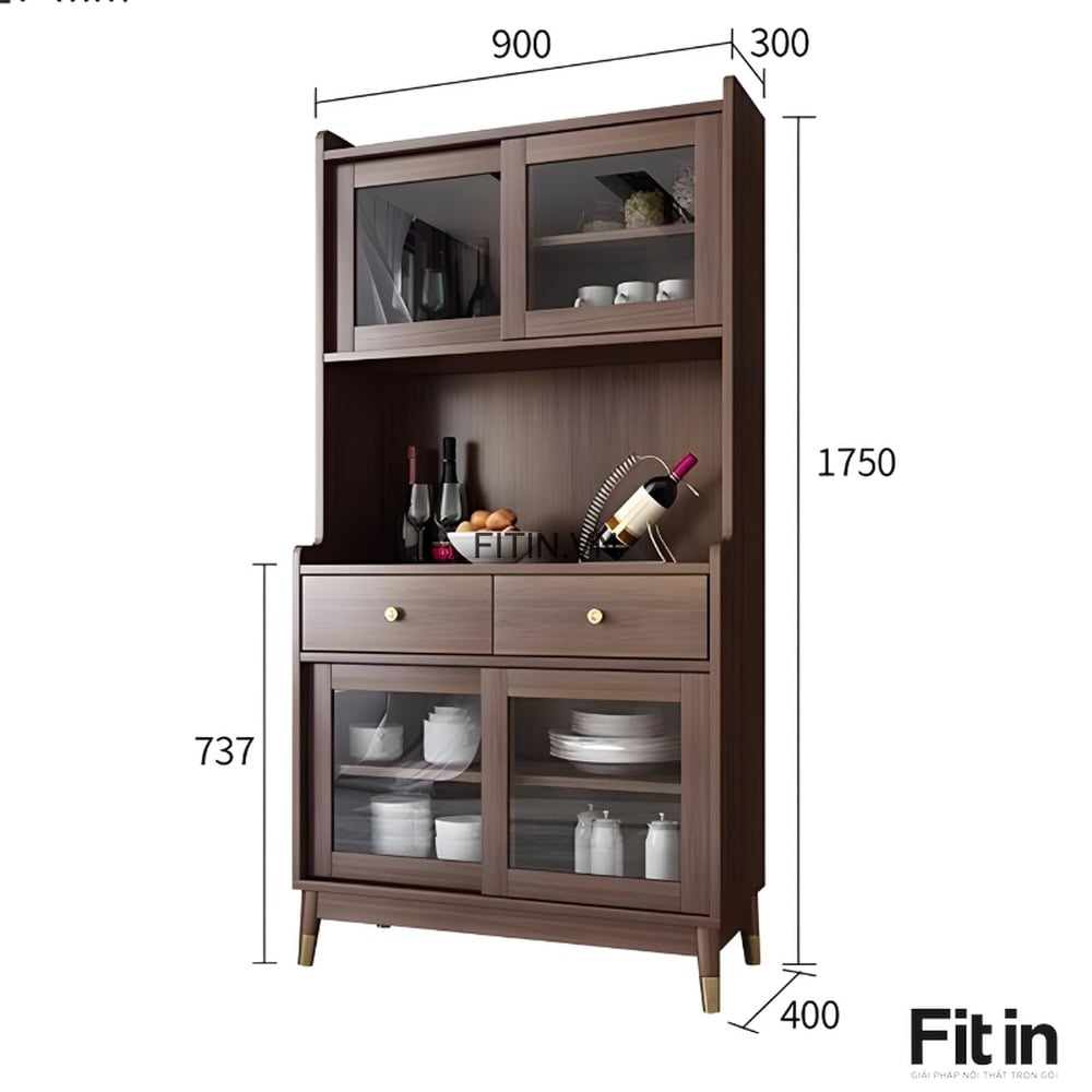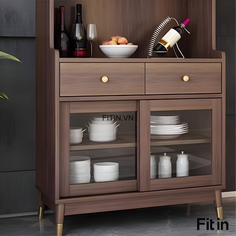 Tủ Đựng Cốc Chén Gỗ Công Nghiệp Kiểu Chân Cao Cửa Lùa