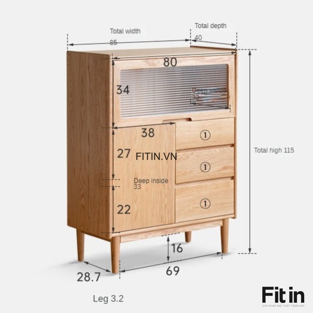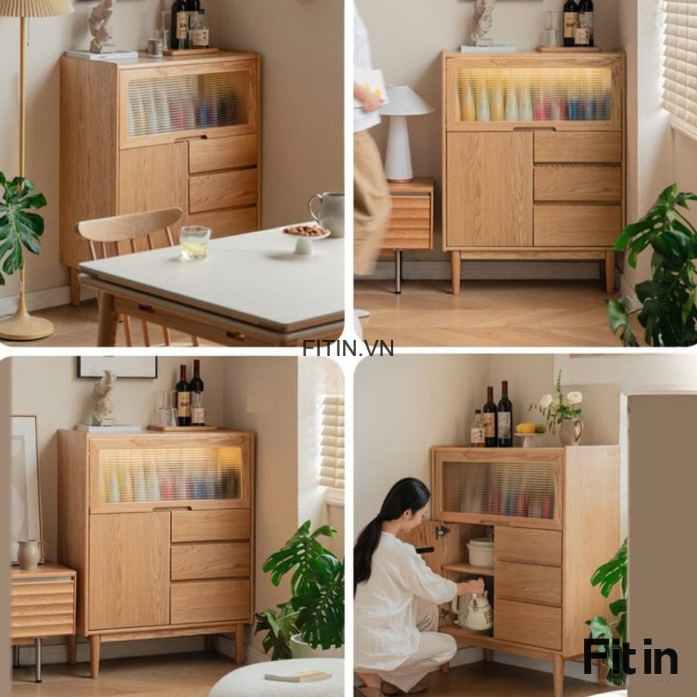 Tủ Đựng Đồ Khô Nhà Bếp Gỗ Sồi Tự Nhiên Nhỏ Gọn Hiện Đại