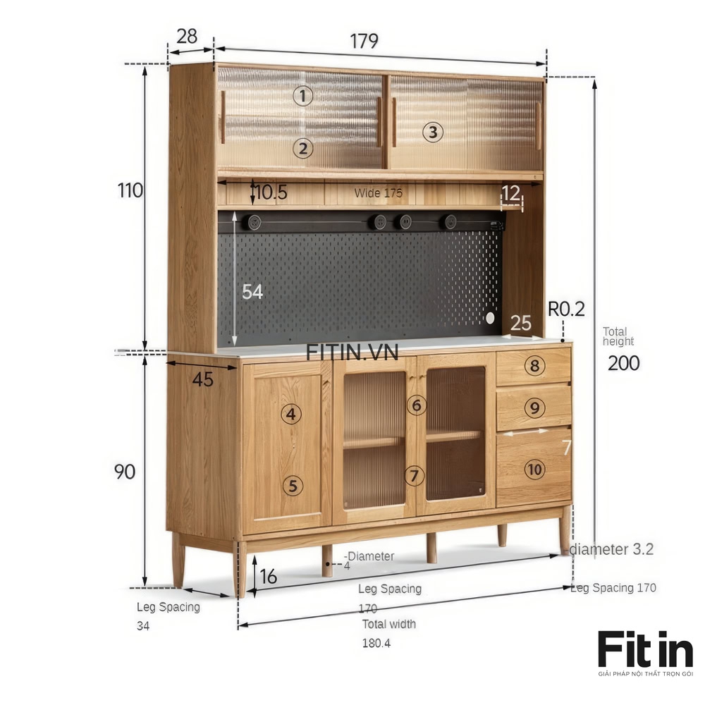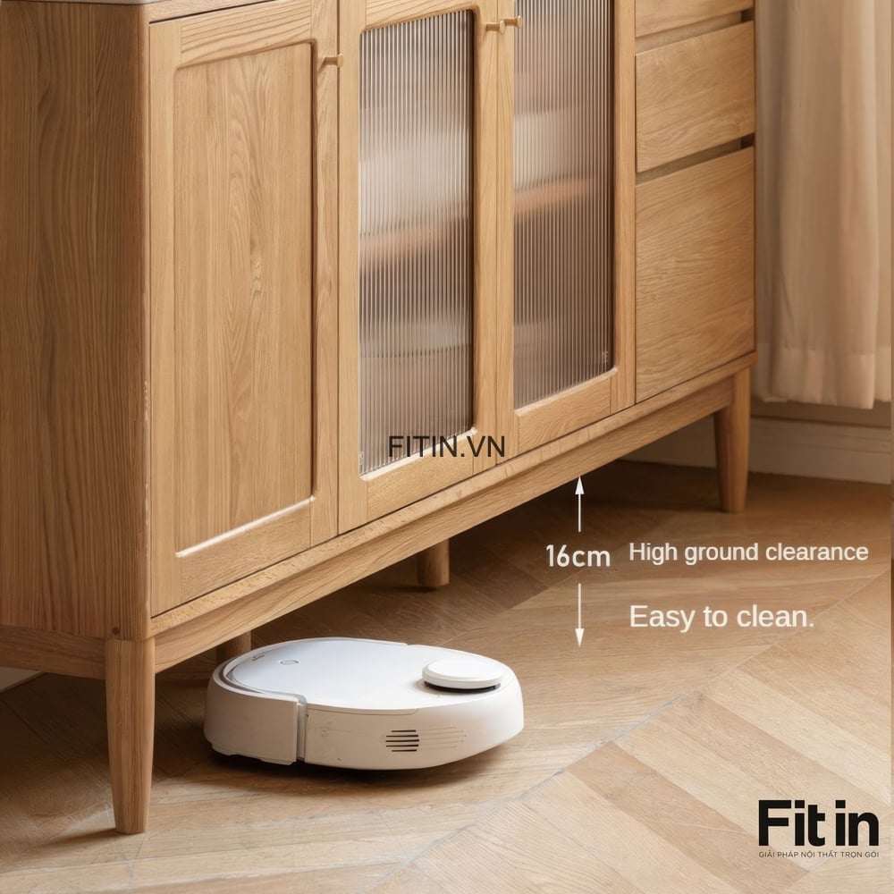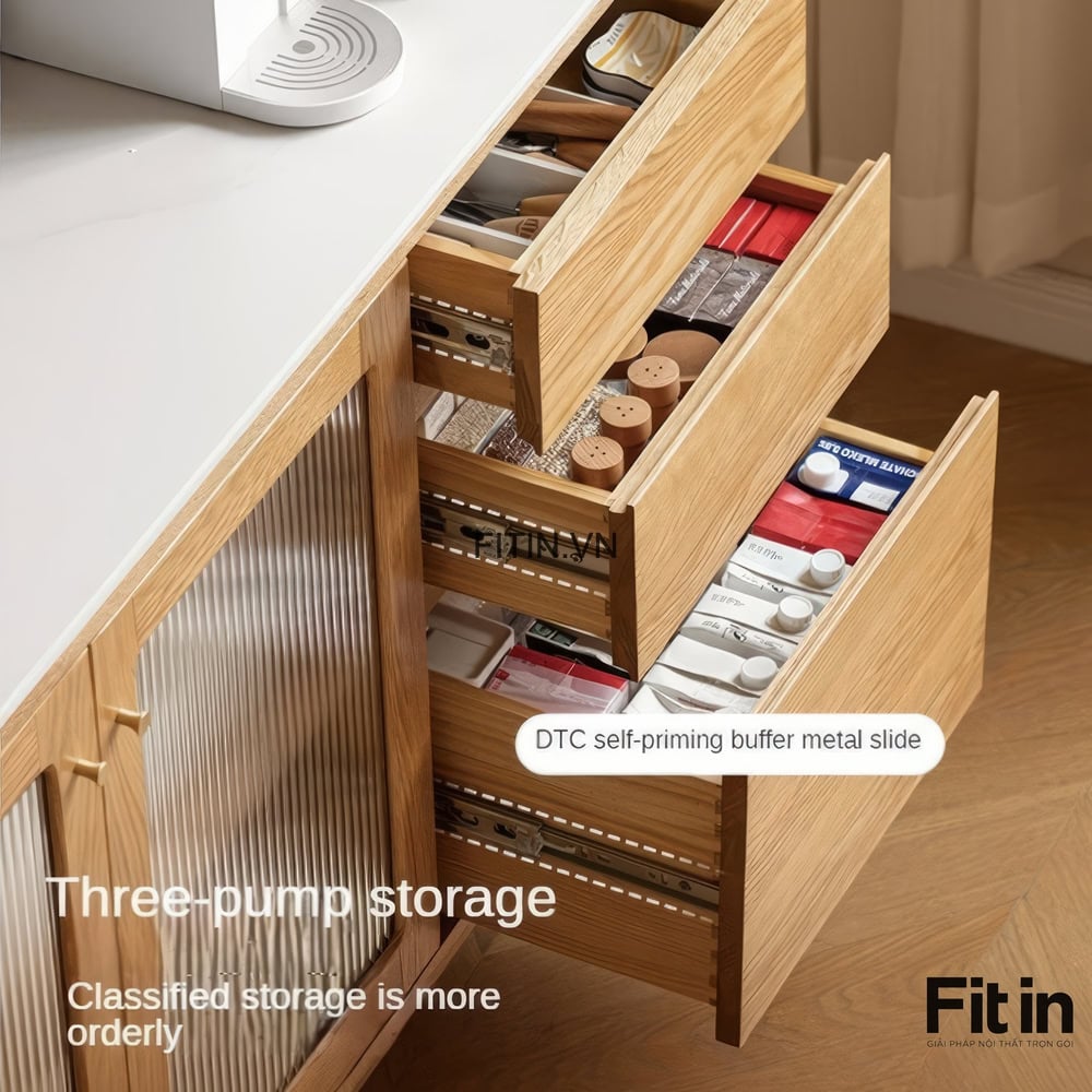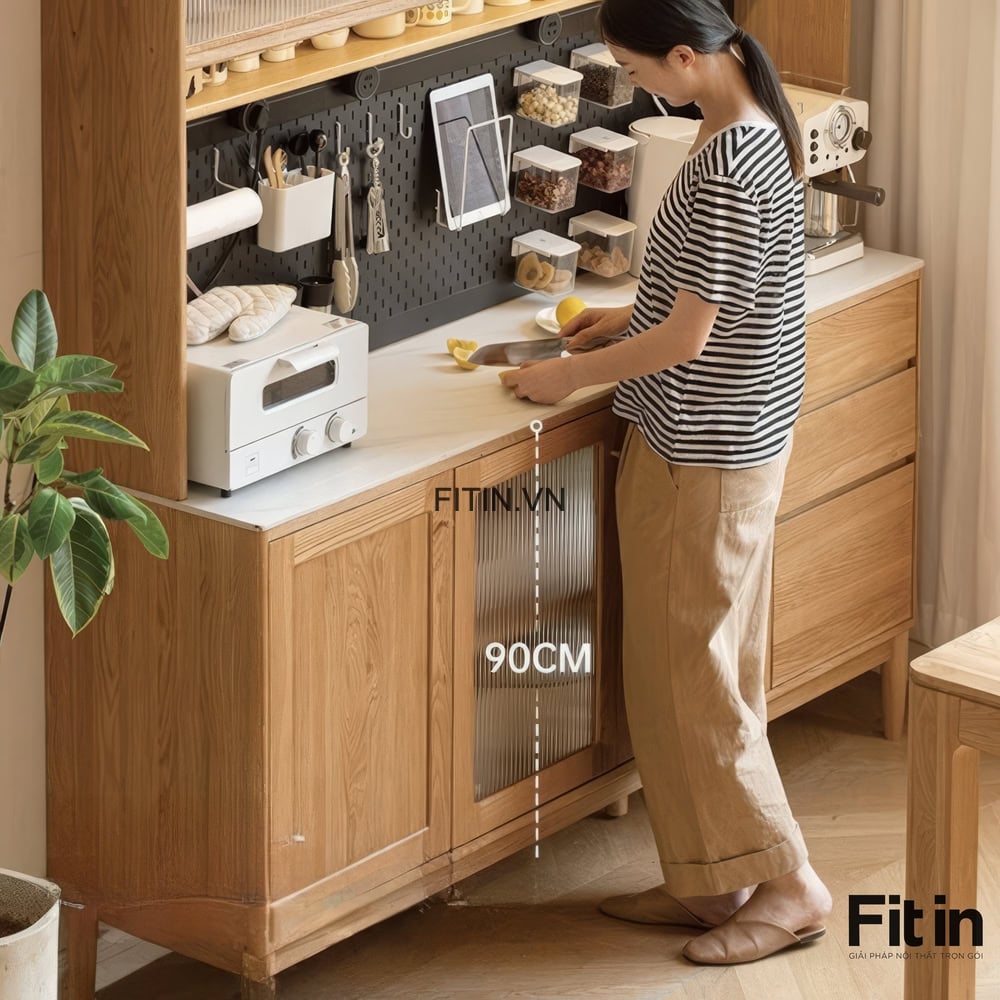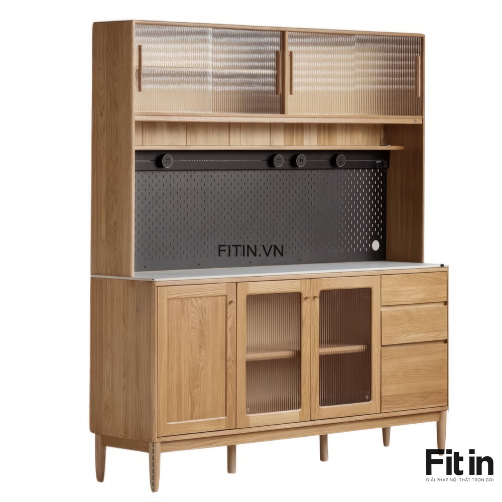 Tủ Đựng Đồ Khô Và Chén Bát Gỗ Sồi Tự Nhiên Kiểu Chân Cao