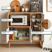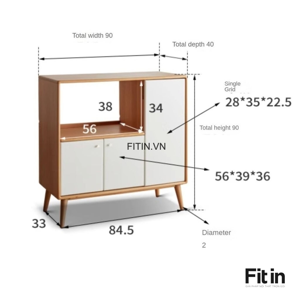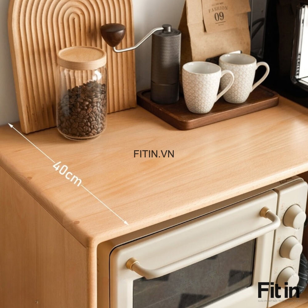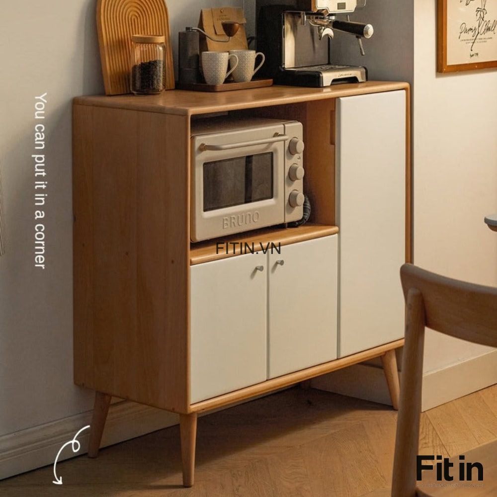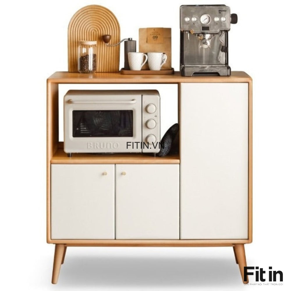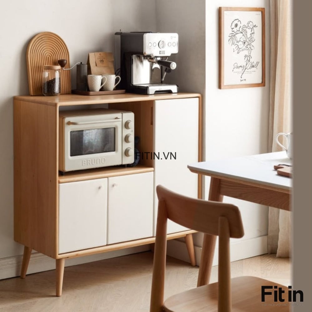 Tủ Đựng Lò Vi Sóng Gỗ Sồi Màu Tự Nhiên Phối Trắng Nhỏ Gọn