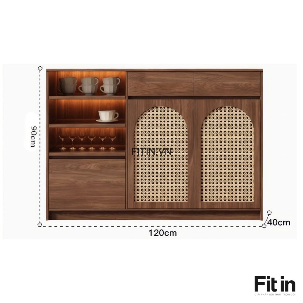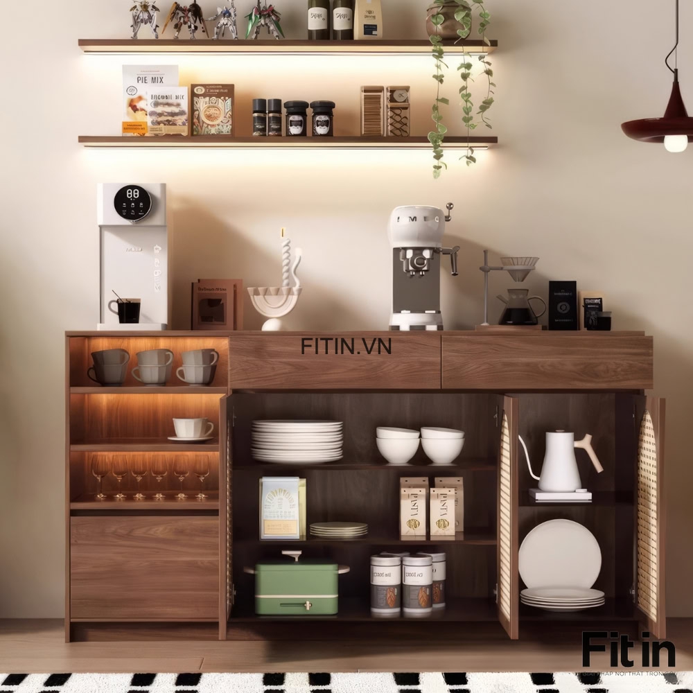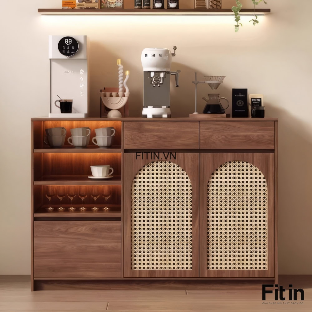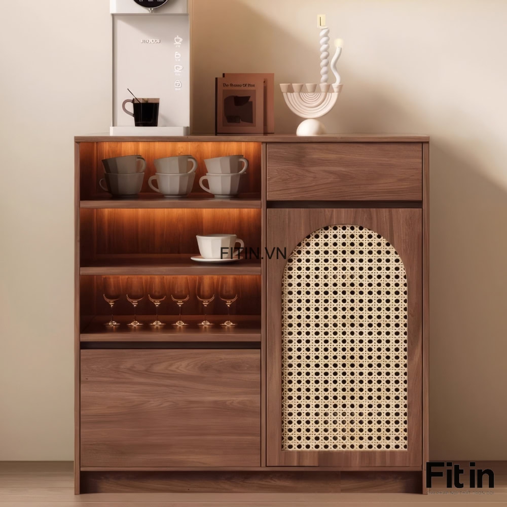 Tủ Đựng Ly Chén Bằng Gỗ Công Nghiệp Cánh Đan Mây Hiện Đại