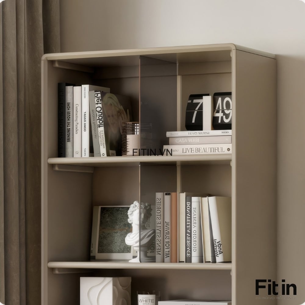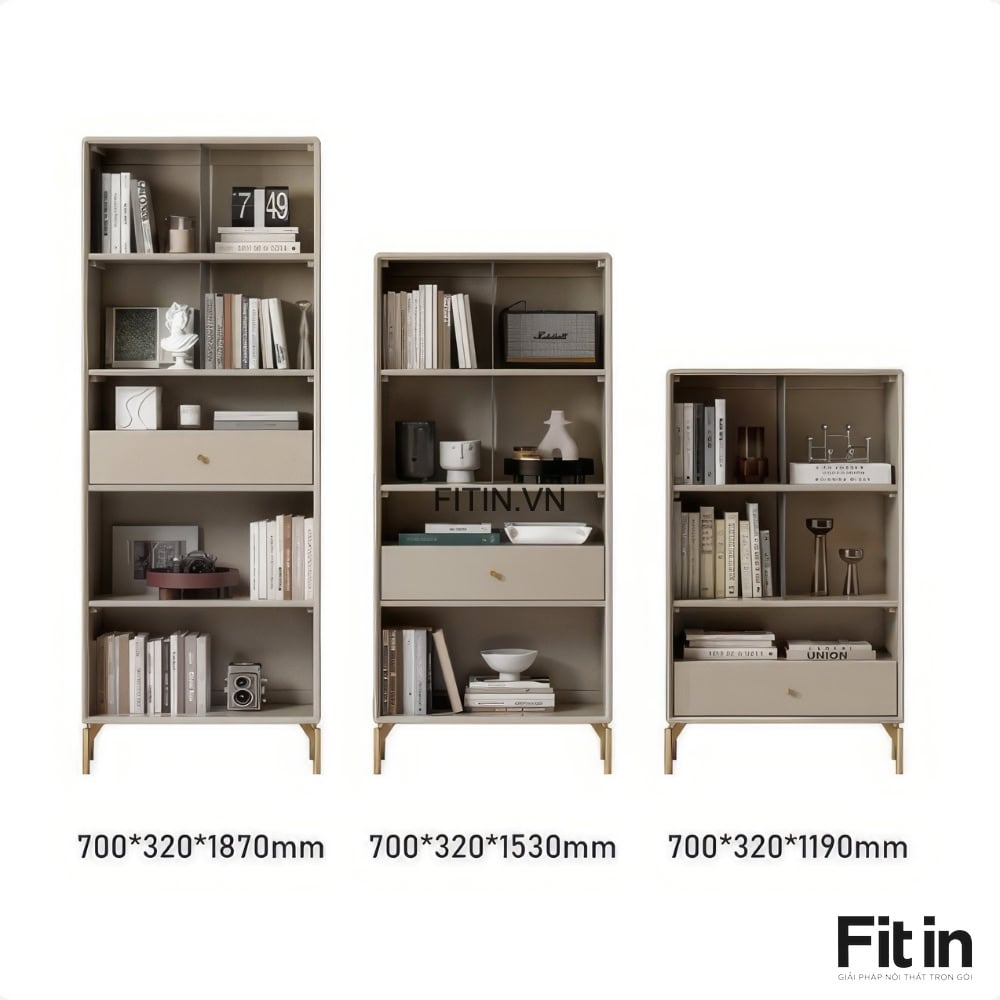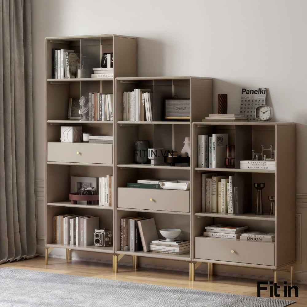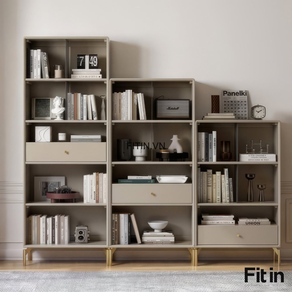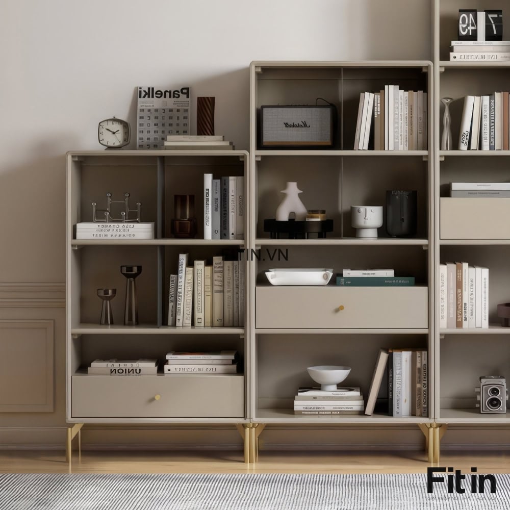 Tủ Đựng Sách Vở Và Đồ Trang Trí Chân Cao Gỗ Sồi Sơn Màu Xám