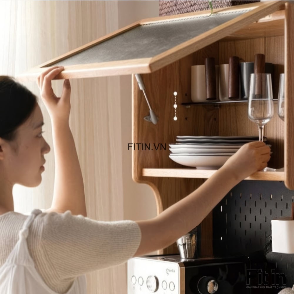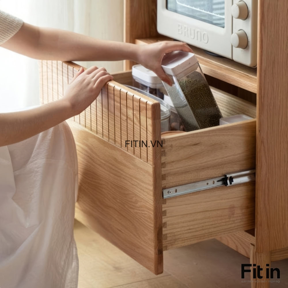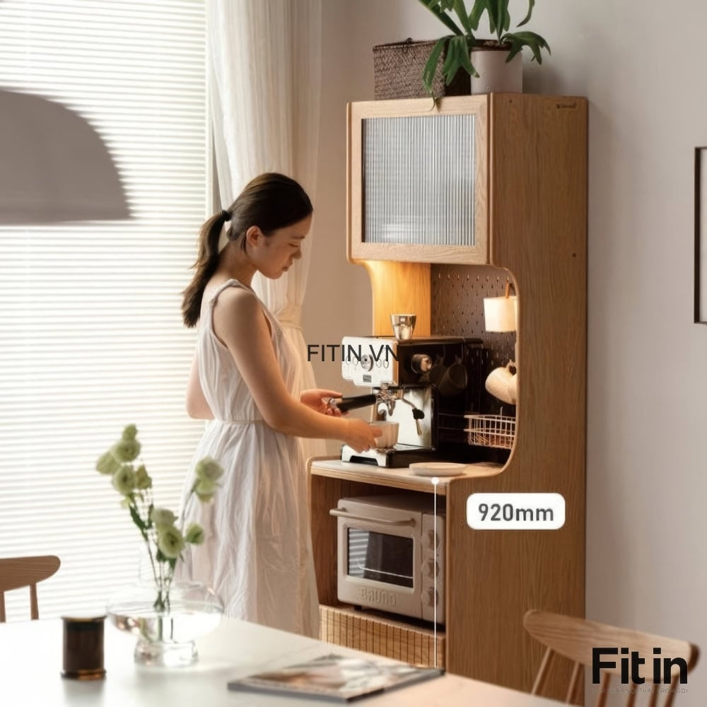 Tủ Gỗ Đựng Chén Bát Lò Vi Sóng Mini Dáng Cao Hiện Đại