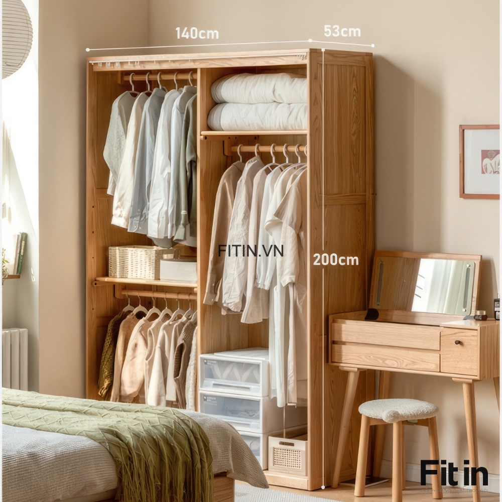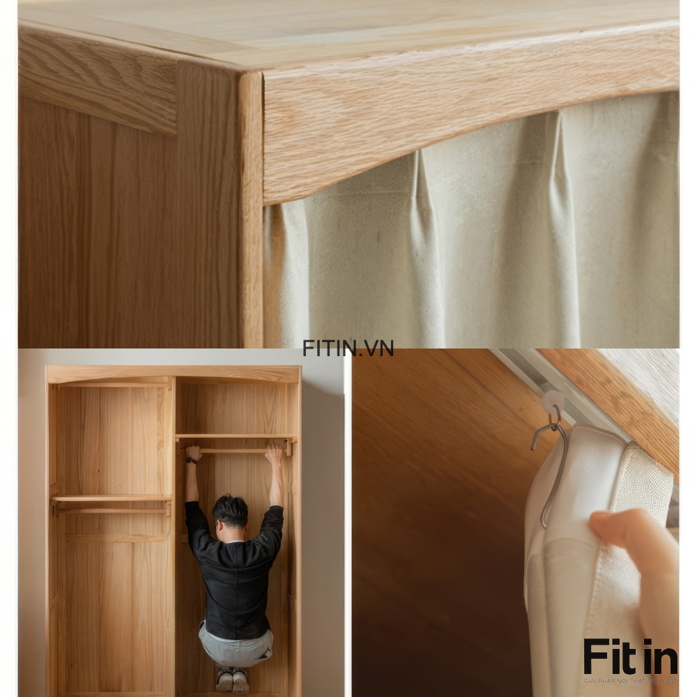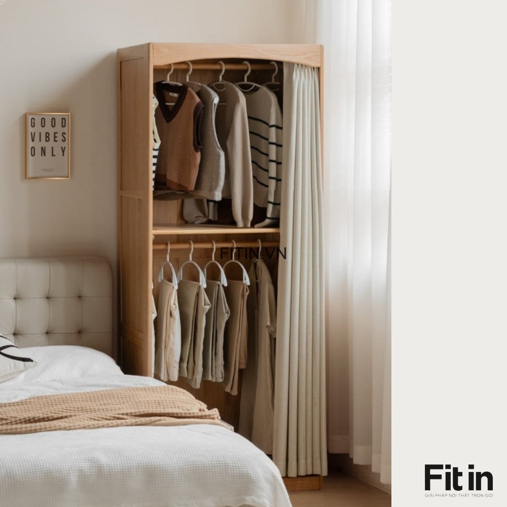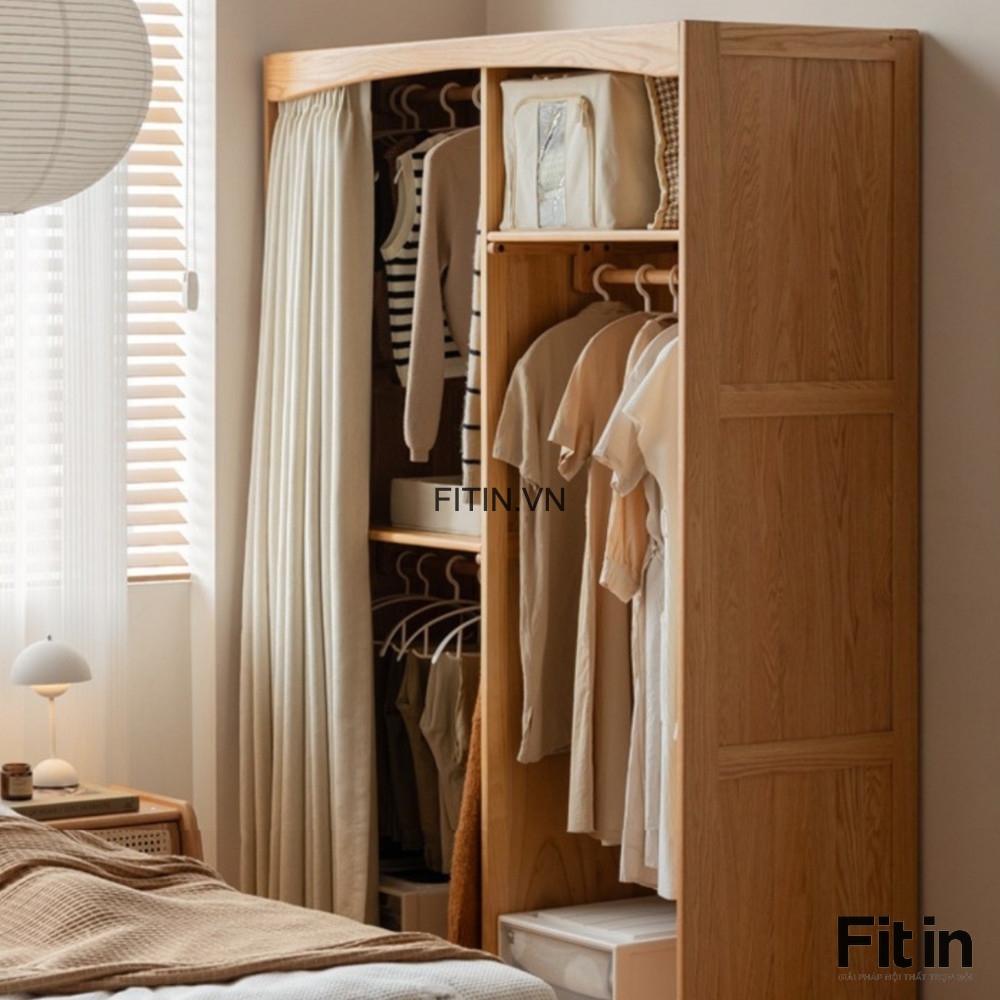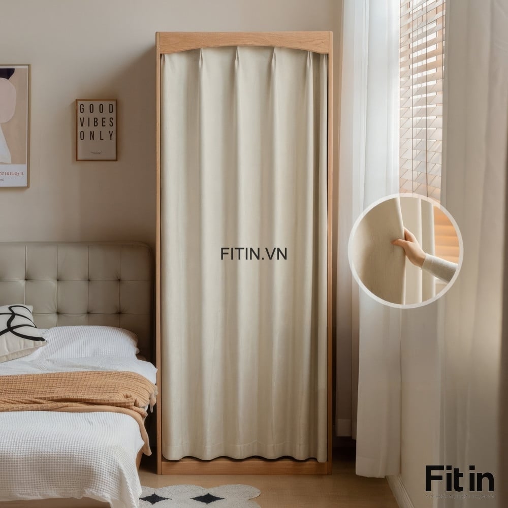Tủ Gỗ Đựng Quần Áo Thiết Kế Cánh Vải Rèm Hiện Đại