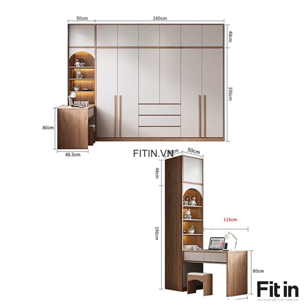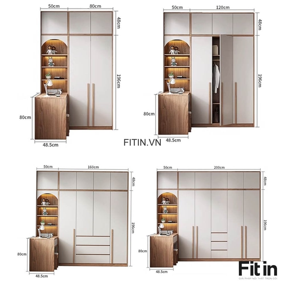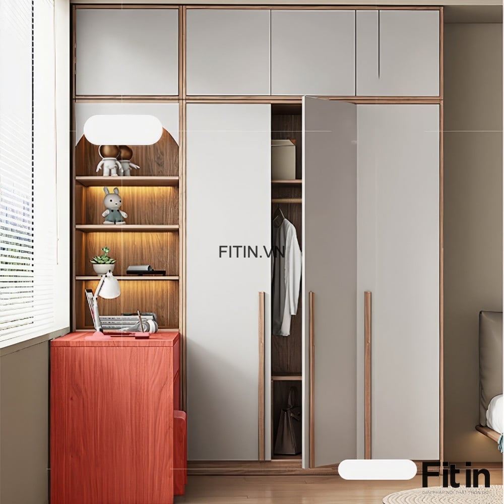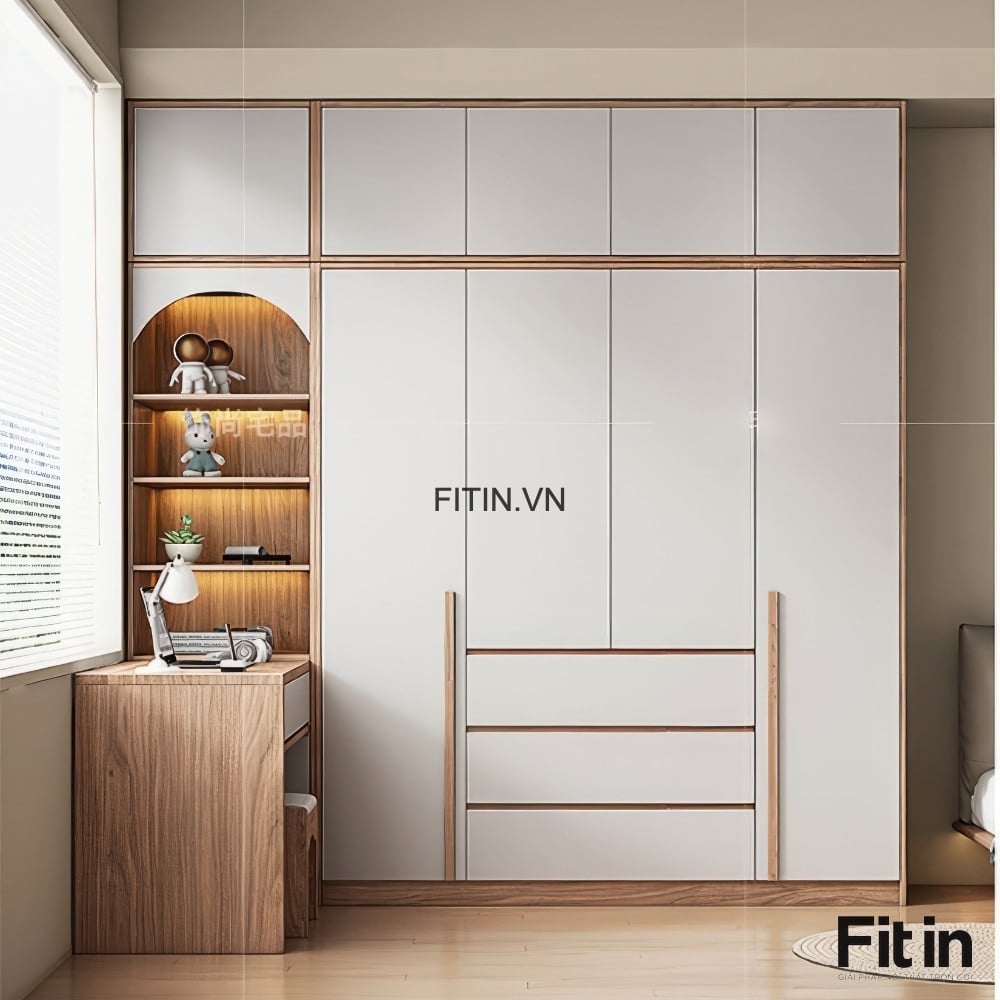 Tủ Gỗ Quần Áo Liền Bàn Làm Việc Hình Chữ L Hiện Đại Tối Ưu