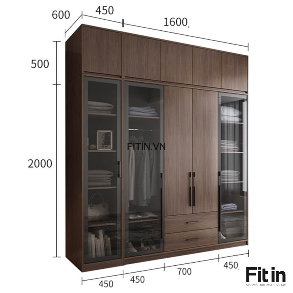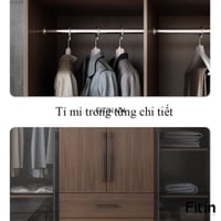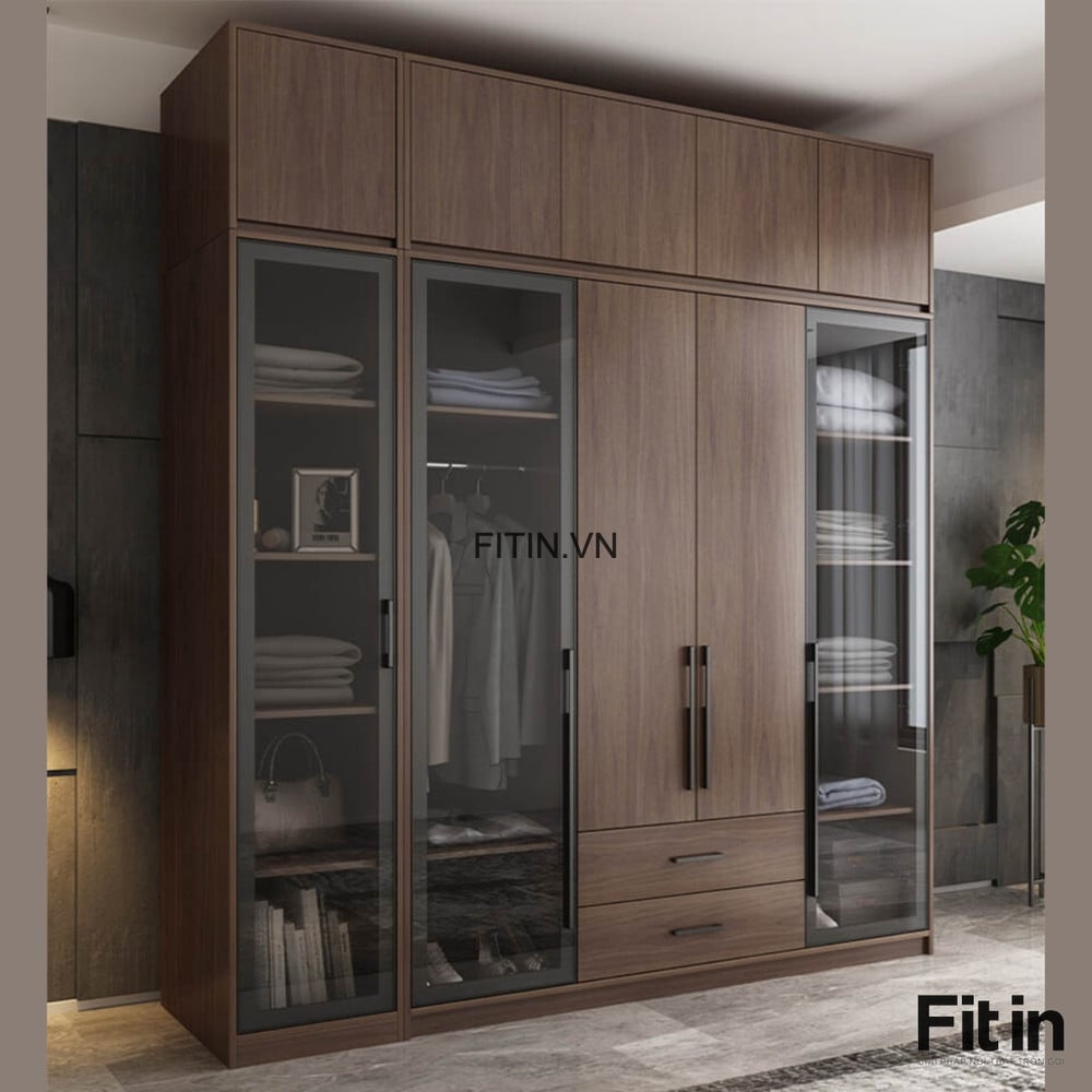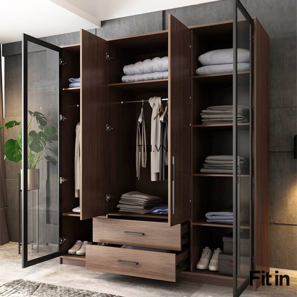 Tủ Kính Quần Áo Gỗ Công Nghiệp Màu Óc Chó Hiện Đại Cao Cấp