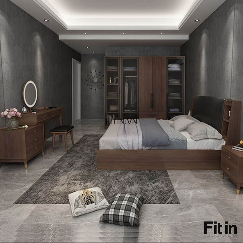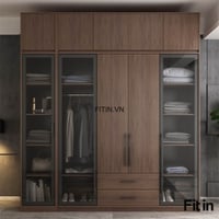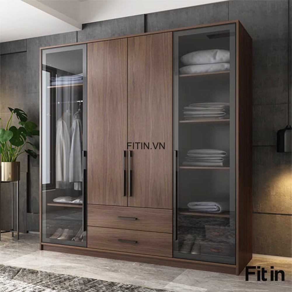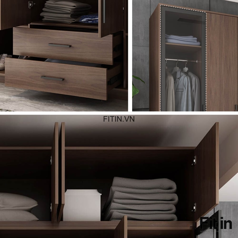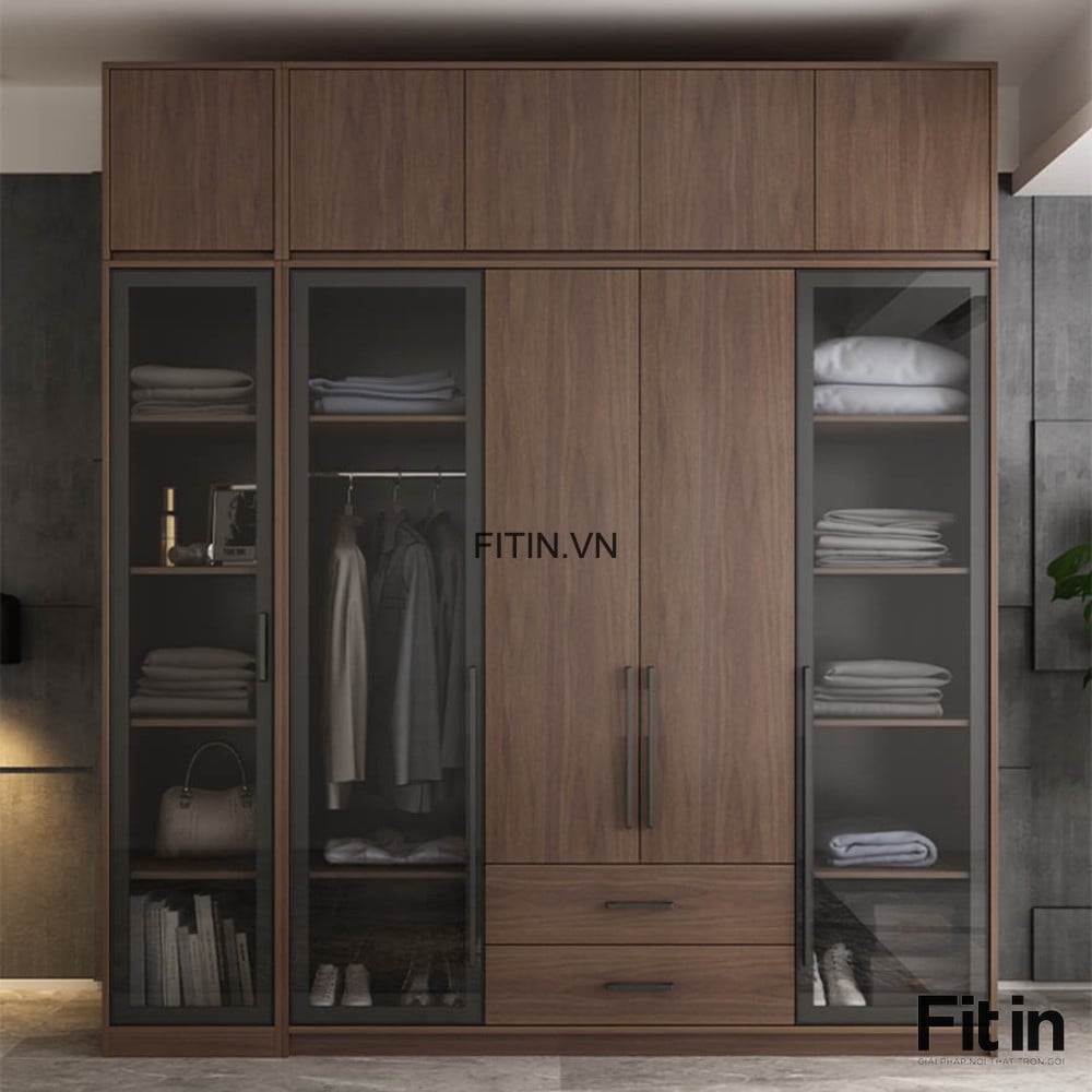 Tủ Kính Quần Áo Gỗ Công Nghiệp Màu Óc Chó Hiện Đại Cao Cấp