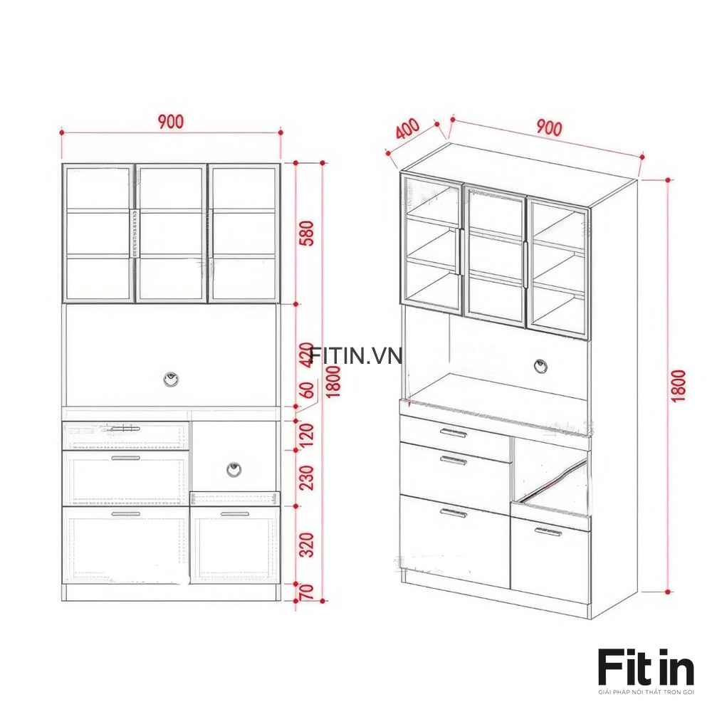 Tủ Lò Vi Sóng Và Chén Bát Gỗ Công Nghiệp An Cường Hiện Đại