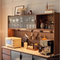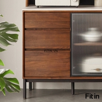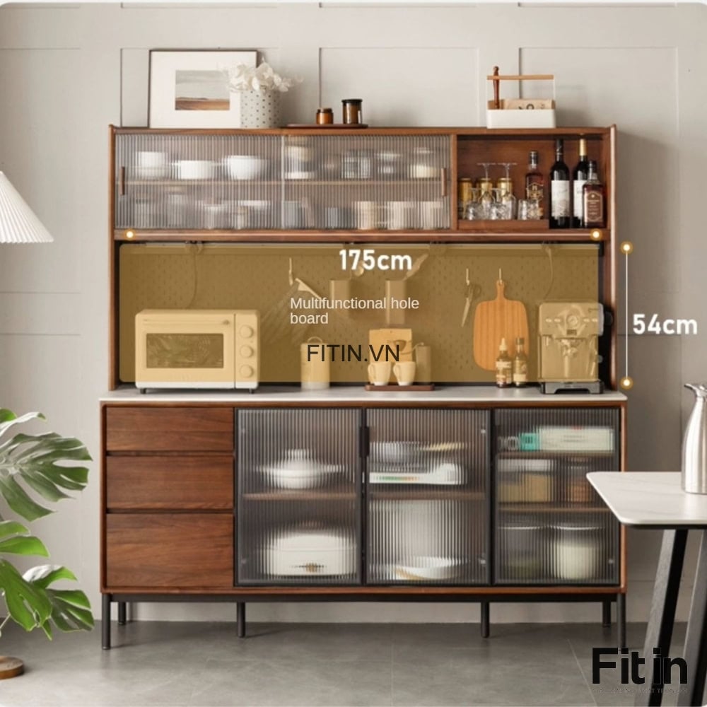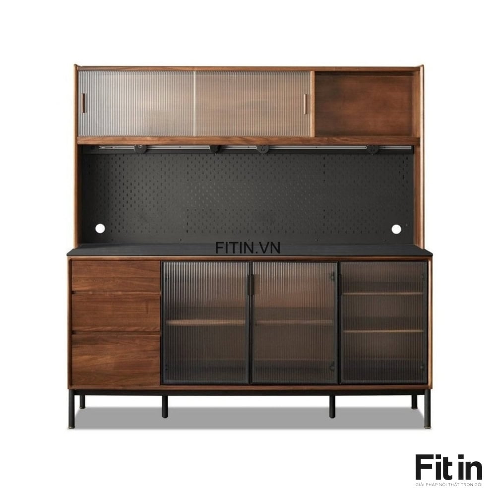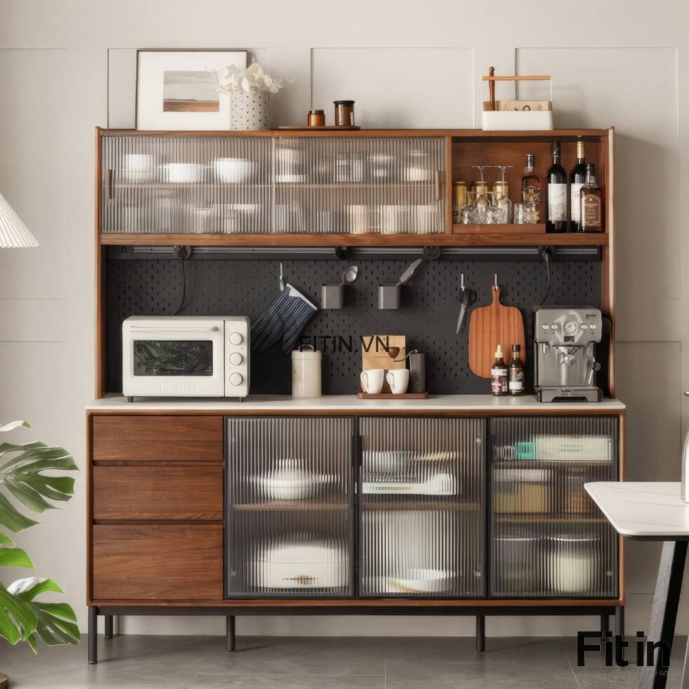 Tủ Ly Chén Bằng Gỗ Sồi Cánh Kính Khung Nhôm Kiểu Chân Cao