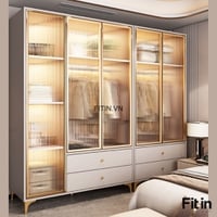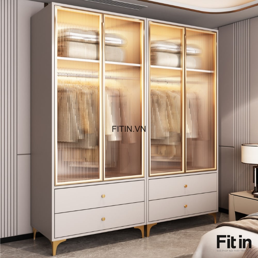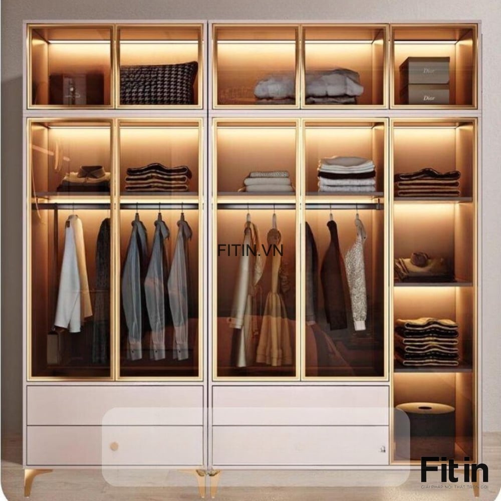 Tủ Nhôm Cánh Kính Khung Gỗ MDF Màu Xám Đẹp Sang Trọng