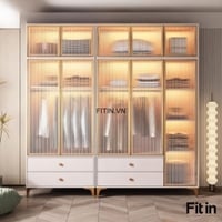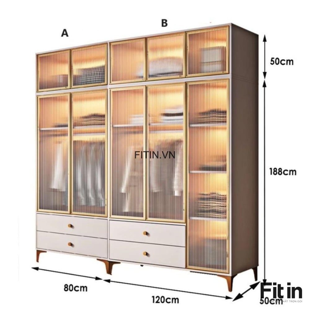 Chất liệu: Gỗ MDF phủ Melamine + Cánh kính cường lực khung nhôm
