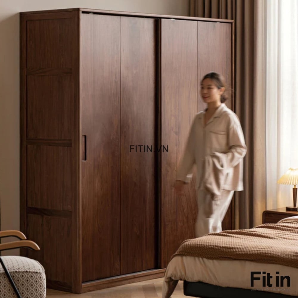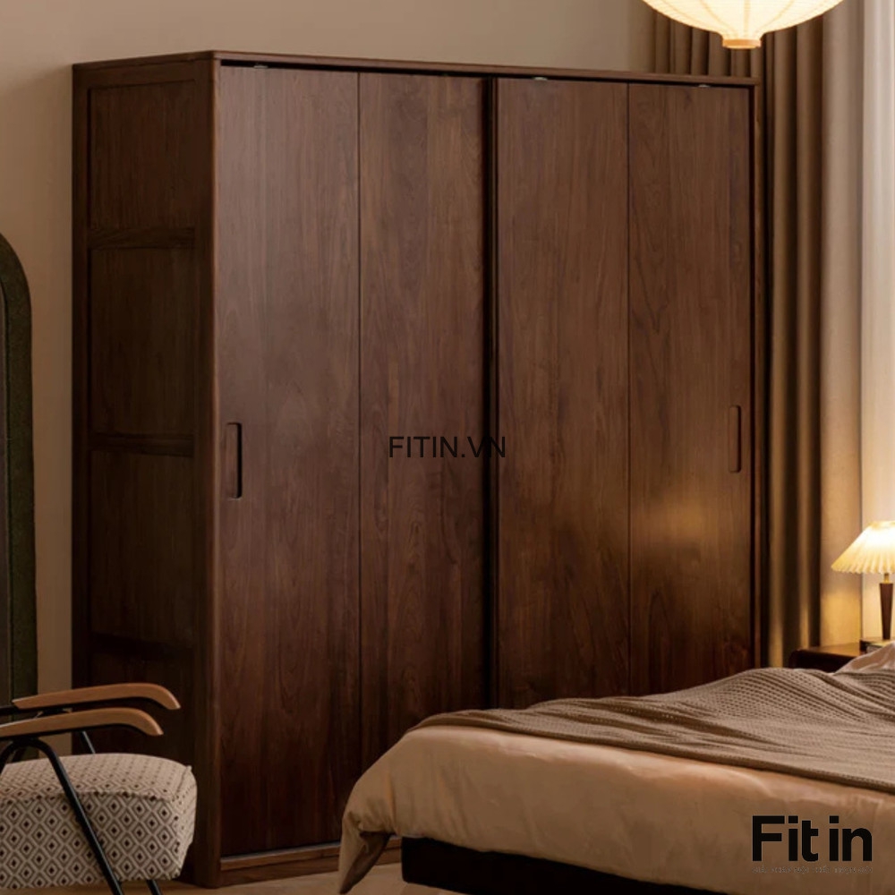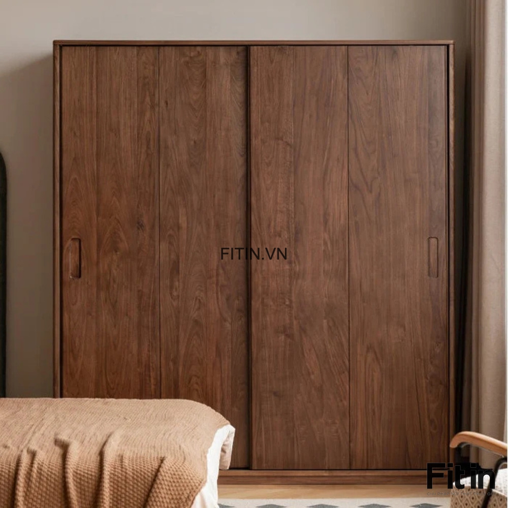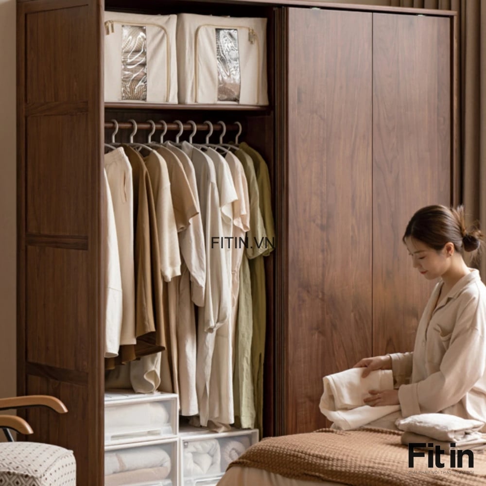 Tủ Quần Áo 2 Cánh Gỗ Tự Nhiên Kiểu Lùa Màu Óc Chó Thời Thượng