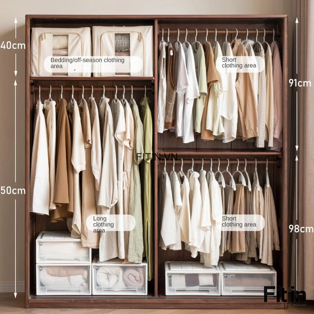 Kích thước: 160/180/200 x 60 x 200cm (rộng x sâu x cao)