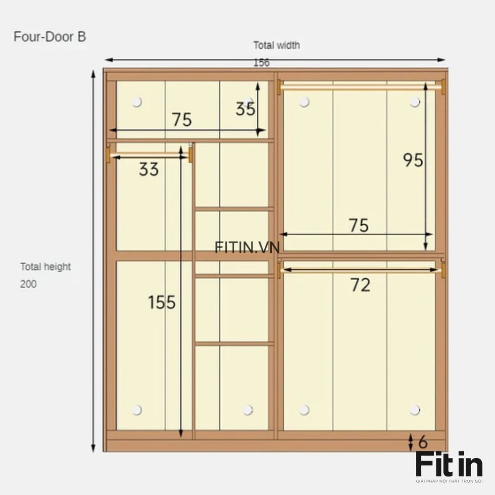 Kích thước: 120 x 60 x 200сm (rộng x sâu x cao)
