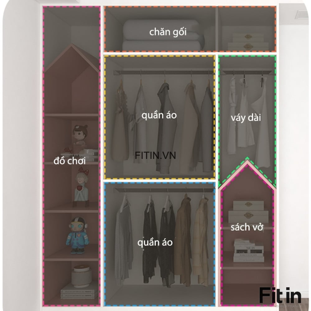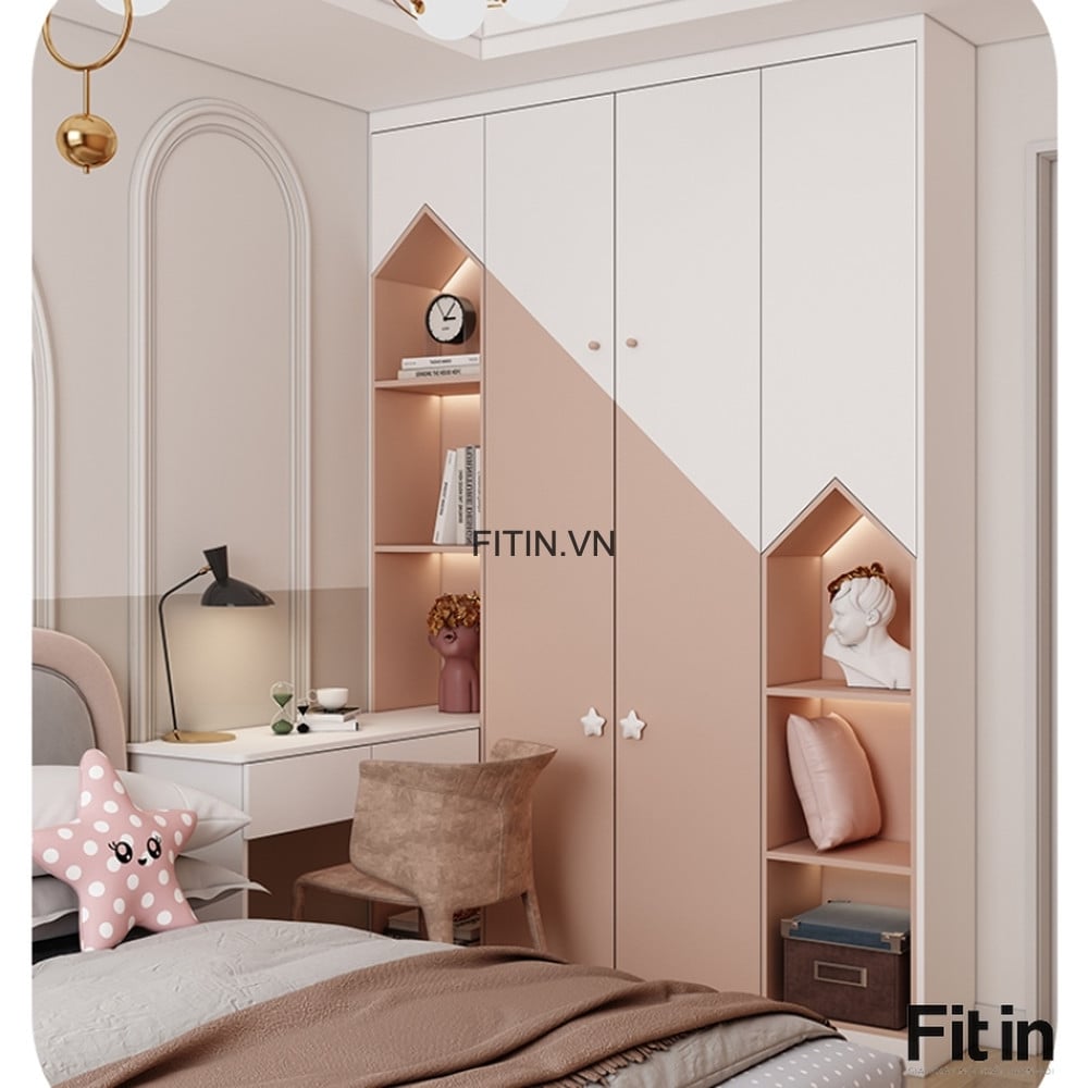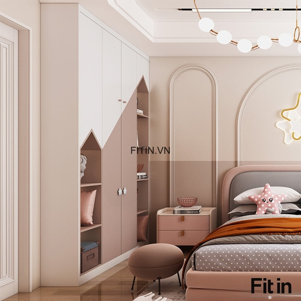 Tủ Quần Áo Bé Gái Màu Hồng Phối Trắng Cao Cấp Hiện Đại
