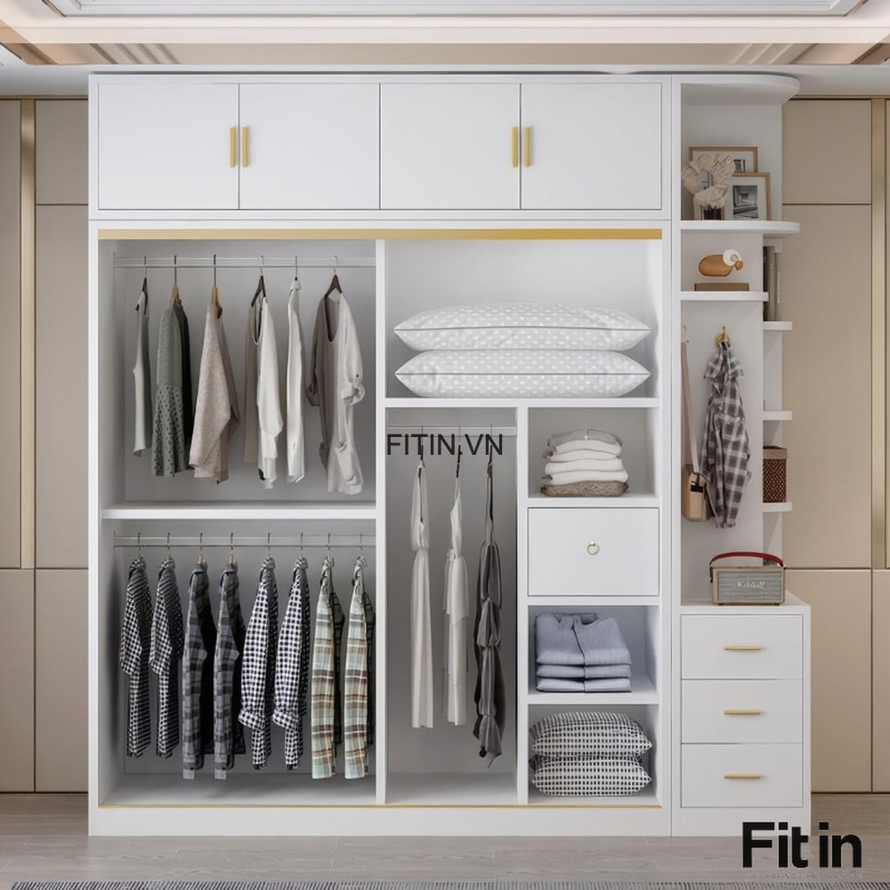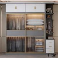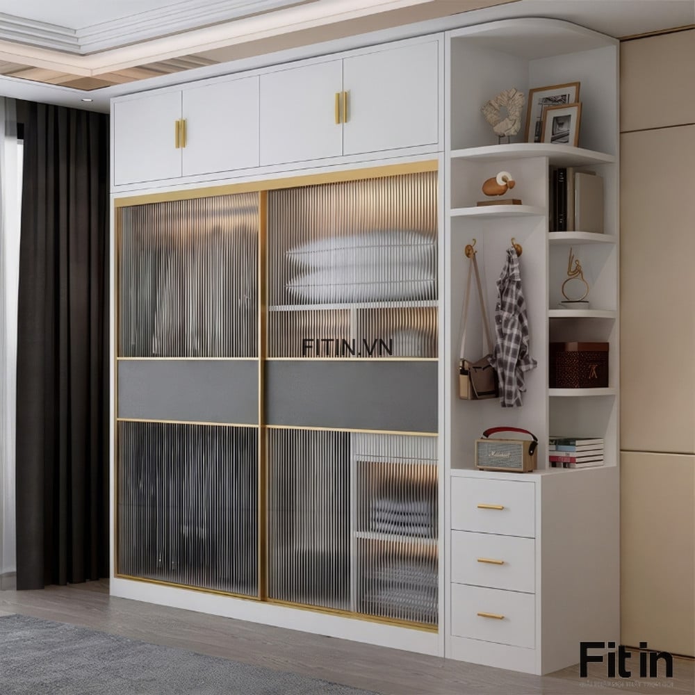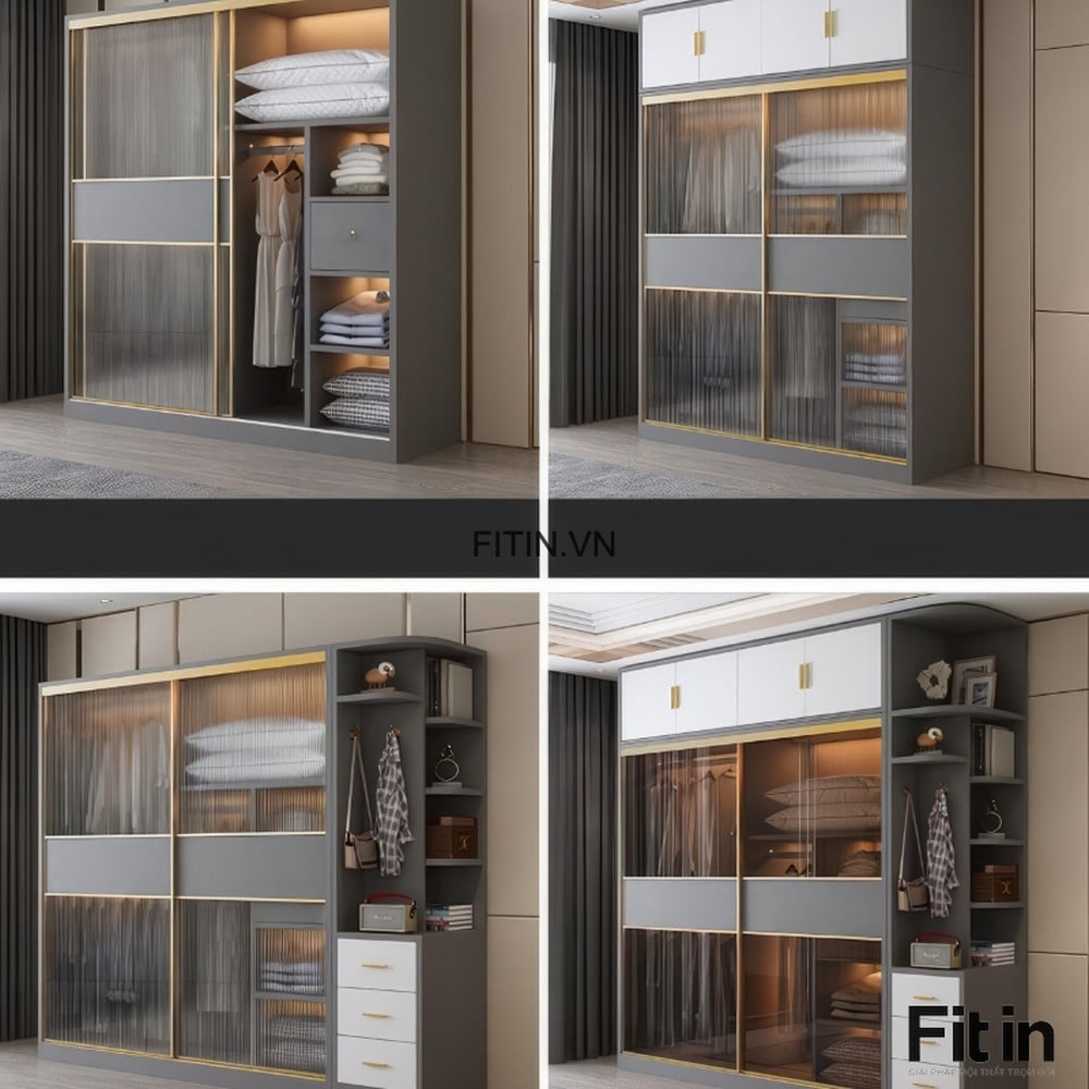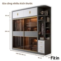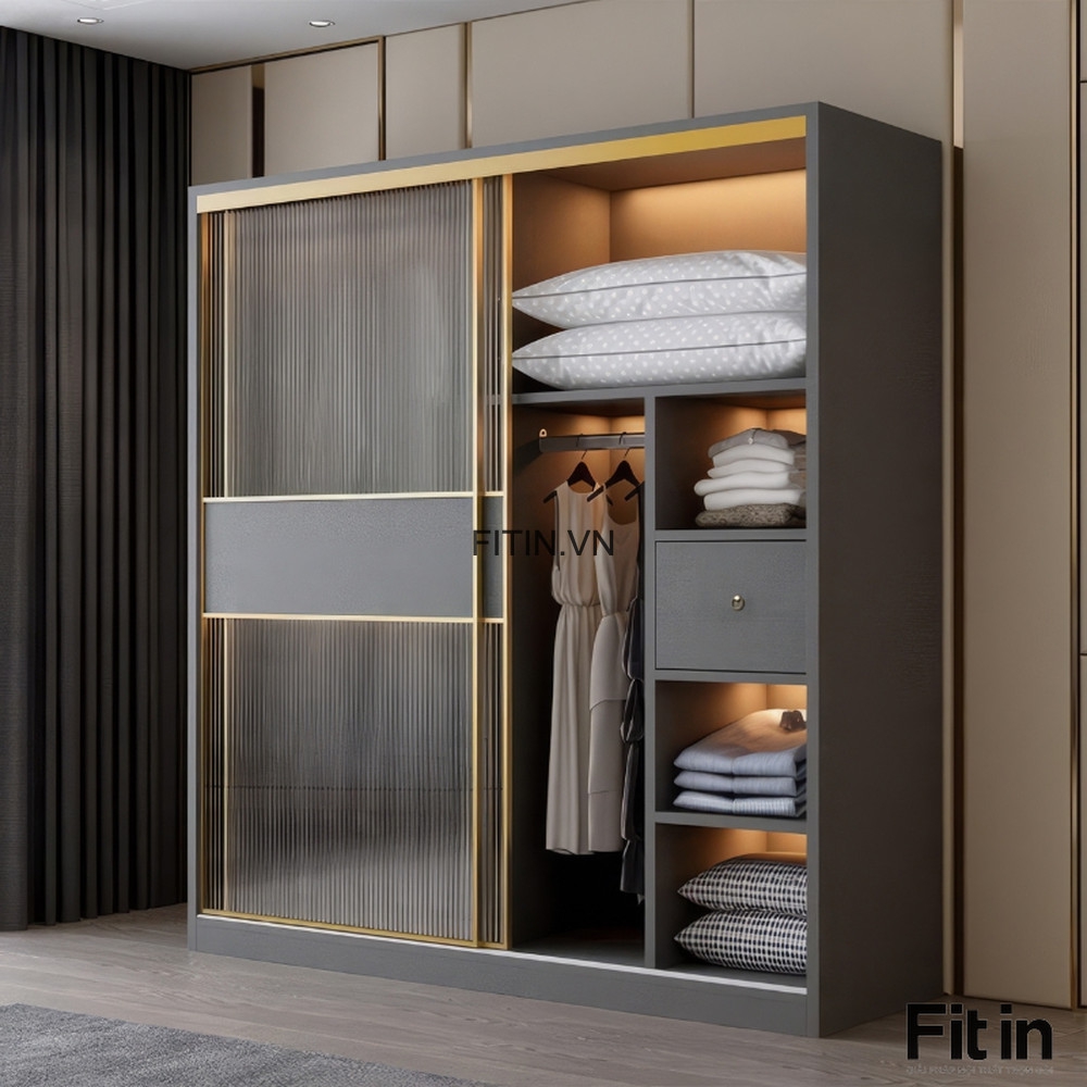 Tủ Quần Áo Cánh Kính Lùa Kết Hợp Led Gỗ Công Nghiệp Cao Cấp