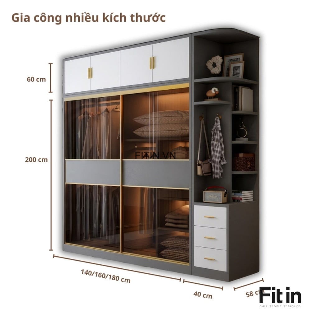 200 x 58 x 260cm ( Dài x Sâu x Cao )