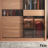 Chất liệu: Gỗ MDF phủ Melamine + Cánh kính cường lực + Đèn led