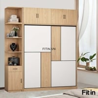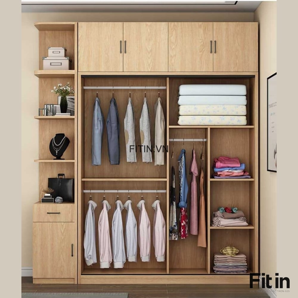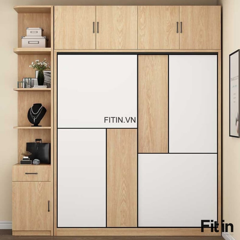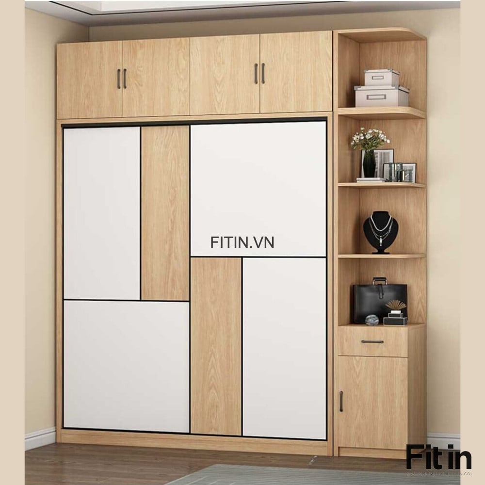 Tủ Quần Áo Cánh Lùa Gỗ MDF Màu Vàng Phối Trắng Tinh Tế