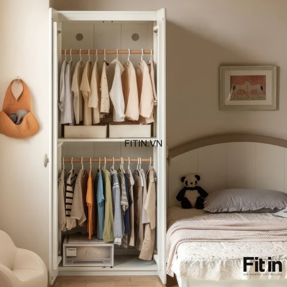 Tủ Quần Áo Cho Bé Bằng Gỗ Sồi Sơn Trắng Hiện Đại Cao Cấp