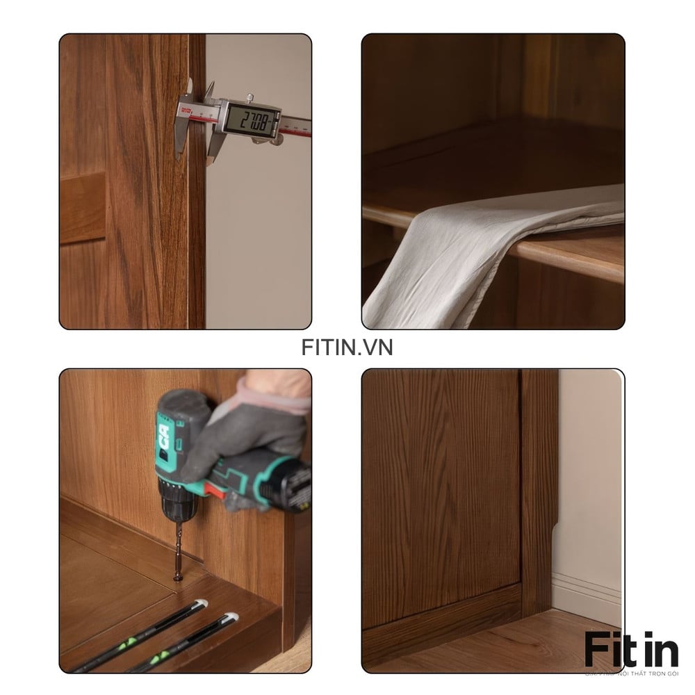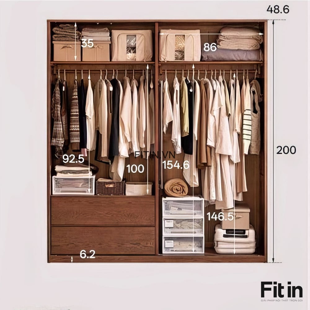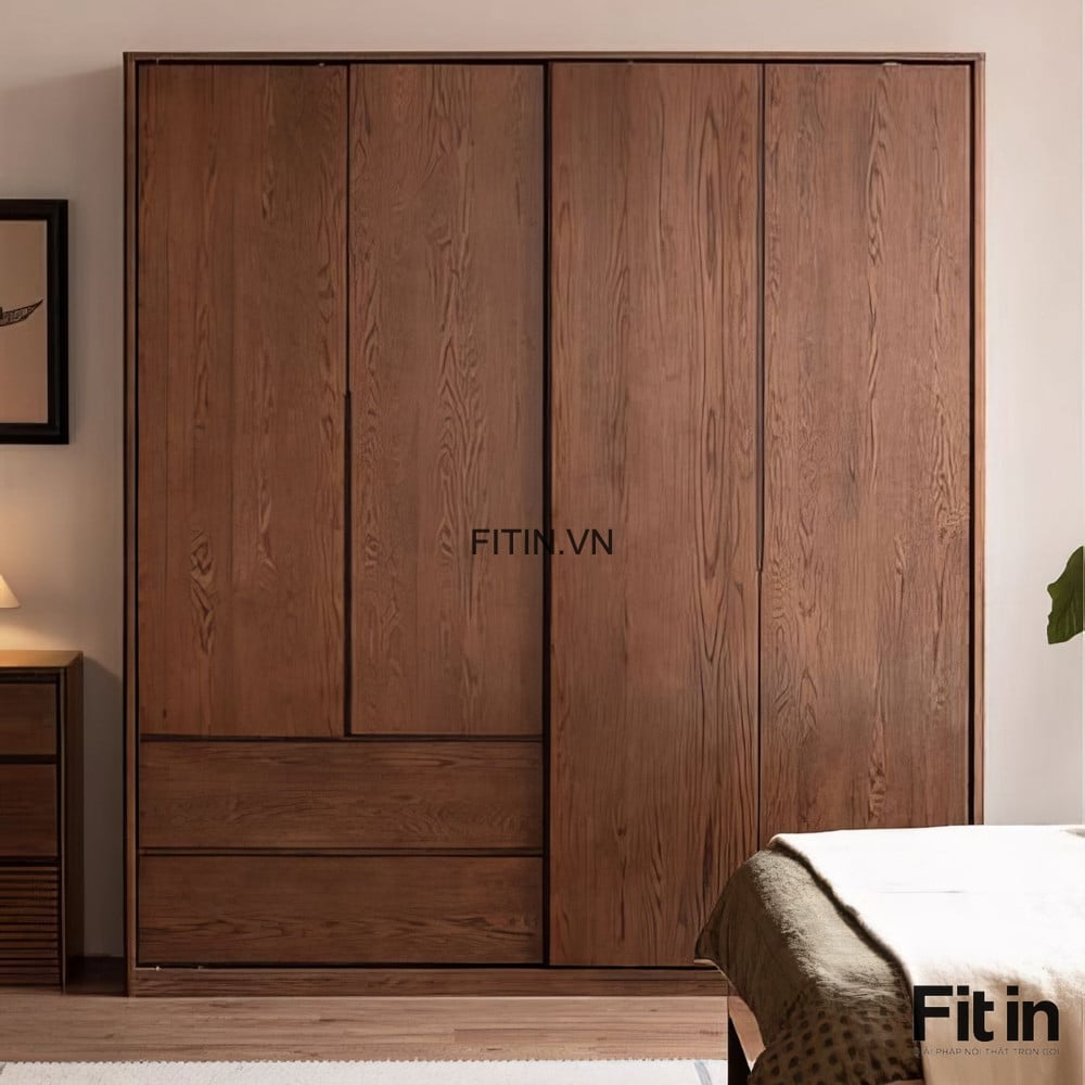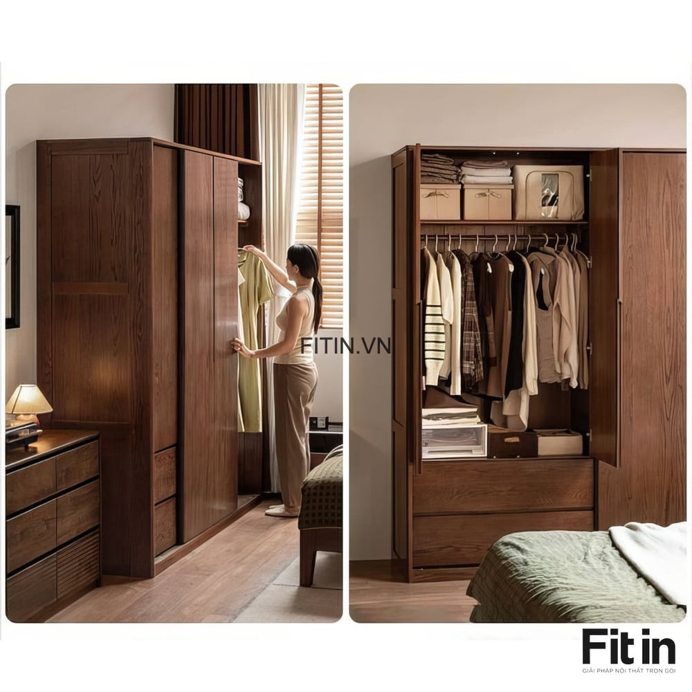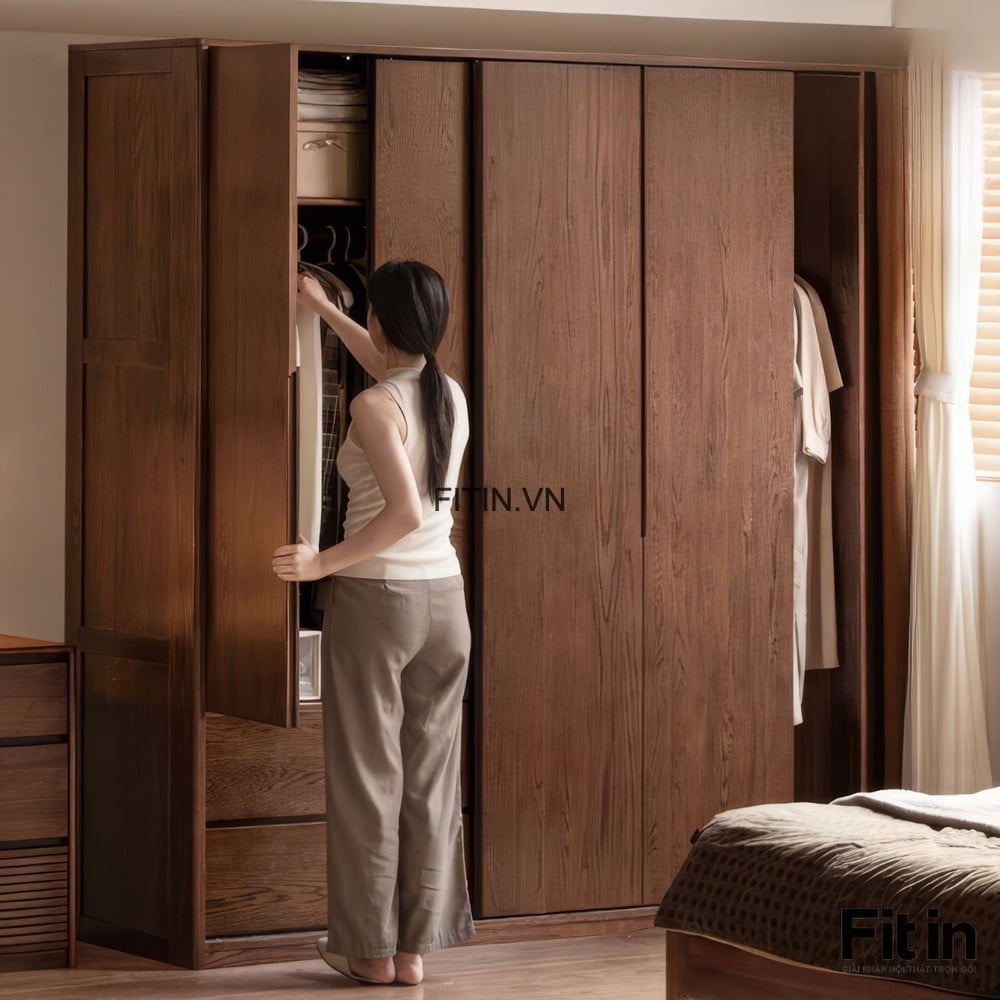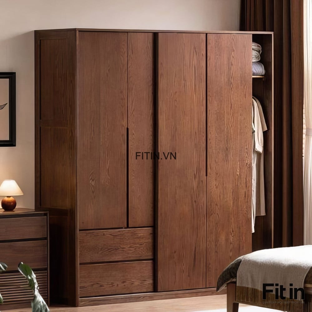 Tủ Quần Áo Cửa Kéo Ngang Gỗ Sồi Sơn Màu Óc Chó Hiện Đại Tối Ưu