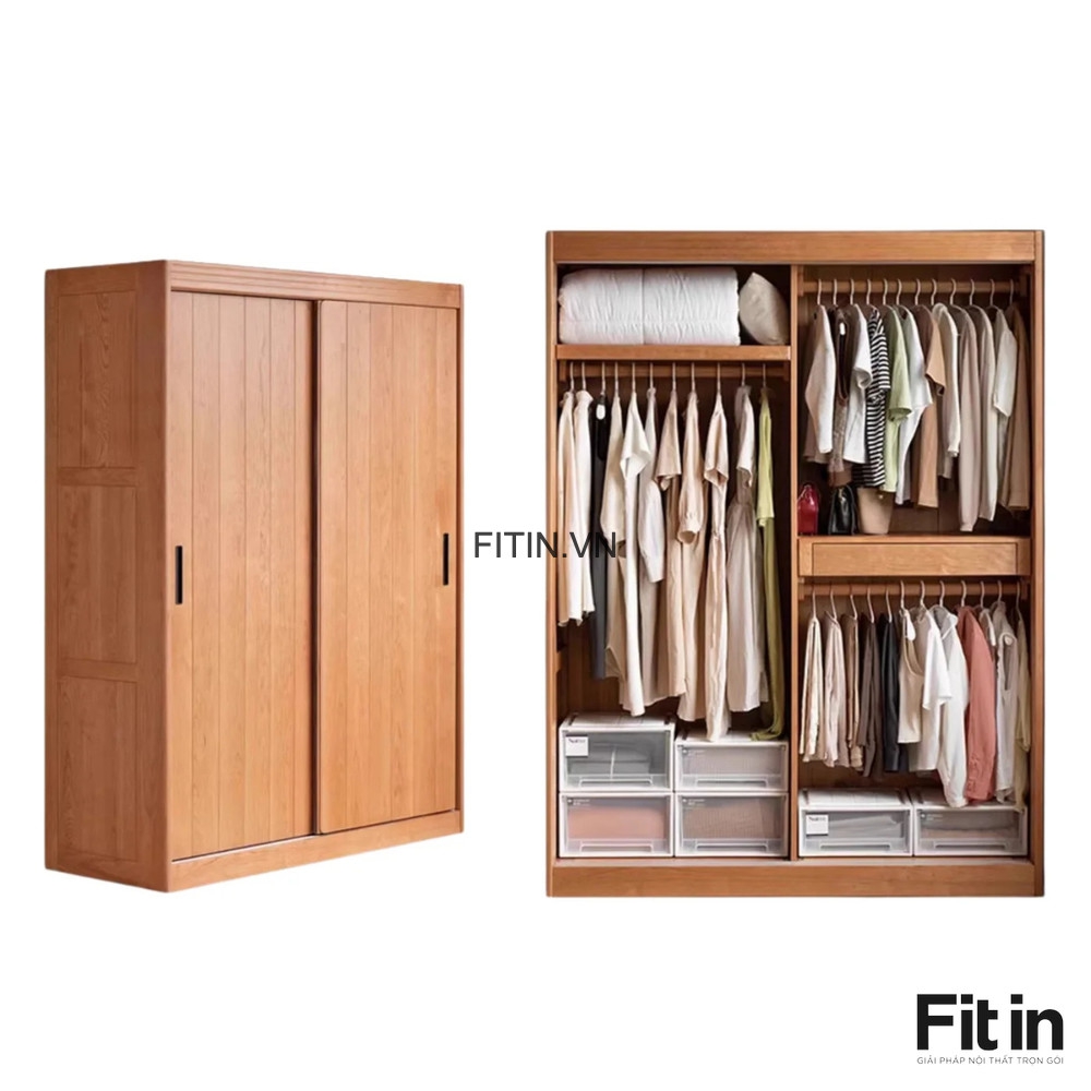 Tủ Quần Áo Gỗ Sồi 2 Cánh Kiểu Lùa Thiết Kế Hiện Đại Đẹp