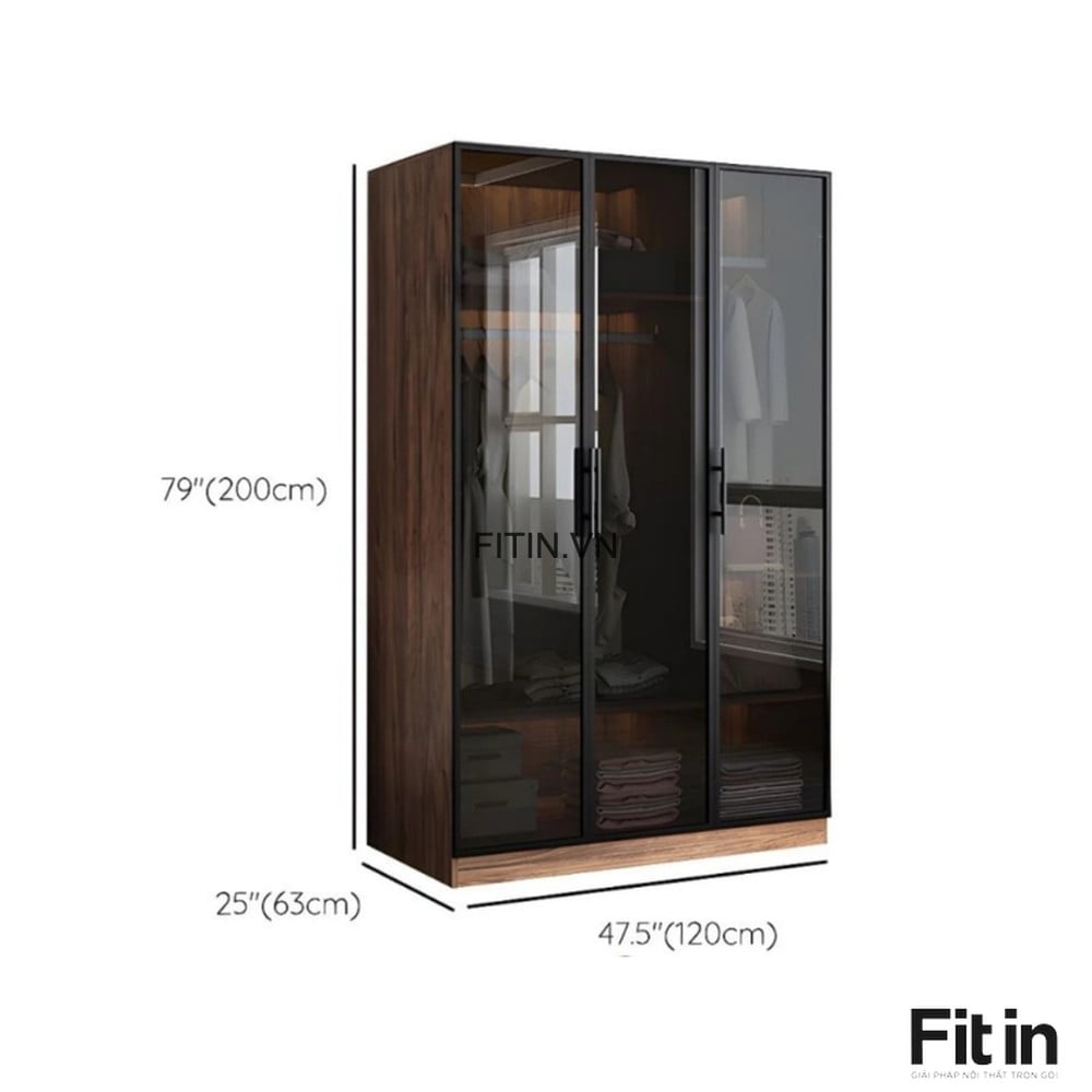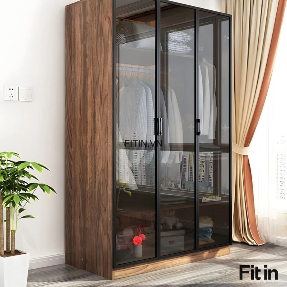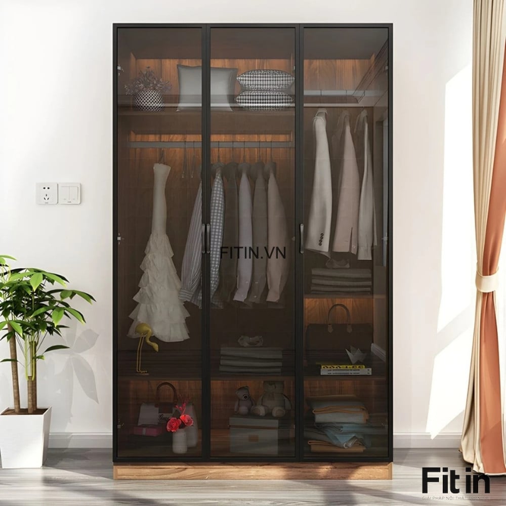 Tủ Quần Áo Kính Đen Cường Lực Khung Nhôm Gỗ MDF Cao Cấp