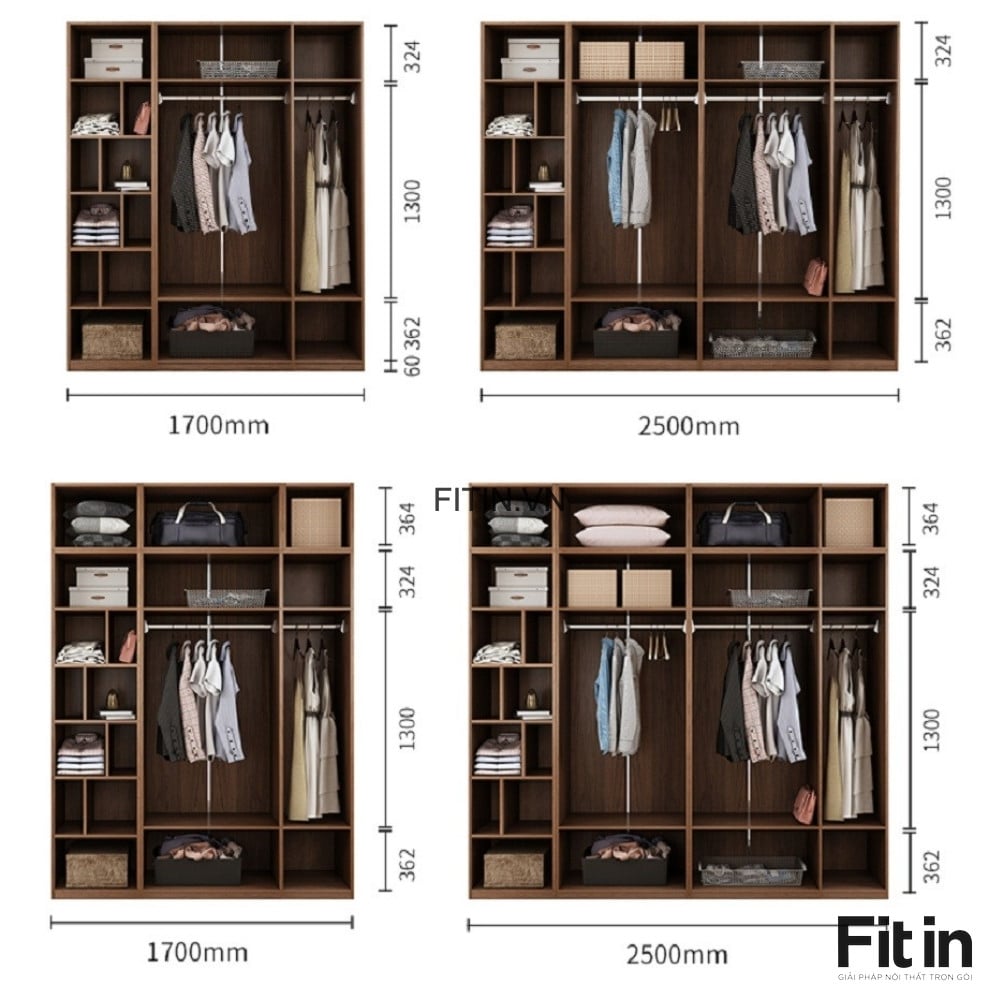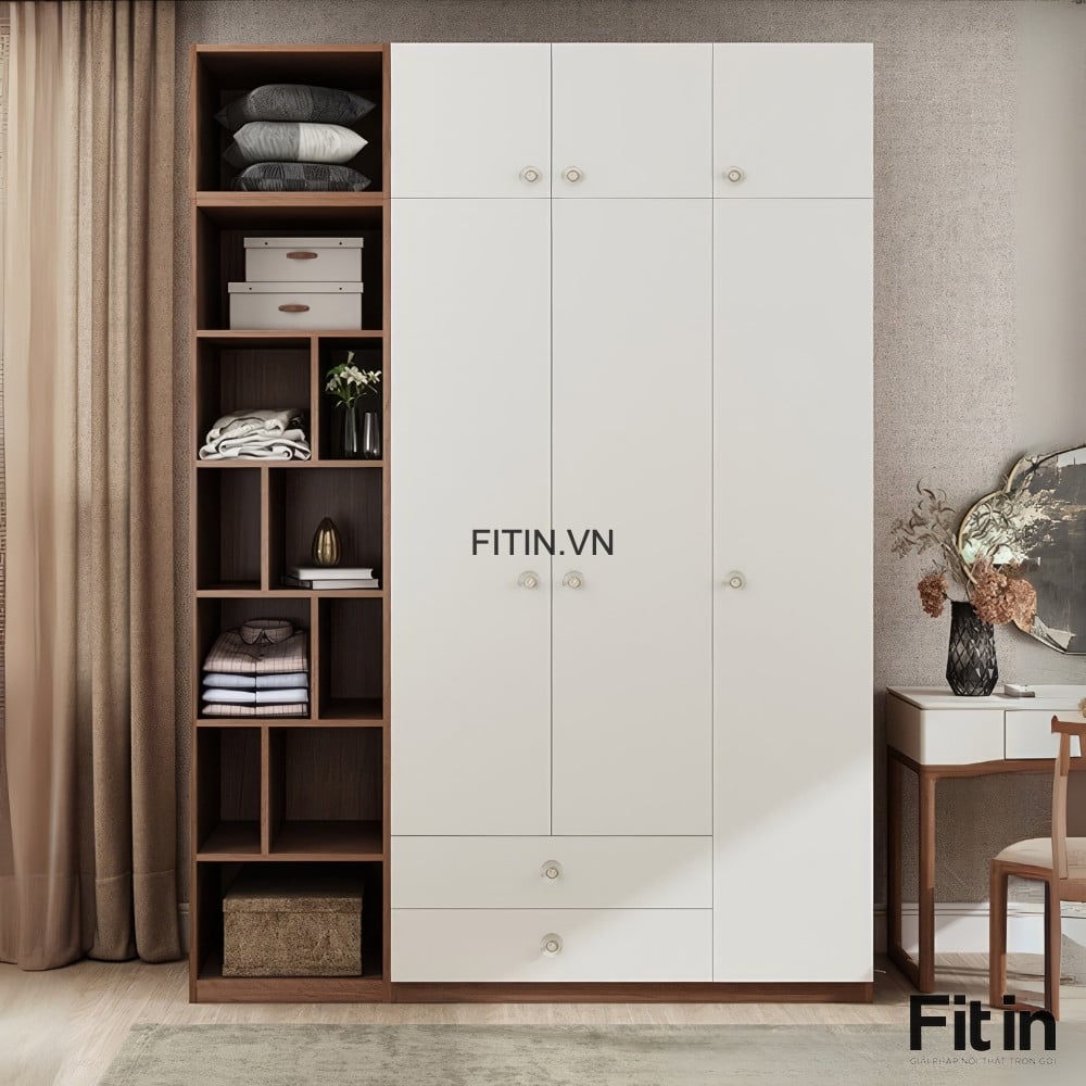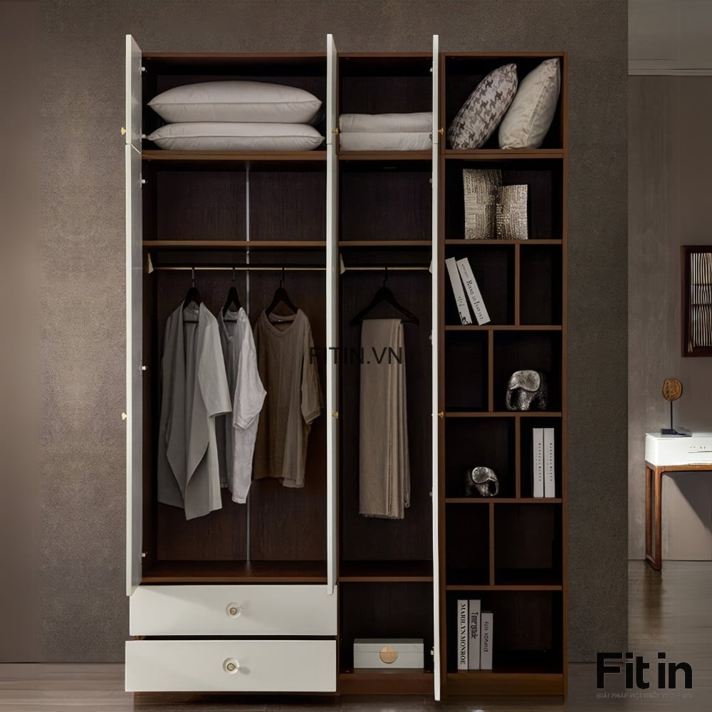 Tủ Quần Áo MDF Phủ Melamine Thiết Kế Kịch Trần Tối Ưu